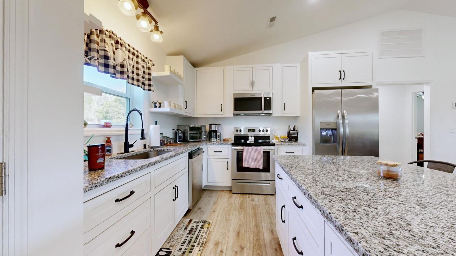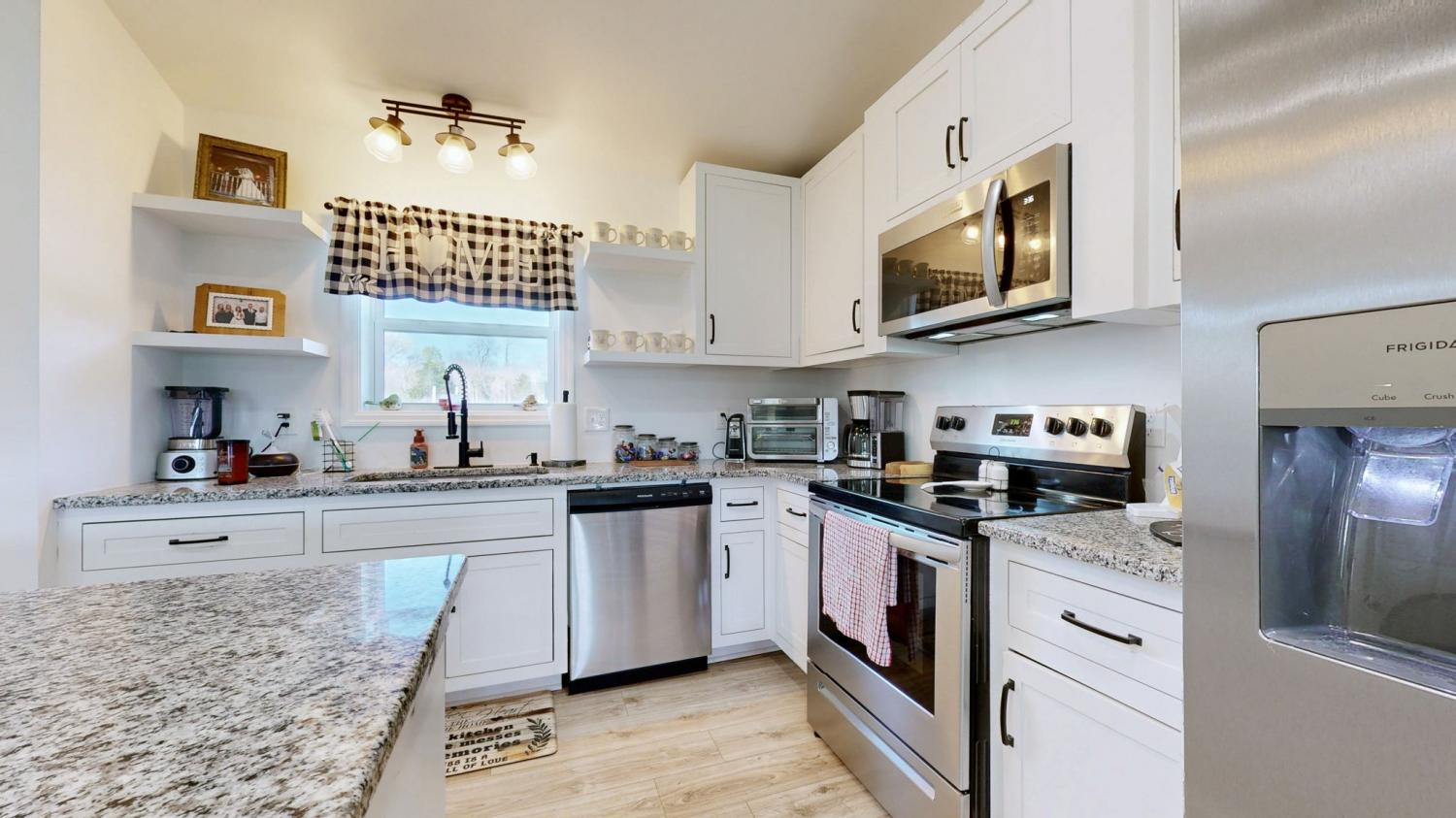 Rare and Unique!!!! Situated on 8.1 beautiful acres this property features a 1680 sqft main house and a breathtaking 850 sqft guest house. Inside the main house has an inviting open floor plan perfect for entertaining. Granite countertops and stainless-steel appliances. LVP flooring throughout, high ceilings and a high energy efficient HVAC unit. Step outside to a breathtaking view as well as you relax in the above ground pool. The guesthouse offers just as much beauty. Approximately 850 square feet with an open concept. 8 foot entry doors with granite countertops, custom cabinets, farmhouse and high ceilings. the bathroom features a stunning soak in tub with a massive shower head over top. A 1 car attached garage space is also heated and cooled for extra living space. This property truly has it all to make for the perfect peaceful forever home.