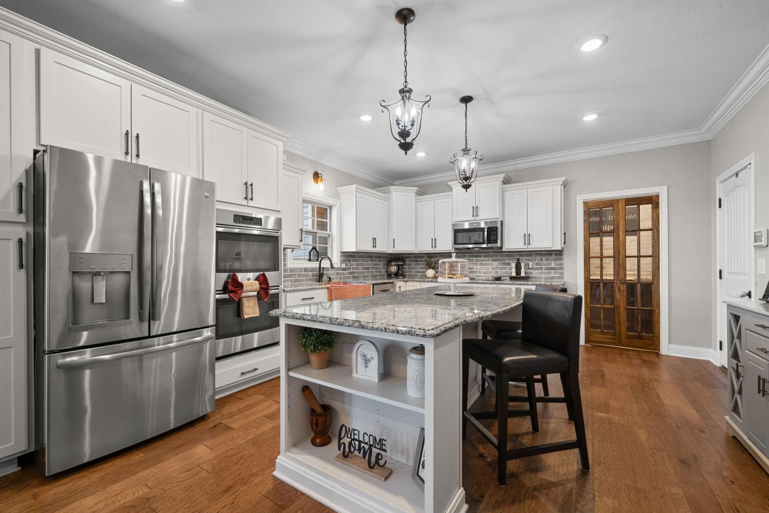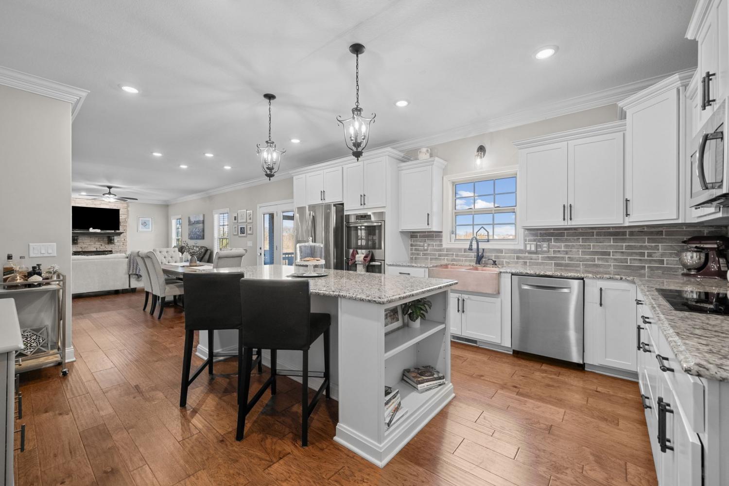 A one of a kind! This amazing Home offers a truly unique floorplan and lots of unexpected extras everywhere you turn. From the custom pantry, to the additional space and hook-up for a 2nd washer in the spacious laundry room. The stunning copper sink adds the perfect touch to this beautiful kitchen. The screened-in deck leads to the large secondary deck, ideal for cookouts and large gatherings. The large storage building out back, blends beautifully with the exterior of the home and offers lots of additional storage. A playground for the little ones to enjoy and an inground basketball hoop guarantees fun for all ages. Upstairs, Spacious bedrooms with lots of extra closet space and a bonus room that could also be used as a 5th bedroom. VA loan with a 3.99% interest rate can be assumed. Outstanding balance is $535,000 So many great details in this Home, it's best to see it in person. So don't wait to schedule a showing!