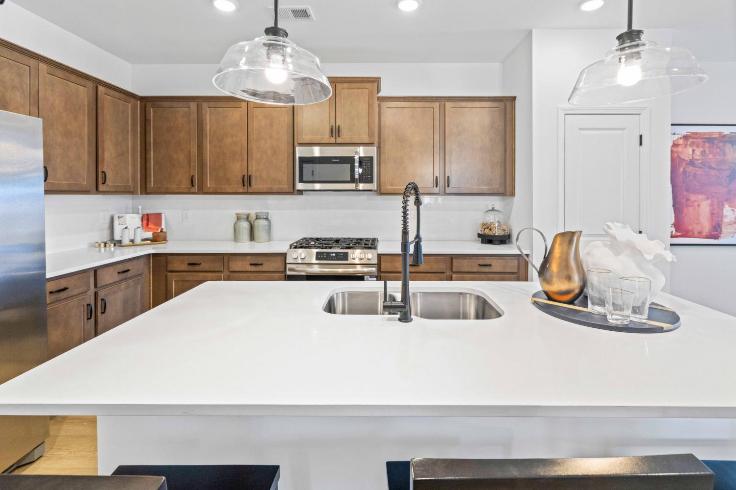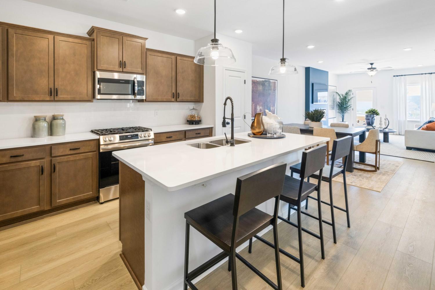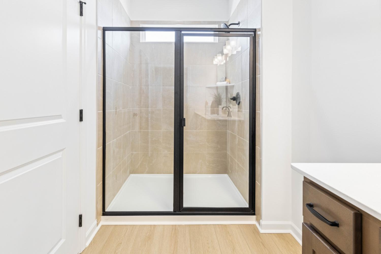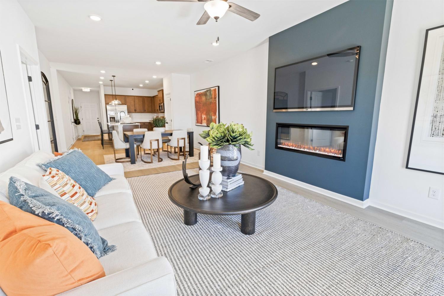 The Peachtree at Stratford Station by Smith Douglas Homes. ***Photos shown are of the same floor plan in another community. This home will feature the same layout but with a different exterior and interior color scheme. *** This 3-bedroom, 2-bath design greets you with a covered front porch that leads to an open layout with a front flex room and centrally located island kitchen. The spacious family room has direct access to the rear yard, which you can also enjoy through views from the luxurious owner's suite. Deep walk-in closets, a hall bath, and a laundry room serve secondary bedrooms. Estimated Completion: April 2026