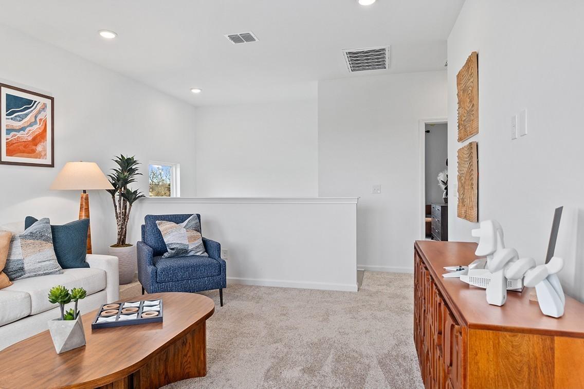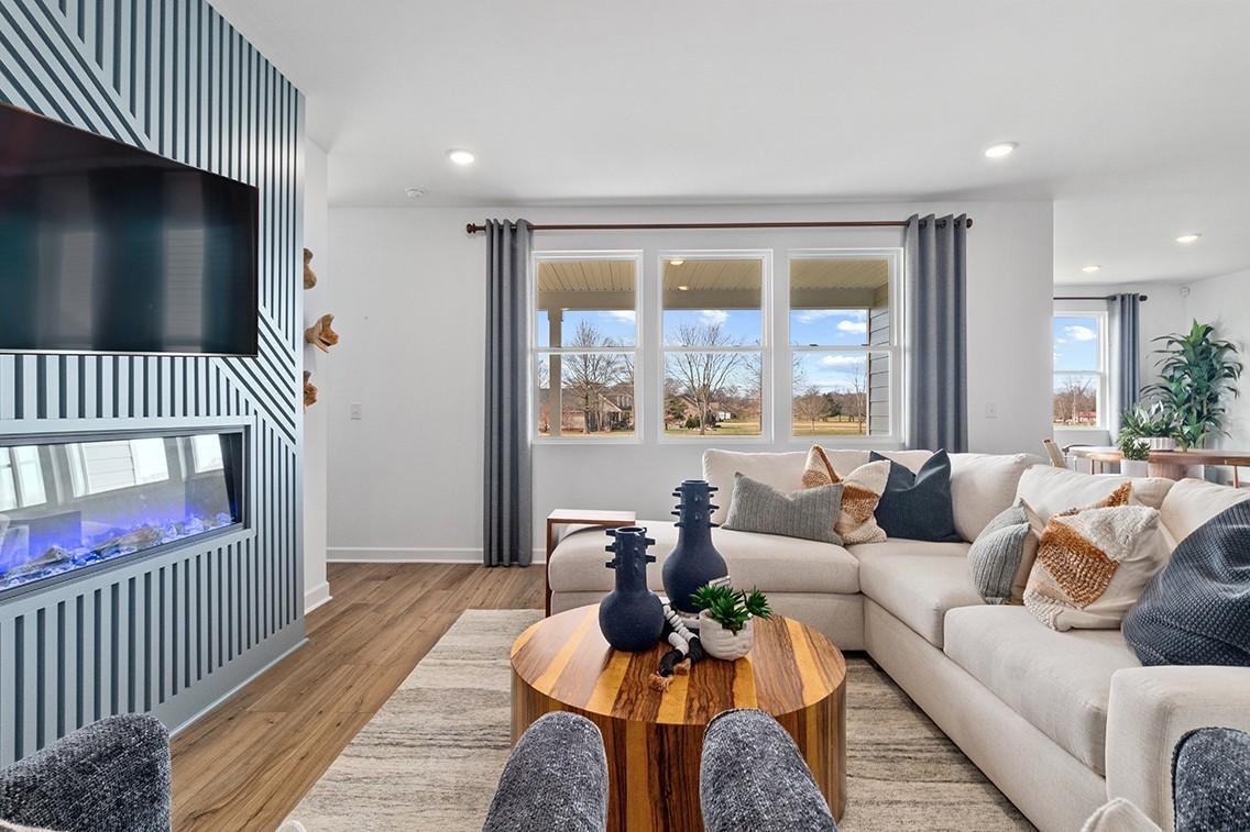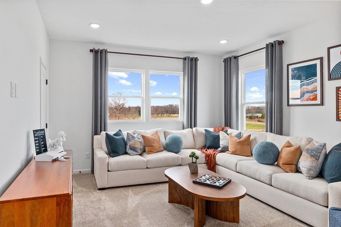 Step into the Hibiscus at The Oaks in Mount Juliet, TN, a home where modern style meets thoughtful design. The inviting foyer opens to a flexible space perfect for a home office or study, while the light-filled great room—with an electric fireplace—flows seamlessly to the dining area and kitchen featuring white cabinets and a walk-in pantry. From here, step onto the extended covered patio, ideal for morning coffee or evening gatherings. A guest room with an en suite bath and a convenient powder room ensure privacy and comfort for visitors. Upstairs, a versatile loft with extra storage offers a space for play, study, or relaxing. Two oversized secondary bedrooms, one with an en suite bath. The luxurious owner’s suite is a serene retreat, complete with sunlit windows, a spa shower, and a generous walk-in closet. Thoughtful details like a 8' front door, spacious laudry room, built-in valet/drop zone off the 3-bay garage add both convenience and charm. Large homesite around cul de sac.