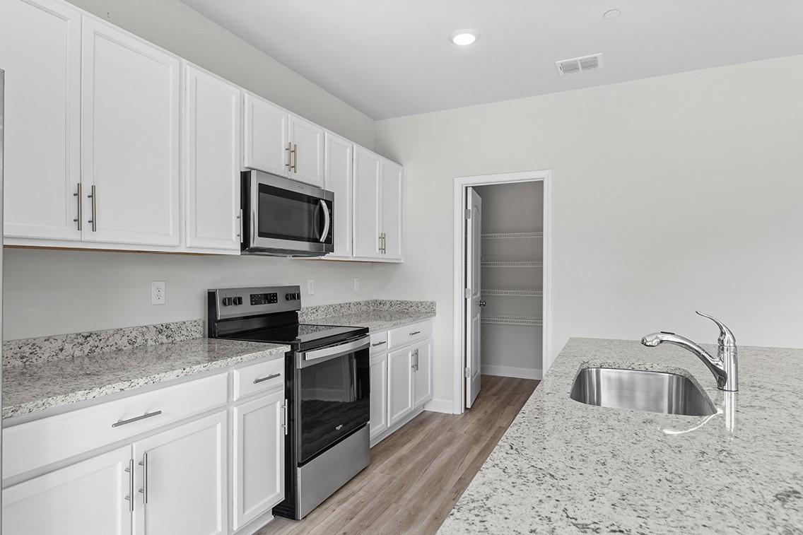 Discover comfortable, flexible living in this Harding plan at The Oaks in Mount Juliet, TN, thoughtfully designed for modern lifestyles. The main level welcomes you with an additional bedroom downstairs, ideal for guests, multigenerational living, or a private home office setup. Just beyond, the home opens into an inviting great room and kitchen—perfectly connected for everyday living and easy entertaining. The kitchen features white cabinets, extended counter space, and a smart, functional layout that makes cooking and hosting effortless. Step outside to a covered patio just off the kitchen, creating the perfect setting for grilling, outdoor meals, or unwinding in the evening. A built-in valet/drop zone near the 3-car garage keeps bags, shoes, and daily essentials neatly organized, while under-stair storage adds even more convenience. Upstairs, wood tread stairs with wood spindles add a polished architectural touch as you transition to the private living areas. With generous space, thoughtful storage, and a layout designed to adapt to your needs, this home offers comfort and flexibility for every stage of life.