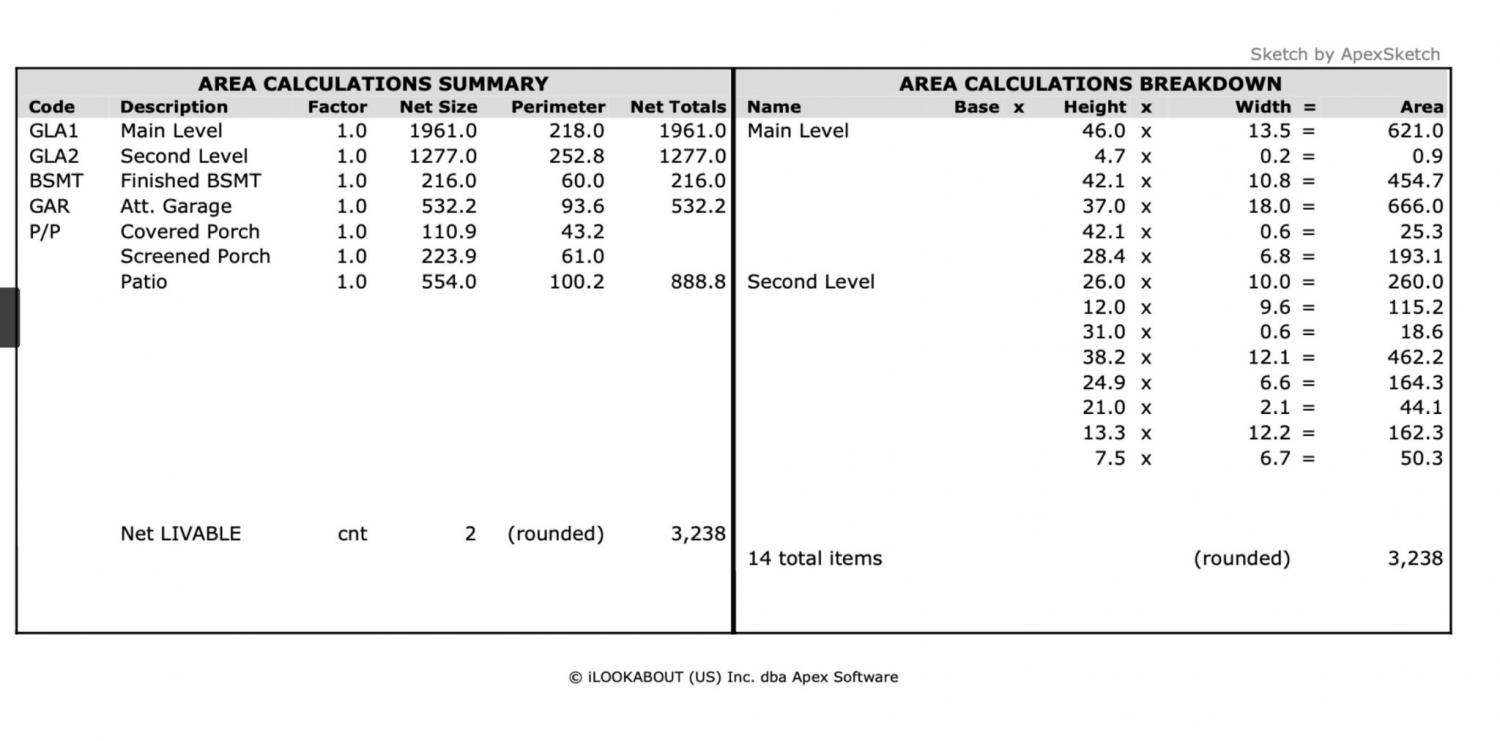 Building Area Total : 3238 Sq. Ft.
