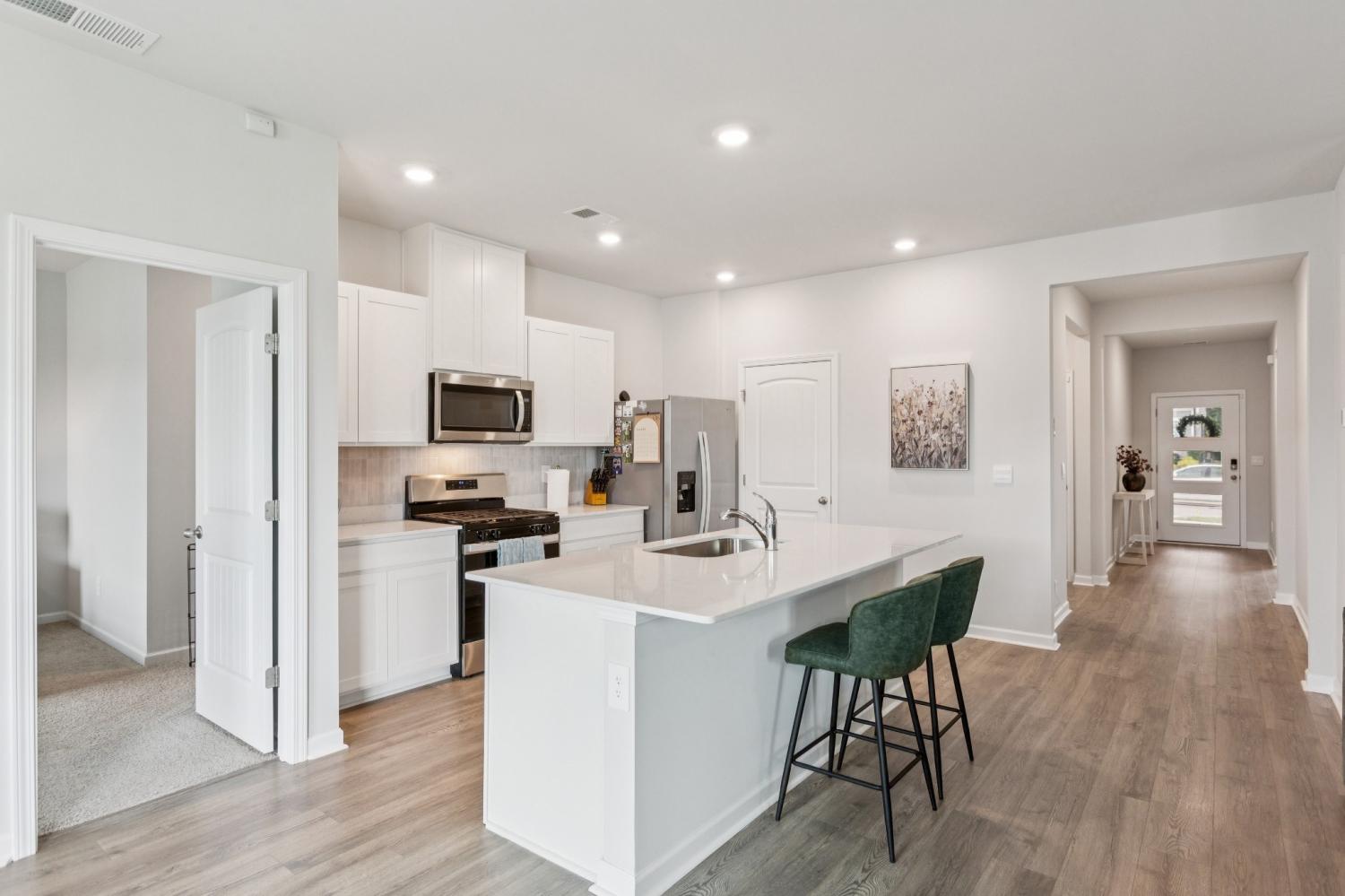 FENCED BACKYARD, REFRIGERATOR, WASHER & DRYER, WINDOW TREATMENTS, and DEEP FREEZE. A ONE-YEAR HOME WARRANTY PROVIDED BY SELLER. BETTER THAN NEW and Ready to move in!! Open Layout and ONE-LEVEL living with Private Primary Suite, Quartz Countertops, Tankless Water Heater, and hard surface flooring (carpet only in bedrooms). Spacious lot with added privacy, thanks to extra space between neighbors and common area on the left side of the property. Fantastic location with easy access to 109 and 386. Amazing Community Amenities include CLUBHOUSE, POOL with BEACH ENTRY, Outdoor GAS FIREPLACES, PLAYGROUND, Sidewalks throughout, and more! INTERNET INCLUDED with HOA Fee. Seller has a termite prevention service.