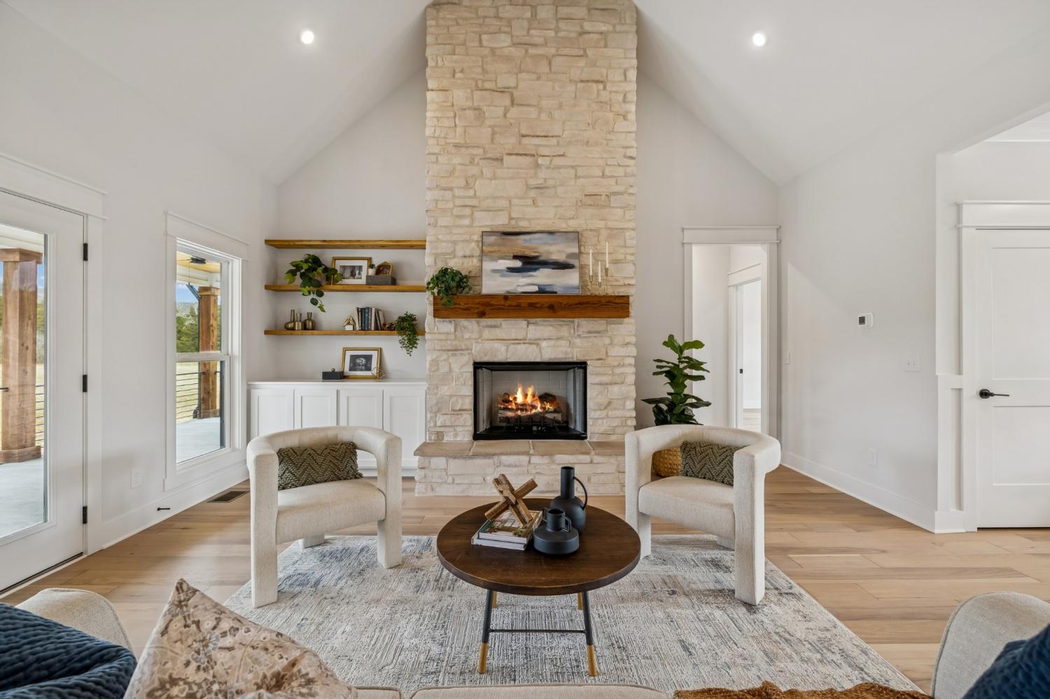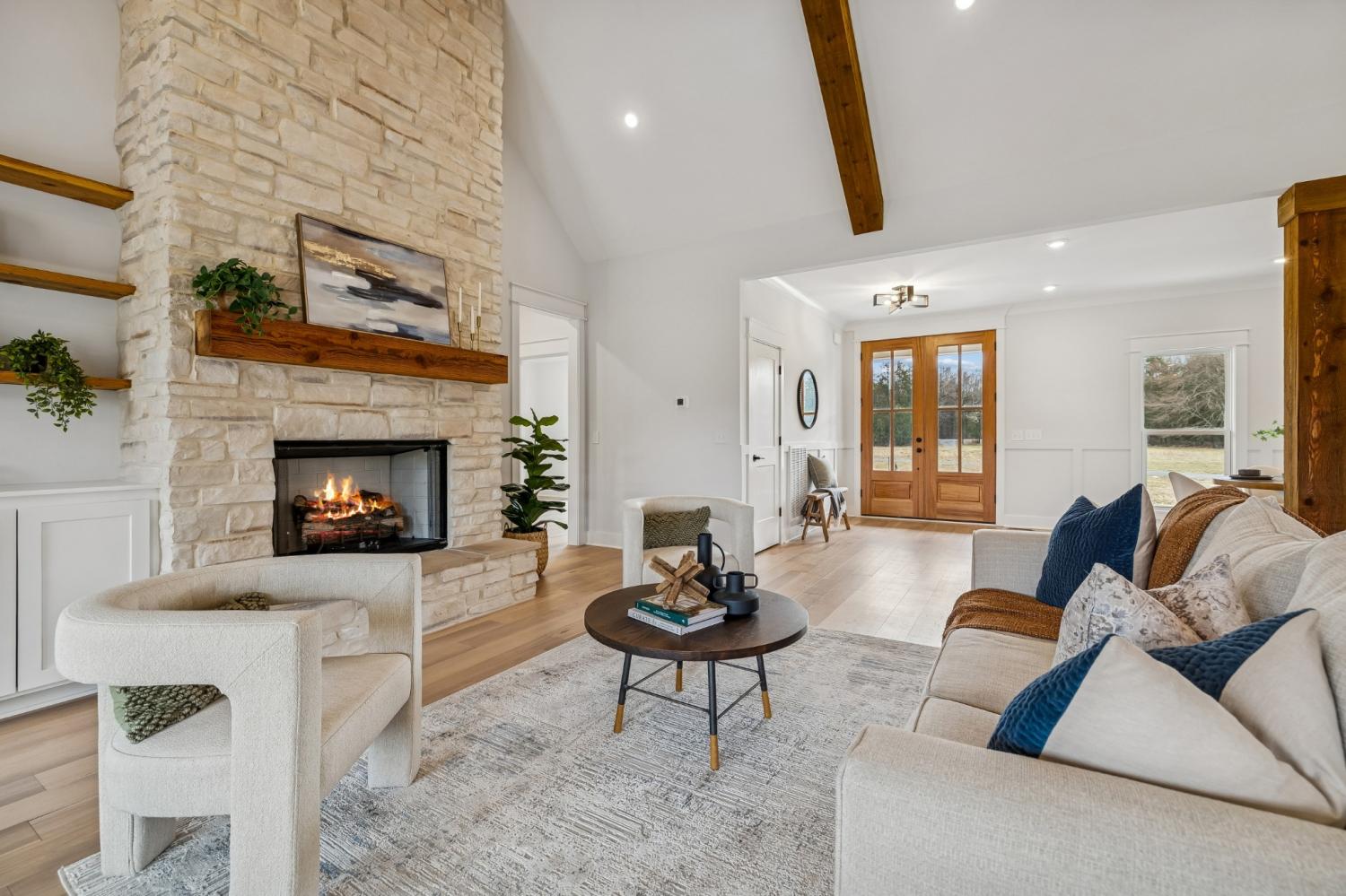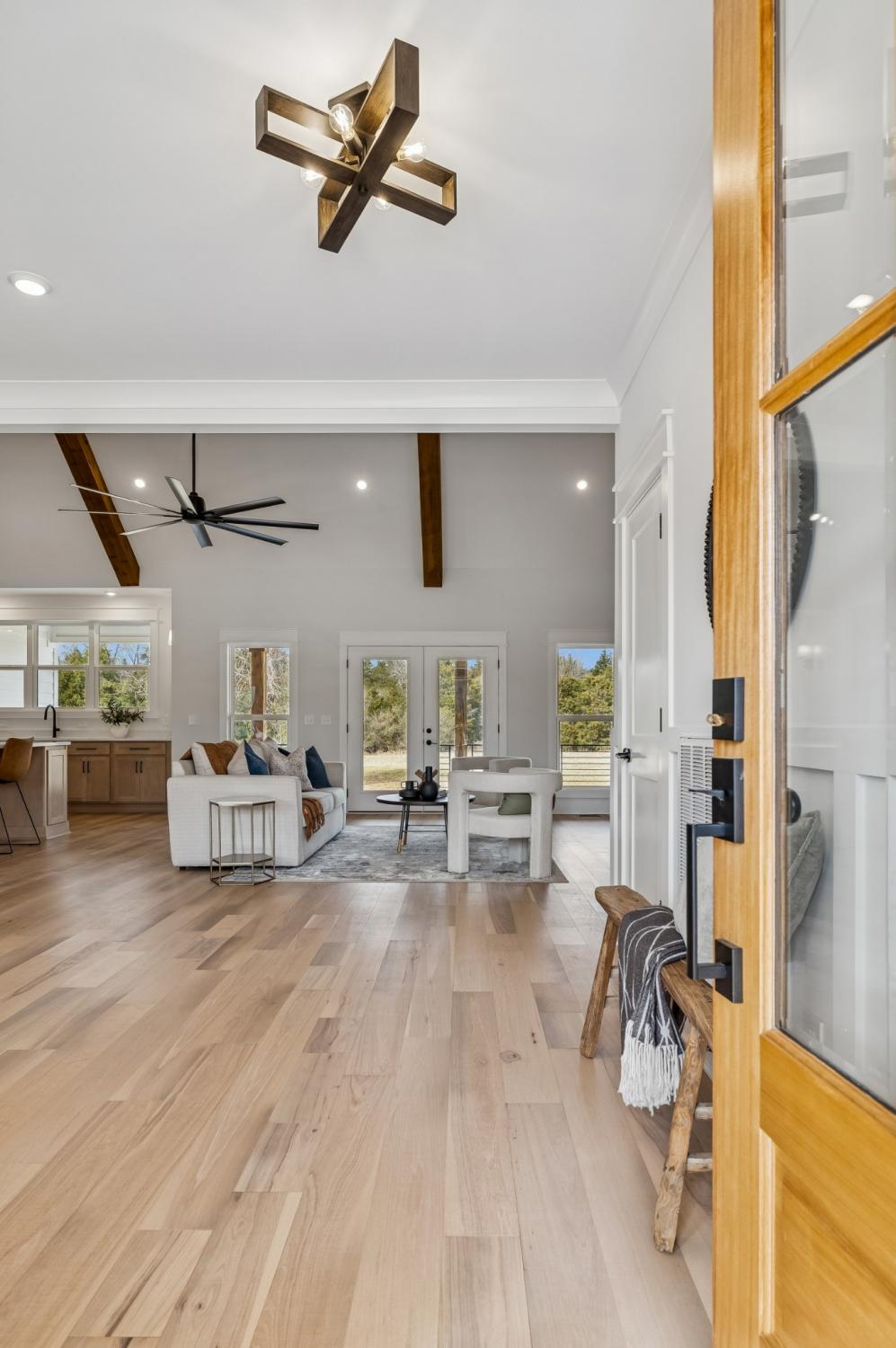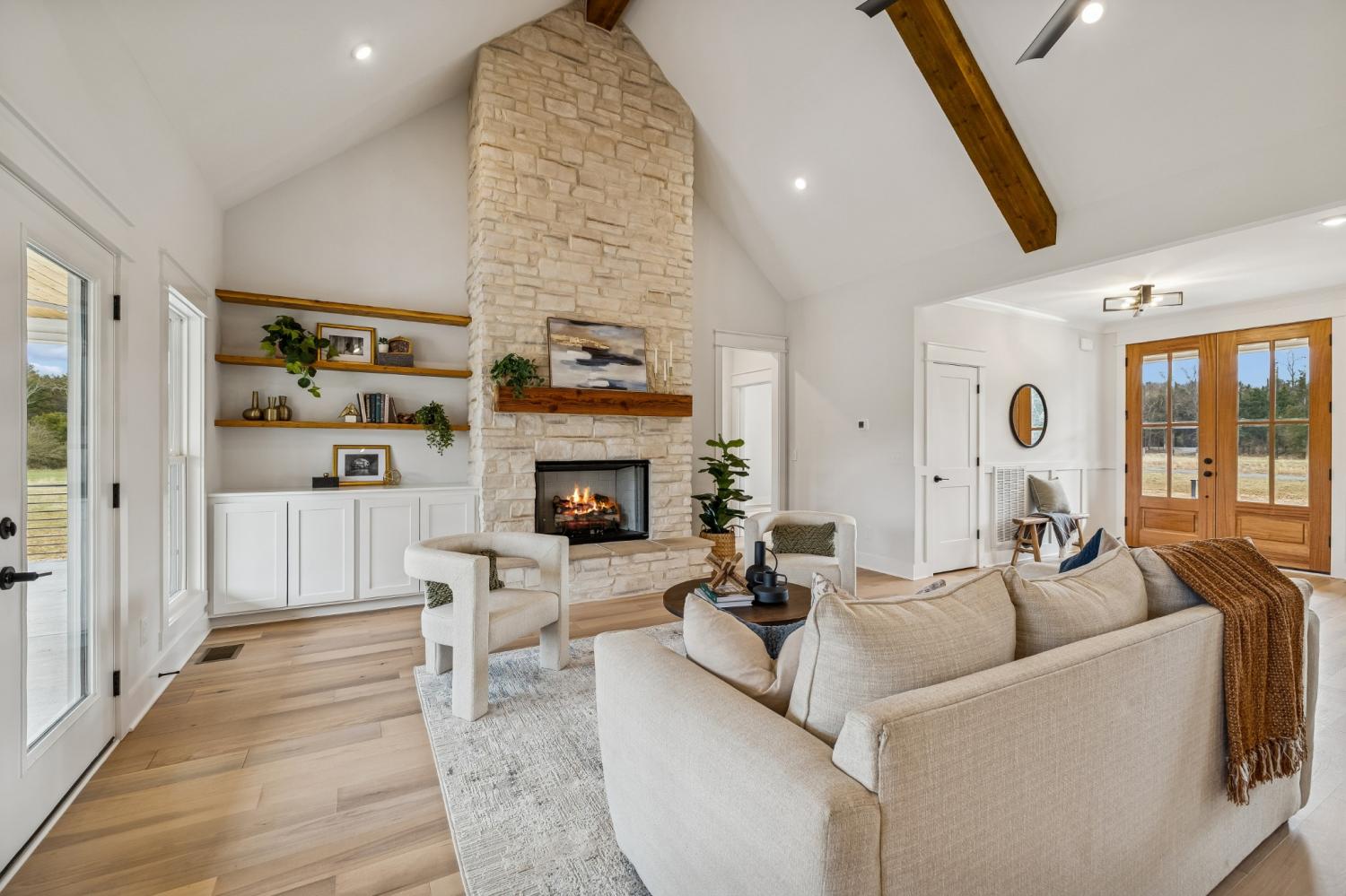 Experience the absolute perfect blend of luxury and country living in this stunning new construction by Simmons Builders, set on 5.13 acres of scenic Tennessee countryside. This spacious custom-built home showcases high-end finishes throughout, including rich hardwood floors, exposed cedar beams, and a gas fireplace accented by a stone mantle. The chef’s kitchen is designed to impress, with a custom gas stove hood and sleek counters, soft close cabinets, black fixtures, and the walk-in pantry you’ve been dreaming about. The primary suite offers the space, comfort, and style of a true relaxing retreat, with vaulted ceilings with warm wood beams, a huge double vanity, free standing tub, separate tile shower, and a walk-in closet. Two more bedrooms share another full bath downstairs, while guests have a convenient powder bath. Upstairs, you’ll find two more bedrooms, another full bath, and gorgeous media room with so much flexible space. Additional features include a large three-car garage, a convenient mudroom with built-ins, and inviting covered porches on both the front and back - perfect for taking in the peaceful surroundings. Make this luxury Tennessee home on countryside acreage your dream property today! Up to $10,000 paid towards Buyer’s Closing Cost - Contact listing agent for lender contact info and details.