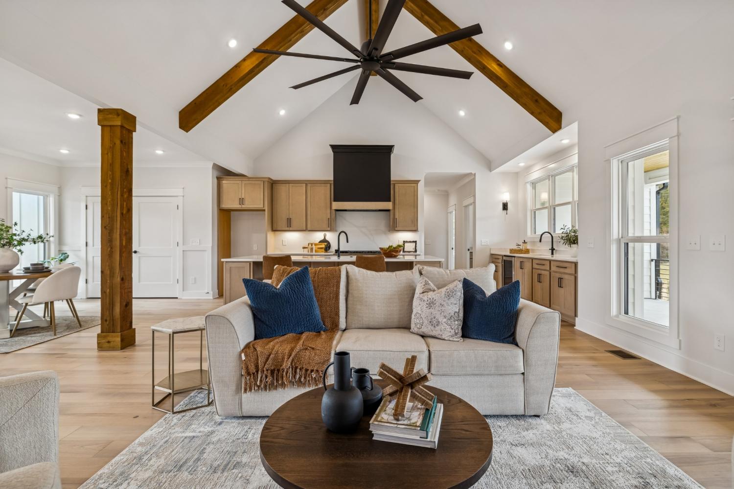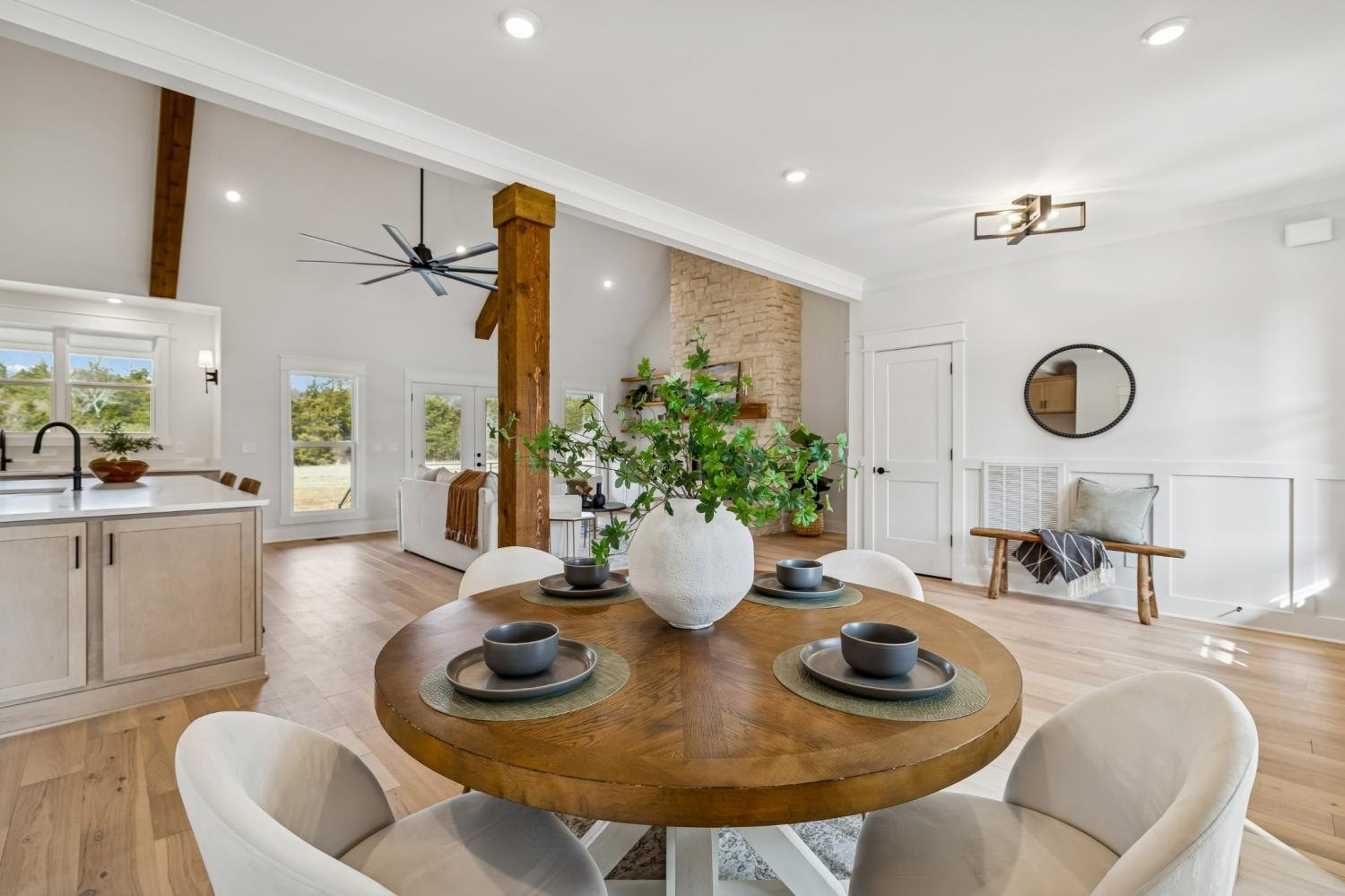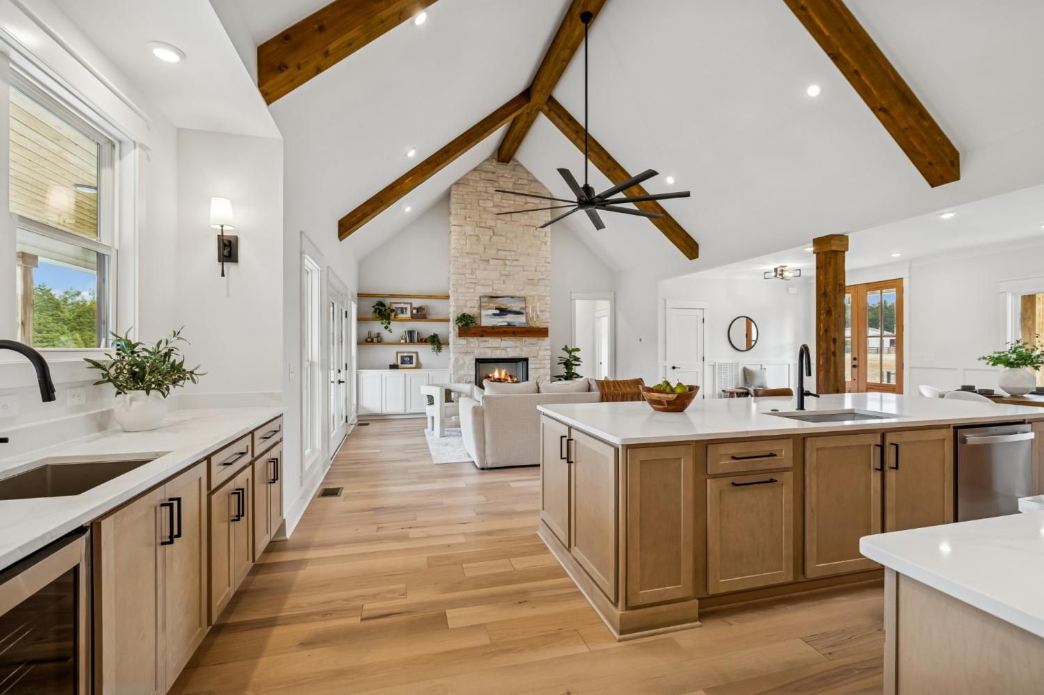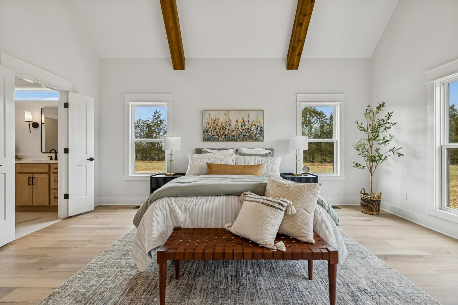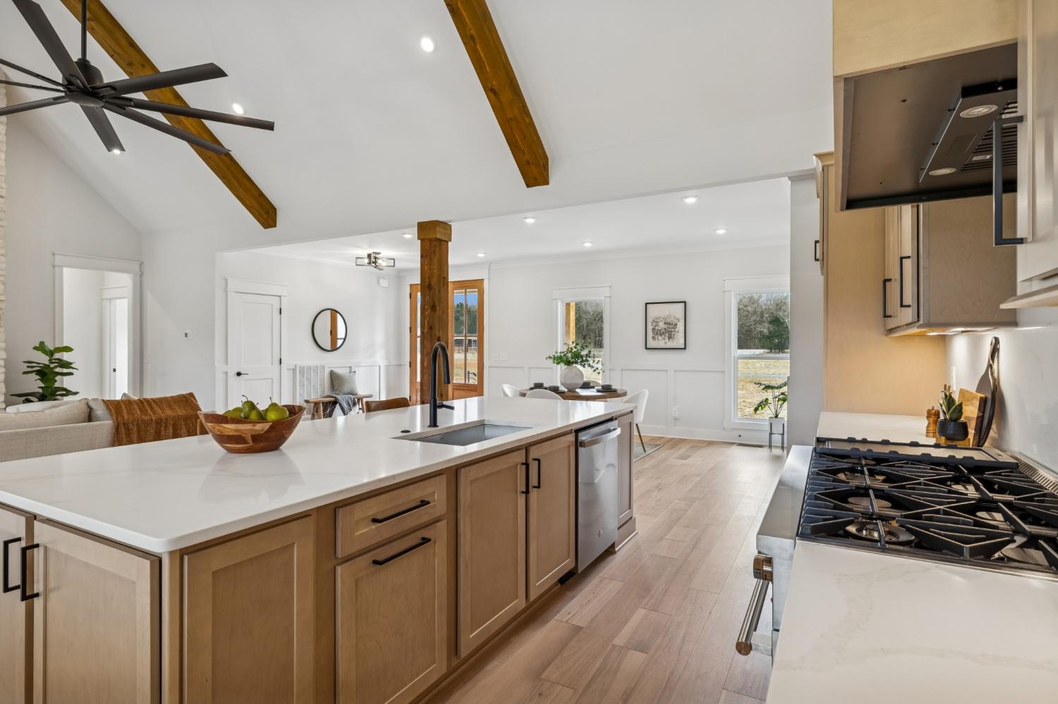 Experience the absolute perfect blend of luxury and country living in this stunning new construction by Simmons Builders, set on 5.13 acres of scenic Tennessee countryside. This spacious custom-built home showcases high-end finishes throughout, including rich hardwood floors, exposed cedar beams, and a gas fireplace accented by a stone mantle. The chef’s kitchen is designed to impress, with a custom gas stove hood and sleek counters, soft close cabinets, black fixtures, and the walk-in pantry you’ve been dreaming about. The primary suite offers the space, comfort, and style of a true relaxing retreat, with vaulted ceilings with warm wood beams, a huge double vanity, free standing tub, separate tile shower, and a walk-in closet. Two more bedrooms share another full bath downstairs, while guests have a convenient powder bath. Upstairs, you’ll find two more bedrooms, another full bath, and gorgeous media room with so much flexible space. Additional features include a large three-car garage, a convenient mudroom with built-ins, and inviting covered porches on both the front and back - perfect for taking in the peaceful surroundings. Make this luxury Tennessee home on countryside acreage your dream property today! Up to $10,000 paid towards Buyer’s Closing Cost - Contact listing agent for lender contact info and details.