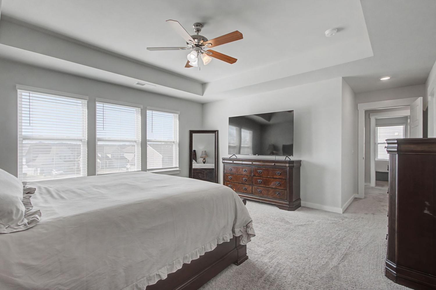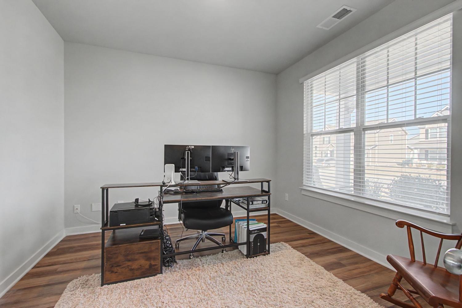 The front porch welcomes you to this lovely home on a LARGE corner lot. You have a nice foyer with a private office off it. Great for people who work from home. Could also make this well lit room a downstairs play area, formal dining, music room or library. There is a nice large breakfast /dining room that has three windows. You will make memories in the living room. The open kitchen in this house is a gem. It features white cabinets, stainless steel appliances, bar area, pantry, quartz countertops, and tile backsplash. There a bedroom and full bath downstairs. Upstairs features a bonus room. The large primary bedroom features a trey ceiling, a wall of windows and a ceiling fan. The attached bathroom has a wonderful large shower with a bench, double sinks, large vanity and water closet. Two more bedrooms complete the upstairs.