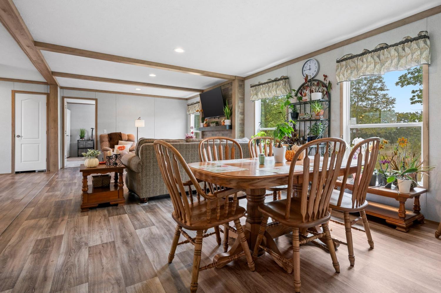 Looking for Land, Home, Country Setting......This beautiful 3 BR/2Bath home built in 2022 on a permanent foundation is situated on 12.6 private acres in the country! The spacious living room features laminate flooring, recessed lighting, and a remote-control multi-color fireplace with blower. The open kitchen includes a large island, abundant cabinetry, stainless steel appliances, and a generous pantry. The master bedroom offers a spa-like bath with soaking tub, separate shower, double vanities, and an oversized walk-in closet. Two additional bedrooms provide ample closet space. Large laundry room and extra storage. Bonus built-in desk area is ideal for working from home. The 12.6 acres provide endless possibilities....recreation, cattle, horses, gardening, or simply enjoying the privacy and open space. Small outdoor storage building included.