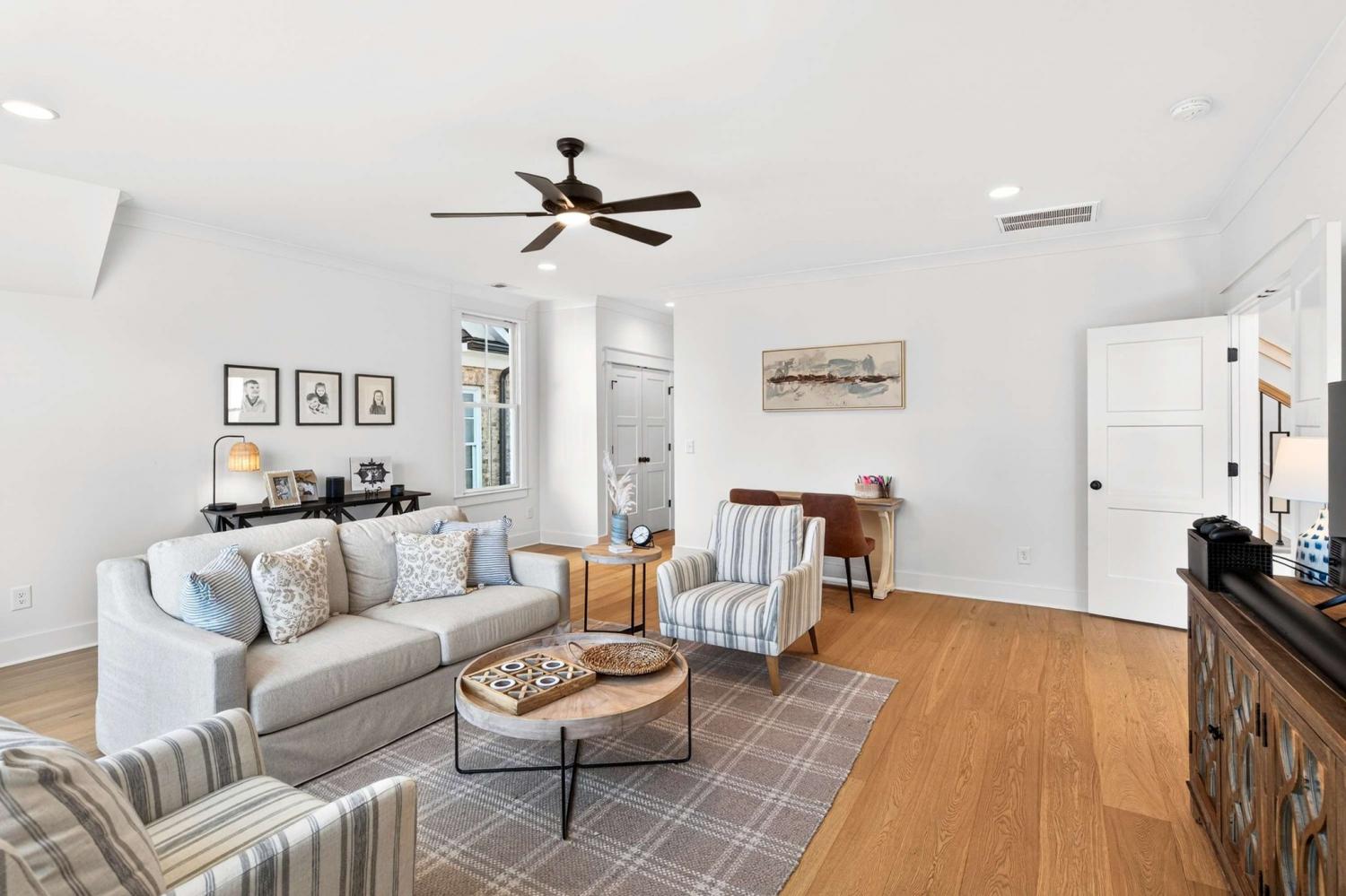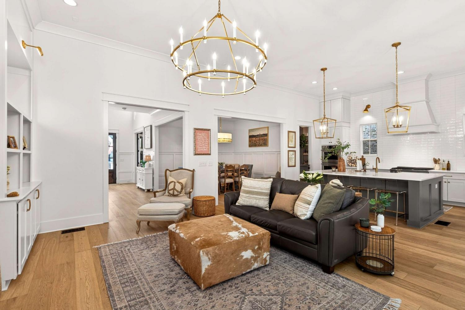 Welcome to 1232 Luckett Rd in the highly sought after Stephens Valley community. This 2023 DeFatta Custom Homes build welcomes you with its deep front porch & gas lanterns, perfect for Summer night porch sitting on this quiet street. As you enter the home, you're welcomed by a wide, light filled entryway. You'll find a large bdrm & full bath on the main floor (now being used as a home office), as you continue, you'll find a lrg formal dining rm that opens to the beautiful gourmet kitchen and living rm. This kitchen is what dreams are made of with an oversized island, beautiful quartz countertops, gas range, double ovens, storage for days and a walk-in pantry that offers a separate ice maker and rm to hide the microwave, toaster and coffee maker. The living rm has 12 ft ceilings, a gas fireplace, flanked by beautiful built-in bookshelves and designer sconces & lighting. Off of the living rm, double doors open to a spacious covered porch with a fireplace..the perfect space for watching football games or entertaining family & friends. There is also a turf side yard that is perfect for four legged friends. Down the hall you'll find a lrg utility rm with cabinetry & a sink, making laundry tolerable and even enjoyable! There is a convenient drop-zone as you enter from the 3C Gar and just past this, a primary suite oasis. This primary bdrm offers natural light, soaring ceilings, his & hers closets, a gorgeous marble BA with separate vanities and tub & shower. Upstairs you'll find a lrg landing that leads you to a bonus rm with storage and an additional half bath, just past this you walk up a few steps to 2 spacious bdrms joined by a large Jack & Jill BA. Both these rms have lrg walk in closets & additional storage. This home offers rare hardwood floors on both floors. Stephens Valley offers a resort like pool/clubhouse, walking trails, playground, sport courts & community garden and is zoned Williamson Co schools! 10 mins to Ensworth and 15 mins to CPA
