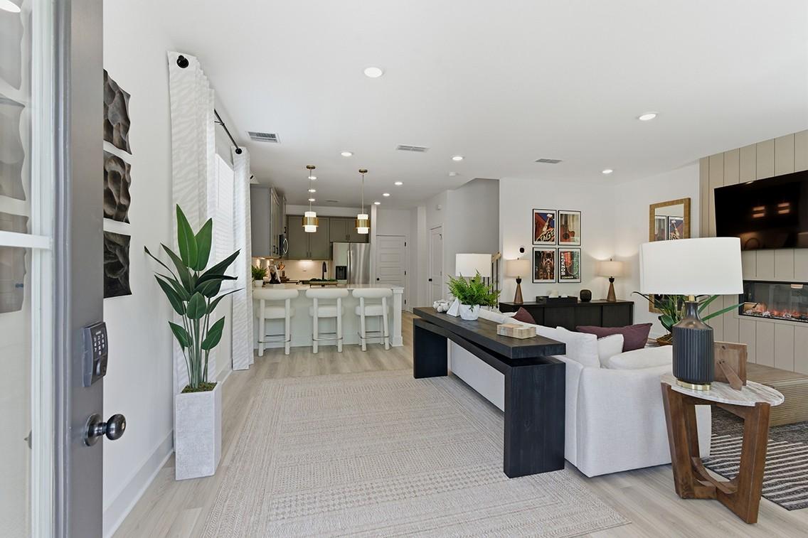 Stokers Village is a brand new community now selling in North Nashville, just 5 miles from downtown! Designed to shine, the Cameron floorplan offers open living and dining areas creating a welcoming space to gather. In the kitchen, shaker style cabinets are paired with quartz countertops and a crisp white backsplash, adding contrast and a modern finish that elevates the entire space. A convenient powder bath and smart storage keep the main level both stylish and functional. Upstairs, you are welcomed into a serene owner’s suite featuring two walk-in closets—rare for townhome living—and a private bath with dual sinks and a walk-in tiled shower. Two additional bedrooms, each with walk-in closets, offer flexible living options for guests, work-from-home needs, or hobbies. An upstairs laundry room adds everyday convenience. Additionally, the alley-loaded 2-bay garage keeps the exterior polished and gives extra room for storage. Every home at Stokers Village includes Century Home Connect® smart home features, along with stainless steel LG kitchen appliances—refrigerator, oven, microwave, and dishwasher—so you can move in with confidence from day one. Reach out to Community Sales Agent for more information on specific features of each individual home.