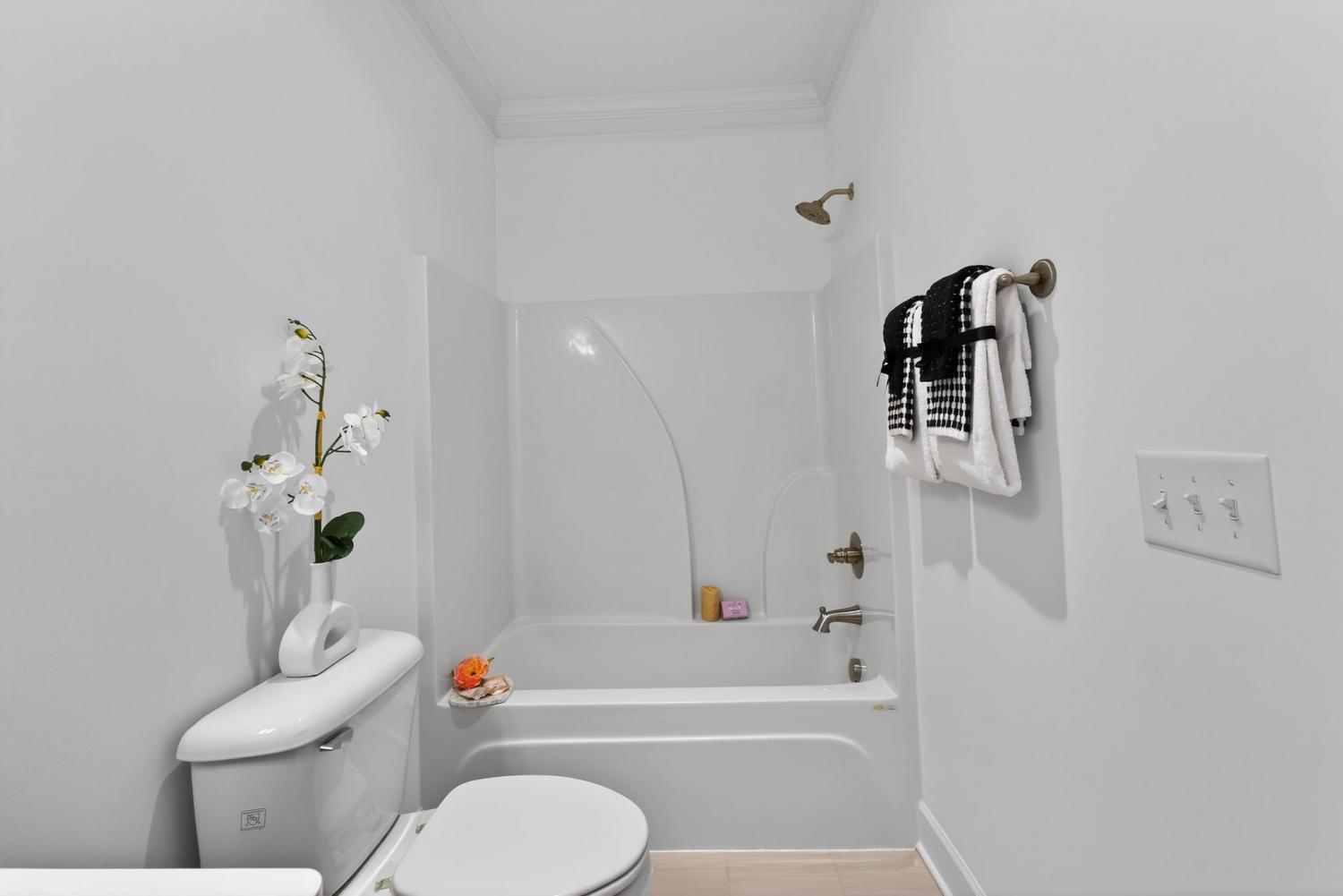 Welcome to Stonebridge at Three Rivers — one of Murfreesboro’s most desirable communities! The Magnolia plan offers nearly 3,000 sq ft of stylish, low-maintenance living with a functional, well-designed layout. Step into a welcoming foyer that opens to a formal dining room, perfect for hosting gatherings. Just beyond, the open-concept kitchen, breakfast nook, and spacious living room create the heart of the home. The kitchen features an 11-ft island with white Zen Quartz countertops, Alpine White soft-close cabinetry with pull-out drawers, under-cabinet lighting, and stainless steel appliances. The large living room showcases an electric fireplace and French doors leading to an oversized covered back porch overlooking a private, tree-lined backyard — ideal for relaxing or entertaining. The main-level primary suite is privately positioned and offers a tiled shower, double vanity, garden tub, linen closet, water closet, and a spacious walk-in closet. Two additional bedrooms a full bath and a powder room are also located on the main floor. A generous laundry room with freestanding sink, extra storage closets, and walk-in attic storage add everyday convenience. Upstairs, a massive bonus room with its own full bath and two closets provides flexible space for a theater room, hobby area, guest suite, or second primary suite. With over $20,000 in upgrades—including LVP flooring, crown molding, 5¼" baseboards, White Zen quartz throughout, recessed lighting, and epoxy garage flooring—this home stands out. HOA amenities include a clubhouse, fitness center, pool, pond with fountain, walking trails, water, sewer, trash pickup, landscaping, sprinkler maintenance, plus exterior and roof insurance. Luxury finishes, privacy, and easy living—all in one exceptional home.