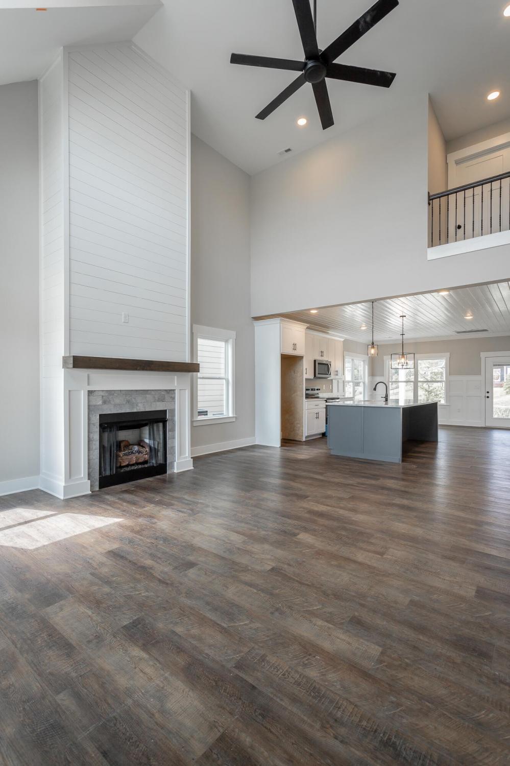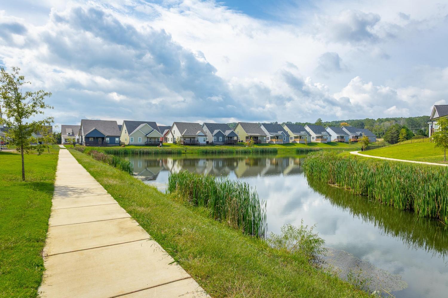 Open House Sunday 2-4pm! Welcome to The Grove, a convenient Ringgold neighborhood zoned for Heritage schools. This NEW 4 Bedroom, 3.5 Bath home features a fireplace, covered porches, and more, spanning 2,388 square feet. The exterior boasts low-maintenance fiber cement siding, brick accents on the foundation elevation, low-E vinyl windows, a zero-entry raised slab foundation, and a fully sodded, landscaped yard. This charming, sidewalk-lined neighborhood offers a swimming pool, community pond, and walking paths, with convenient access just 2.7 miles from I-75 at Battlefield Parkway--23 minutes to Dalton and 19 minutes to downtown Chattanooga. The Great Room greets you with a vaulted ceiling, gas log fireplace with horizontal shiplap surround, and luxury vinyl plank flooring (waterproof and scratch-resistant) that seamlessly flows into the Kitchen and Dining Areas. The Kitchen is equipped with an oversized island, stainless steel sink, quartz countertops, Whirlpool stainless steel appliances, soft-close cabinetry, a double-door pantry, and a painted v-groove ceiling. The adjacent Dining Area opens to the covered back porch, providing serene views of the community pond. The main-level primary suite includes a vaulted ceiling and spacious ensuite bath with an oversized tiled shower, 6-foot soaking tub, Delta fixtures, quartz countertops, and a walk-in closet conveniently connected to the Laundry Room. Positioned at the back of the home, the primary suite also features windows overlooking the pond. Upstairs, 3 additional bedrooms and 2 full baths await. Bedroom 2 enjoys a private ensuite bath. This thoughtfully designed floor plan stands out with its generously sized closets and bedrooms, unlike many comparable homes. Backed by a builder's new home warranty for added peace of mind. Relax on your back porch to enjoy picturesque sunsets over the community pond, explore the extensive walking paths throughout the neighborhood, or cool off at the community swimming pool on w