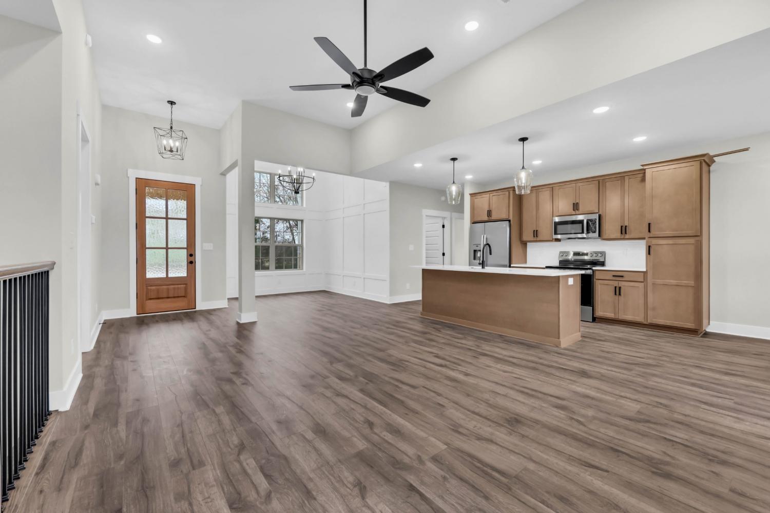 FINISHED BASEMENT HOME! Welcome to your private retreat! 1.5 acres with NO HOA and NO Restrictions! Basement home that is a two car garage with a separate alcove for lawn mower/tools/or whatever else. Basement is finished and has has a rec. room, full bathroom, another room that has a closet- can be used as you wish- and downstairs has a separate storage room. When it comes to this home, storage space is not a problem! The main level is three bedrooms with two full baths to include a dining room and utility room. All closets have custom wood shelving. Quartz counter tops in kitchen along with stainless steel appliances to include a refrigerator. Front porch and back deck have custom tongue and groove ceilings that are absolutely gorgeous! Be sure to look at the views in the picture from the back deck! The lighting on this house alone is stunning. Did I mention the extra concrete poured out back for entertainment, working on a car, or whatever else you'd like? Contact Lauren for more information 9315618579