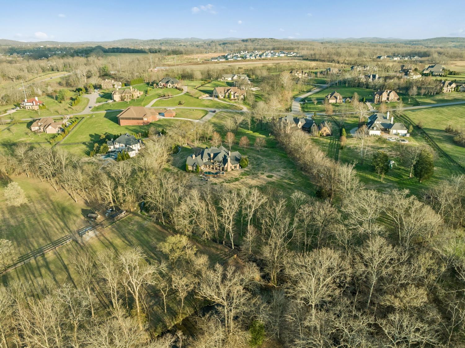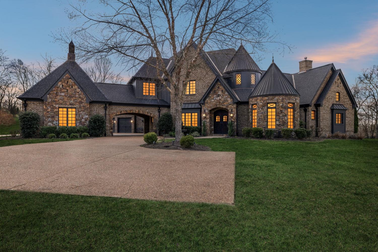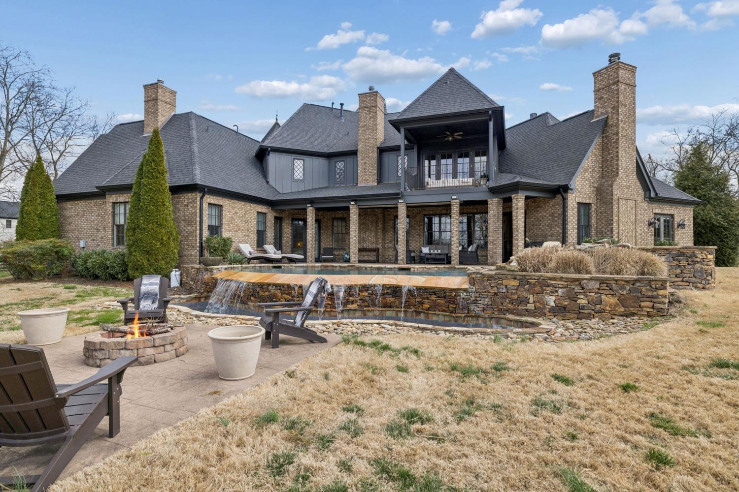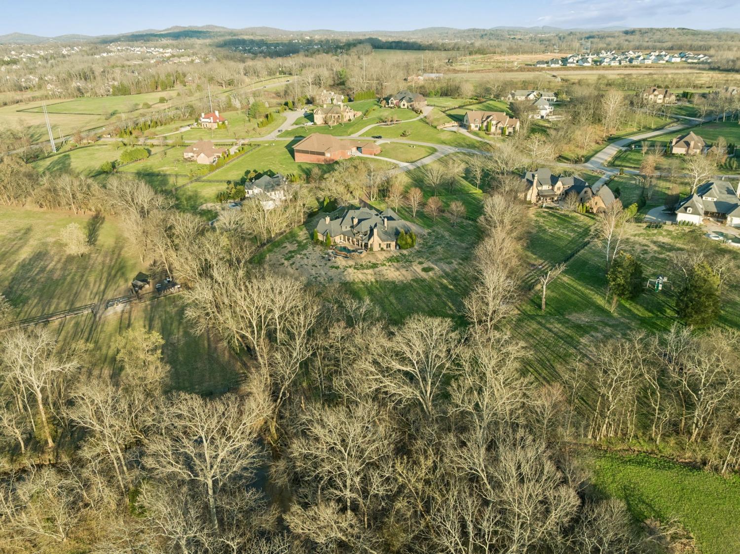 2.82 acres. Creek frontage. Panoramic horse farm views. Minutes to Franklin. A world away from everything else. It’s All About the Views! Rare offering in the exclusive Black Hawk subdivision, this stately custom brick and stone residence is gracefully set on 2.82 scenic acres along Arrington Creek, capturing panoramic pastoral countryside views. A gated entry, circular drive, welcoming arched entry, and porte-cochère establish an elegant arrival. Designed for both everyday comfort and refined entertaining, the home showcases timeless architecture, quality craftsmanship, warm natural materials, and expansive windows that fill the interior with light while framing the serene landscape. The main level features inviting gathering spaces, coffered ceilings, wine cellar, a spa-style Owner’s Suite, and a grand chef’s kitchen with quartzite countertops and a professional pizza oven. Upstairs offers a theatre room, mini kitchen, gym setup, and a covered veranda—perfect for morning coffee overlooking the saltwater pool or enjoying spectacular sunset evenings. Beautifully manicured grounds, private creek frontage, and exceptional privacy create a true retreat setting with seamless indoor-outdoor living. Conveniently located less than 20 minutes to historic downtown Franklin, approximately 30 minutes to Nashville, and about 40 minutes to Nashville International Airport. A rare blend of luxury, tranquility, and accessibility—this is more than a home, it’s a lifestyle. Schedule your private showing today.