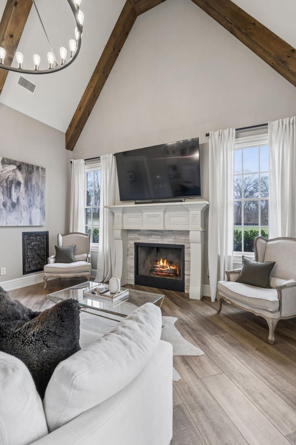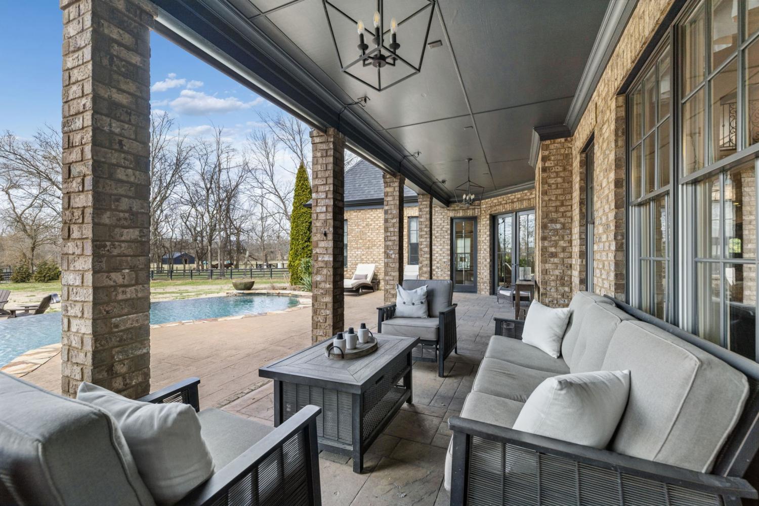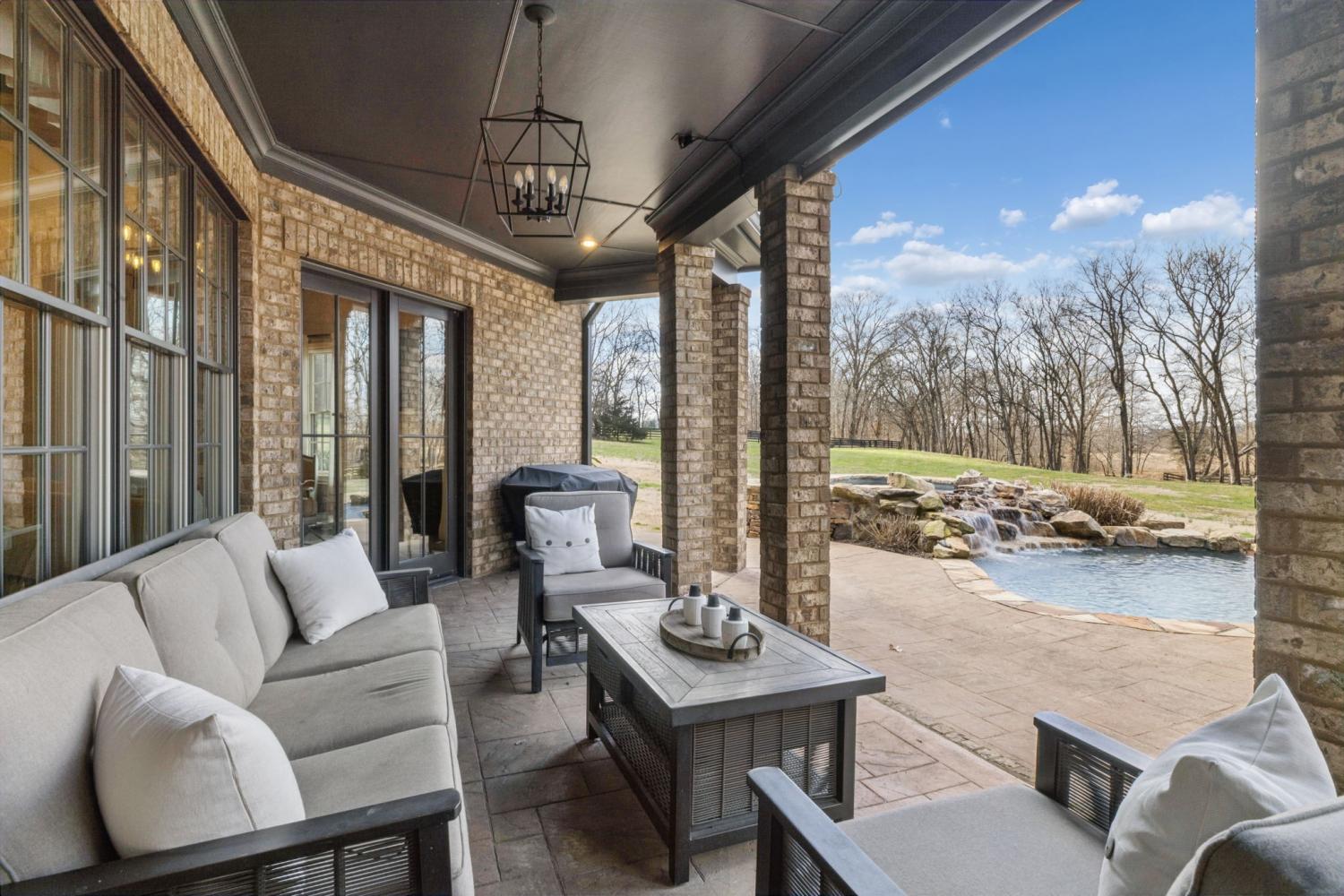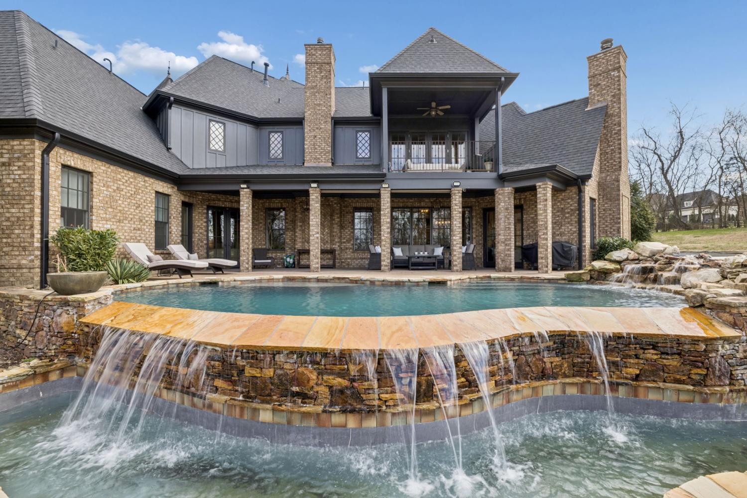 2.82 acres. Creek frontage. Panoramic horse farm views. Minutes to Franklin. A world away from everything else. It’s All About the Views! Rare offering in the exclusive Black Hawk subdivision, this stately custom brick and stone residence is gracefully set on 2.82 scenic acres along Arrington Creek, capturing panoramic pastoral countryside views. A gated entry, circular drive, welcoming arched entry, and porte-cochère establish an elegant arrival. Designed for both everyday comfort and refined entertaining, the home showcases timeless architecture, quality craftsmanship, warm natural materials, and expansive windows that fill the interior with light while framing the serene landscape. The main level features inviting gathering spaces, coffered ceilings, wine cellar, a spa-style Owner’s Suite, and a grand chef’s kitchen with quartzite countertops and a professional pizza oven. Upstairs offers a theatre room, mini kitchen, gym setup, and a covered veranda—perfect for morning coffee overlooking the saltwater pool or enjoying spectacular sunset evenings. Beautifully manicured grounds, private creek frontage, and exceptional privacy create a true retreat setting with seamless indoor-outdoor living. Conveniently located less than 20 minutes to historic downtown Franklin, approximately 30 minutes to Nashville, and about 40 minutes to Nashville International Airport. A rare blend of luxury, tranquility, and accessibility—this is more than a home, it’s a lifestyle. Schedule your private showing today.