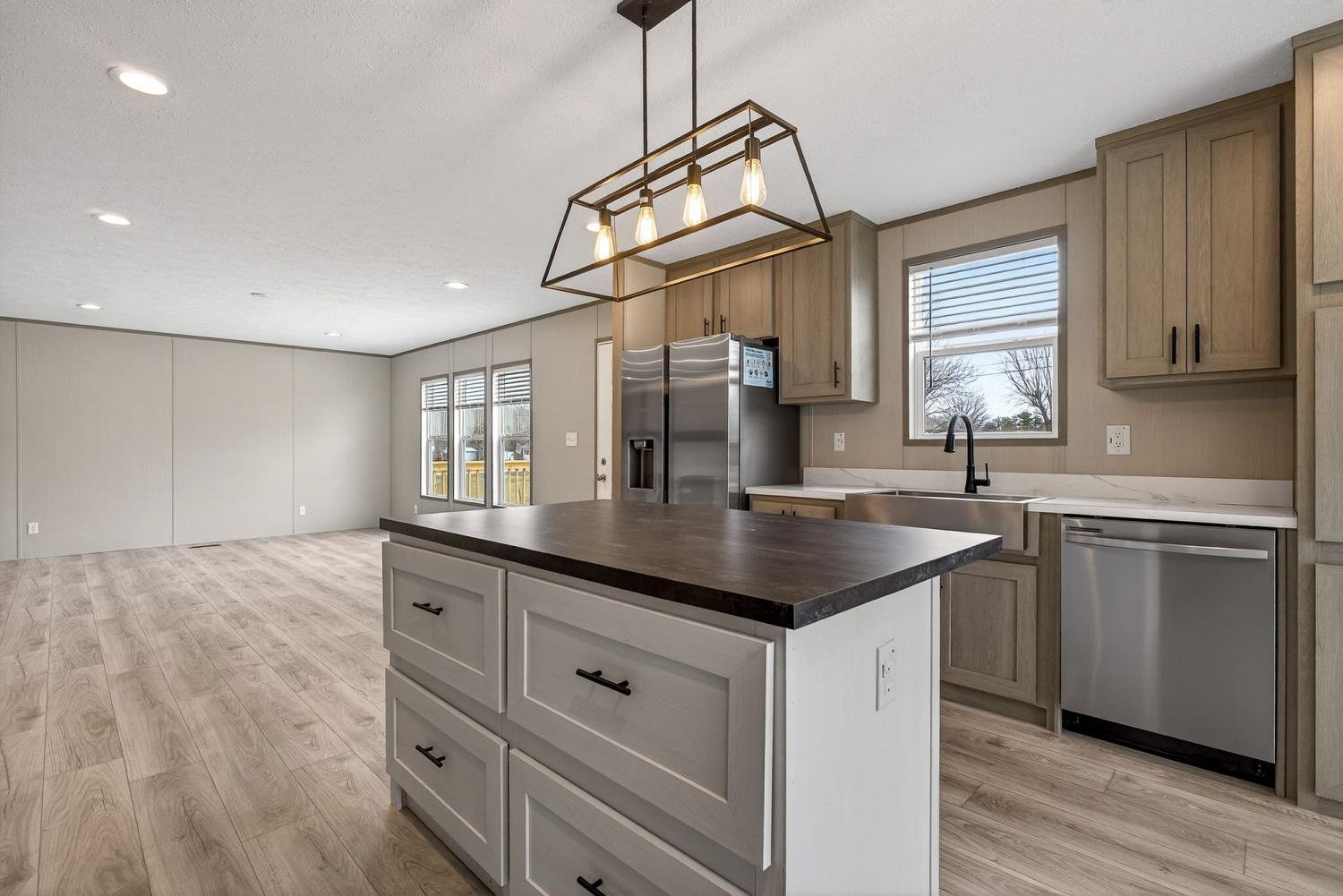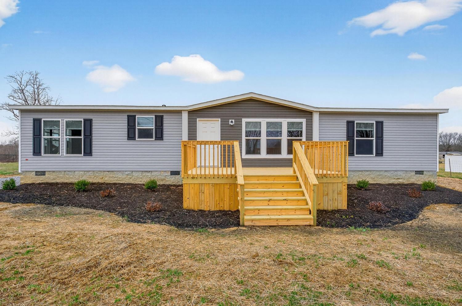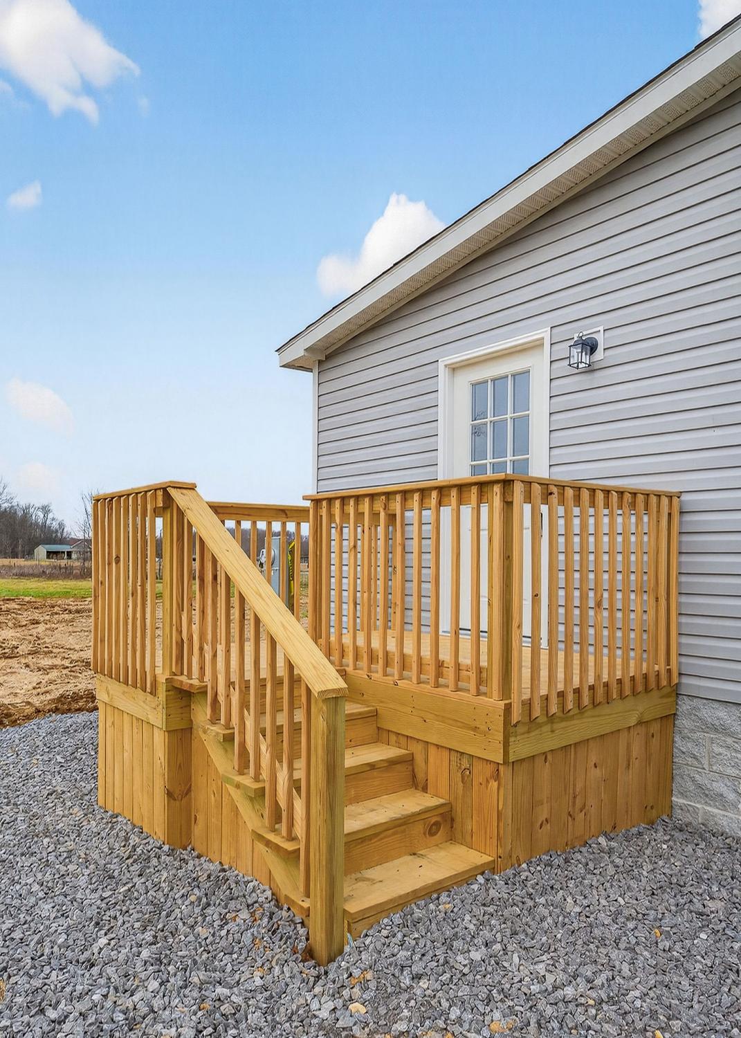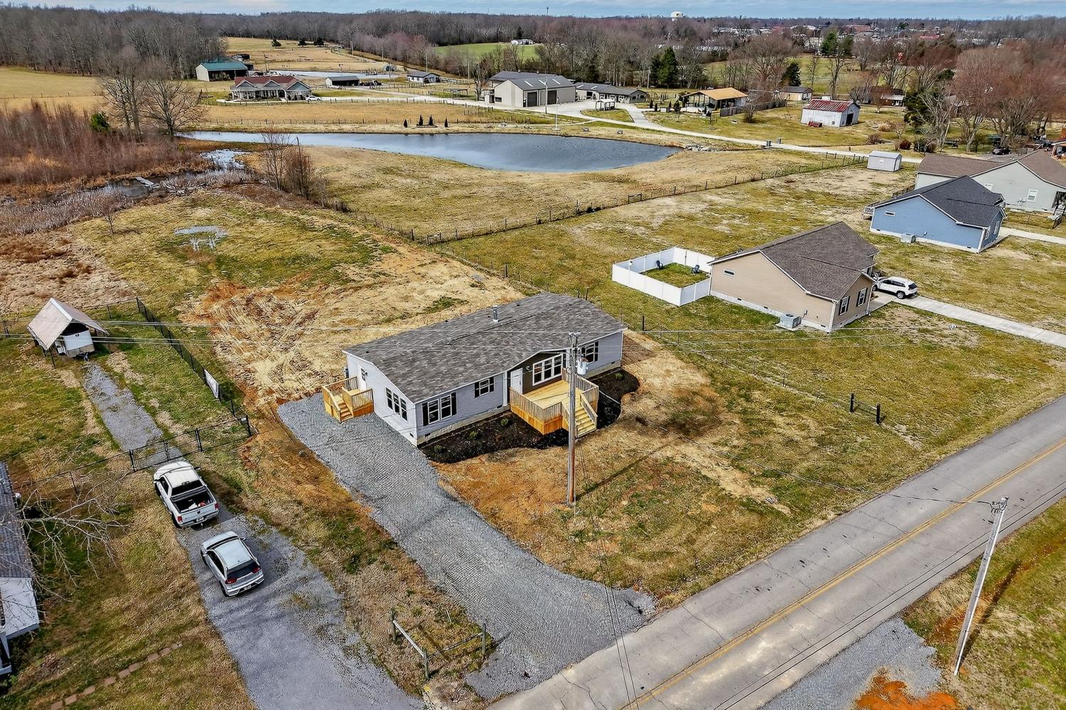 New construction home on 3.5 acres with a pond, offering a peaceful setting just seconds from town. Open concept living area with a wood-burning fireplace and built-in shelving. Kitchen is well laid out and all appliances convey. Large laundry room adds extra convenience. Primary suite features a tile shower, soaking tub, and spacious closet. Nice size bedrooms and closets throughout. Oversized front deck provides great outdoor living space. Enjoy country living with the convenience of town nearby.