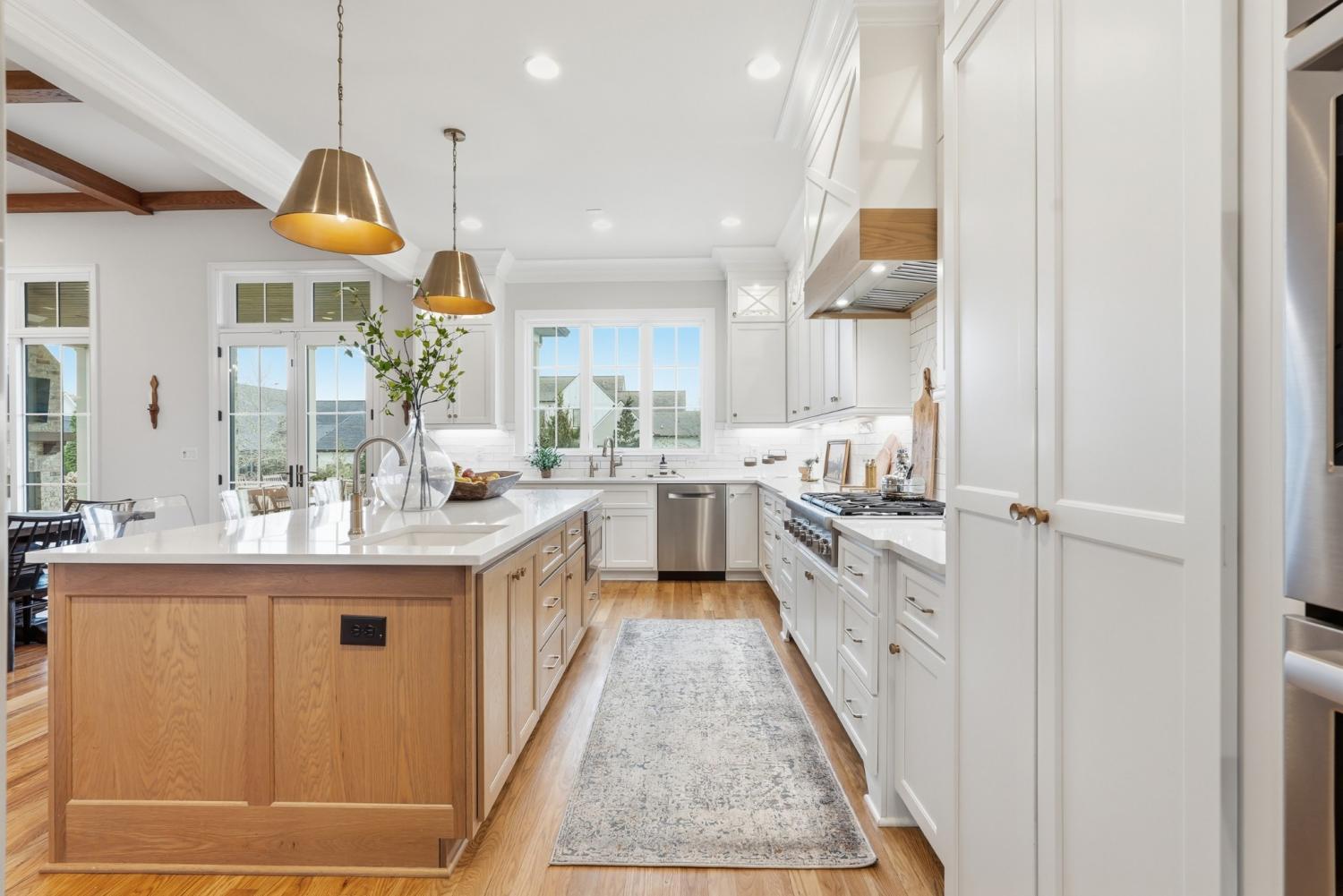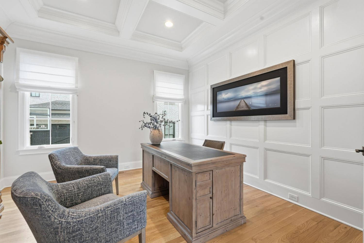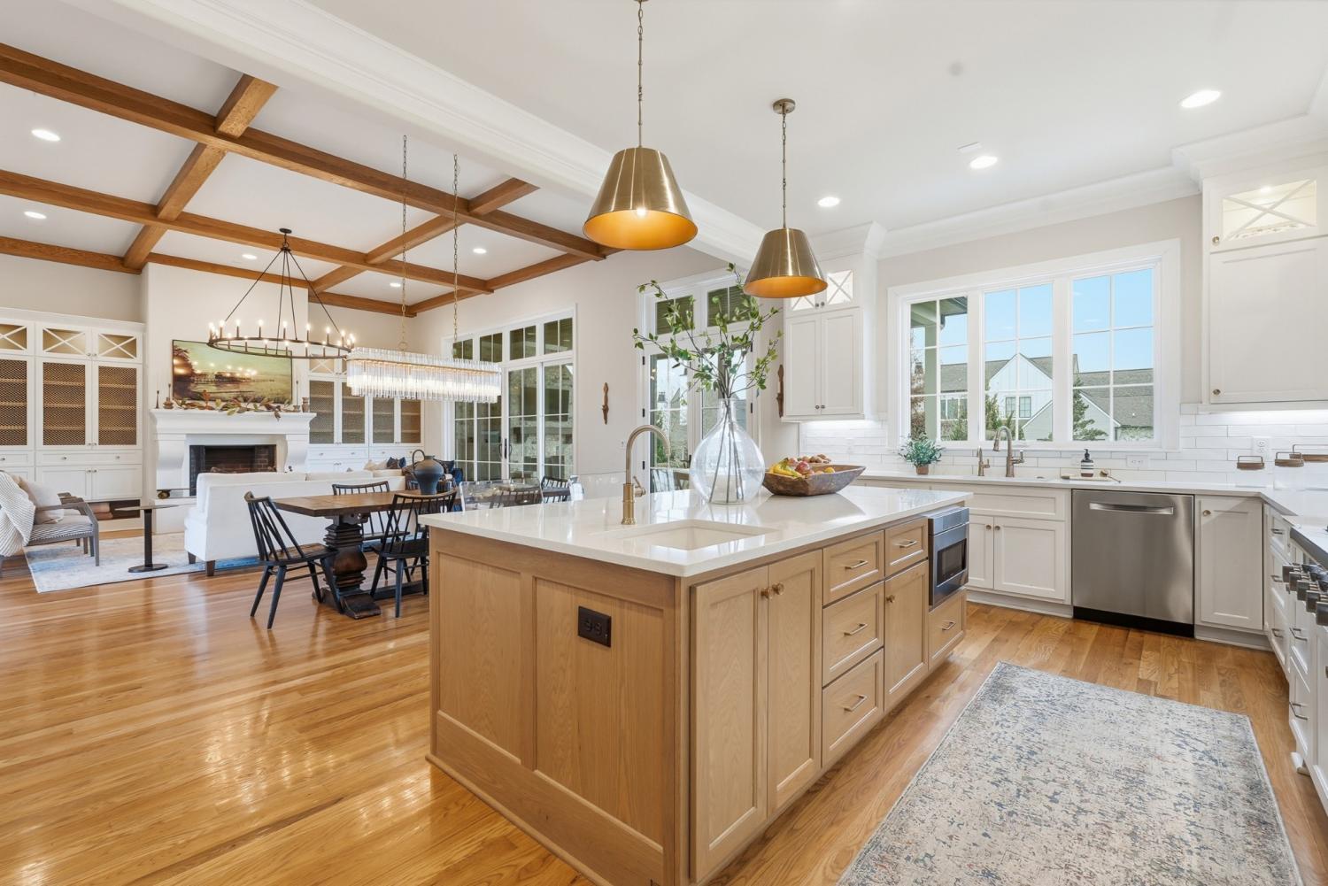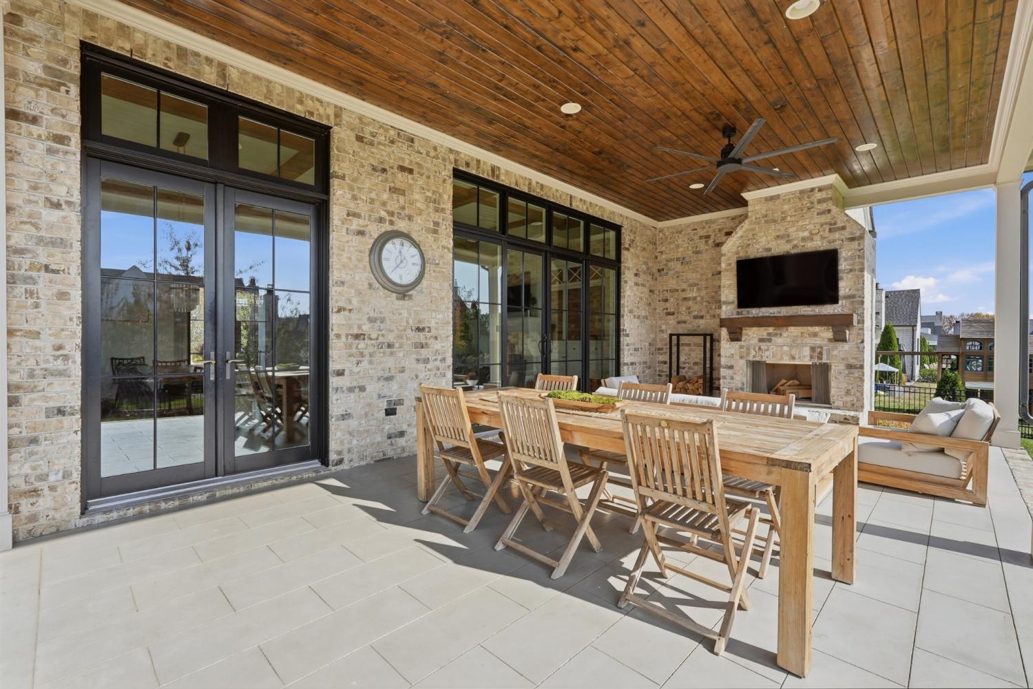 Set within The Grove, one of College Grove’s premier private gated club communities, this timeless brick abode was built in 2021 by Ford Classic Homes and blends refined design with exceptional livability. The home offers 4,945 square feet with 5 bedrooms and 5.5 baths, thoughtfully designed for both everyday living and entertaining. The main level features high ceilings, abundant natural light, and hardwood floors throughout. The living room is anchored by a wood-burning fireplace with custom built-ins and exposed beam ceilings, creating a warm and inviting gathering space that flows seamlessly into the dining area and kitchen. The kitchen is beautifully appointed with generous counter space, custom cabinetry, double ovens, a hidden walk-in pantry, and a dedicated coffee bar. The primary suite on the main level offers a peaceful retreat with vaulted ceilings, a spa-inspired bath with a soaking tub, separate vanities, and two walk-in closets. A private office and a guest suite on the main level provide flexibility for work-from-home living or hosting guests. The second level features three ensuite bedrooms and a spacious bonus room, offering comfortable accommodations and flexible living space, along with a study nook and generous unfinished storage. Outdoor living is highlighted by a covered back porch with a brick, wood-burning fireplace and wood-plank ceiling, overlooking the flat, fenced backyard, ideal for entertaining or quiet evenings at home. Residents enjoy the private club lifestyle at The Grove, featuring a Greg Norman Signature Golf Course, The Manor House dining, resort-style pools, tennis and pickleball courts, a full-service spa and fitness center, and equestrian amenities. You are also a short walking distance from the beloved Gathering Place at the Bridge Bar, Here, members can enjoy casual dining with sandwiches, pizzas and salads served on classic enamel dishes. And, no soda shop menu would be complete without ice cream floats!