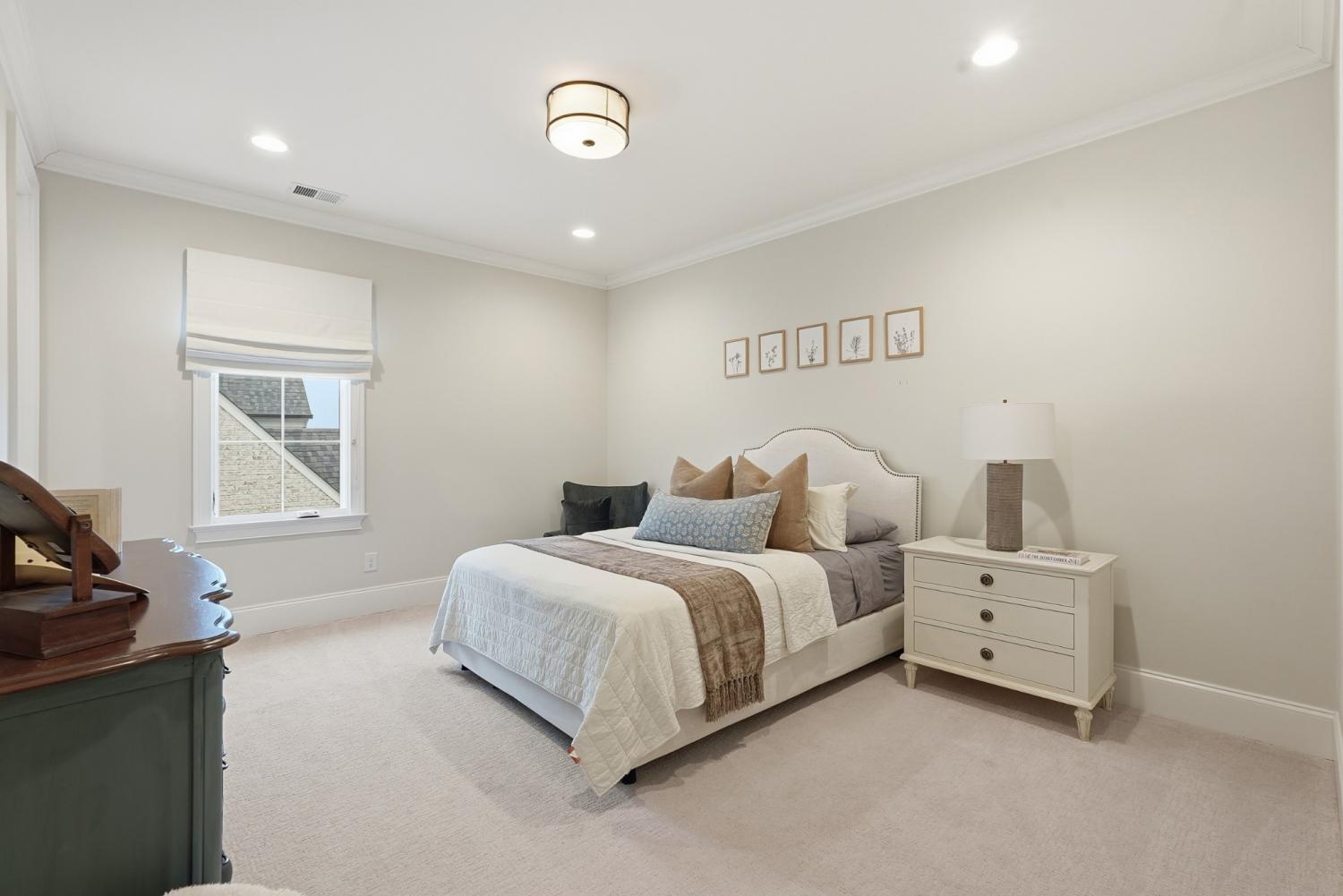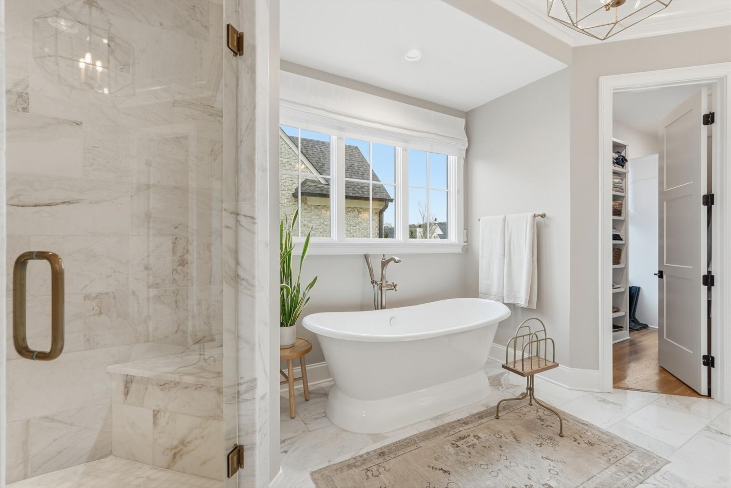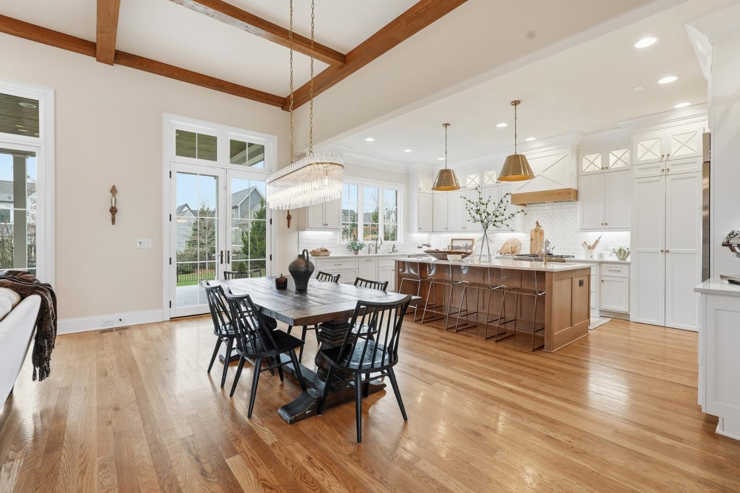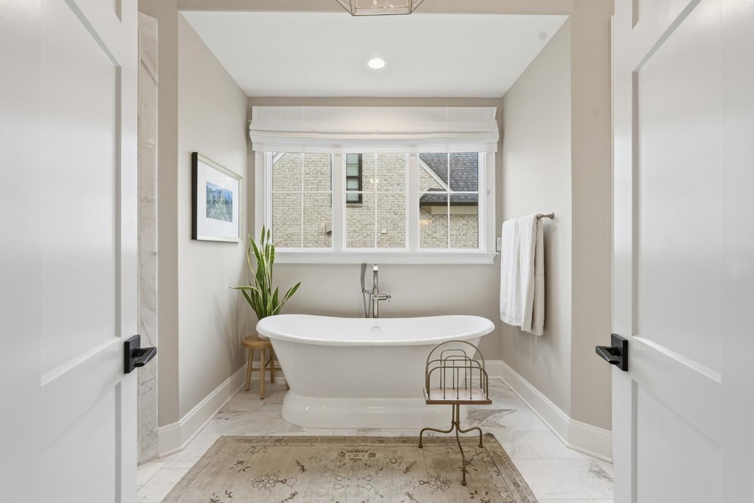 Set within The Grove, one of College Grove’s premier private gated club communities, this timeless brick abode was built in 2021 by Ford Classic Homes and blends refined design with exceptional livability. The home offers 4,945 square feet with 5 bedrooms and 5.5 baths, thoughtfully designed for both everyday living and entertaining. The main level features high ceilings, abundant natural light, and hardwood floors throughout. The living room is anchored by a wood-burning fireplace with custom built-ins and exposed beam ceilings, creating a warm and inviting gathering space that flows seamlessly into the dining area and kitchen. The kitchen is beautifully appointed with generous counter space, custom cabinetry, double ovens, a hidden walk-in pantry, and a dedicated coffee bar. The primary suite on the main level offers a peaceful retreat with vaulted ceilings, a spa-inspired bath with a soaking tub, separate vanities, and two walk-in closets. A private office and a guest suite on the main level provide flexibility for work-from-home living or hosting guests. The second level features three ensuite bedrooms and a spacious bonus room, offering comfortable accommodations and flexible living space, along with a study nook and generous unfinished storage. Outdoor living is highlighted by a covered back porch with a brick, wood-burning fireplace and wood-plank ceiling, overlooking the flat, fenced backyard, ideal for entertaining or quiet evenings at home. Residents enjoy the private club lifestyle at The Grove, featuring a Greg Norman Signature Golf Course, The Manor House dining, resort-style pools, tennis and pickleball courts, a full-service spa and fitness center, and equestrian amenities. You are also a short walking distance from the beloved Gathering Place at the Bridge Bar, Here, members can enjoy casual dining with sandwiches, pizzas and salads served on classic enamel dishes. And, no soda shop menu would be complete without ice cream floats!