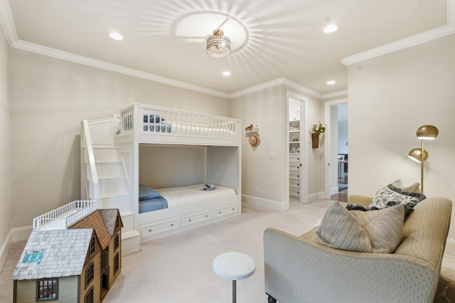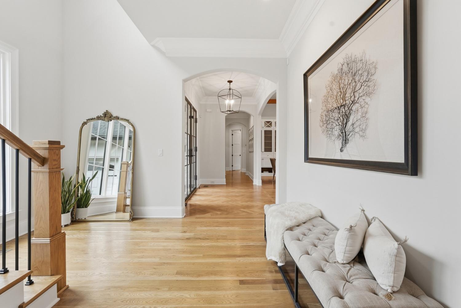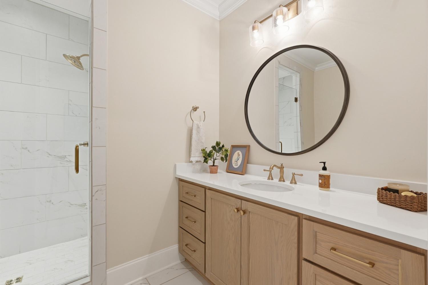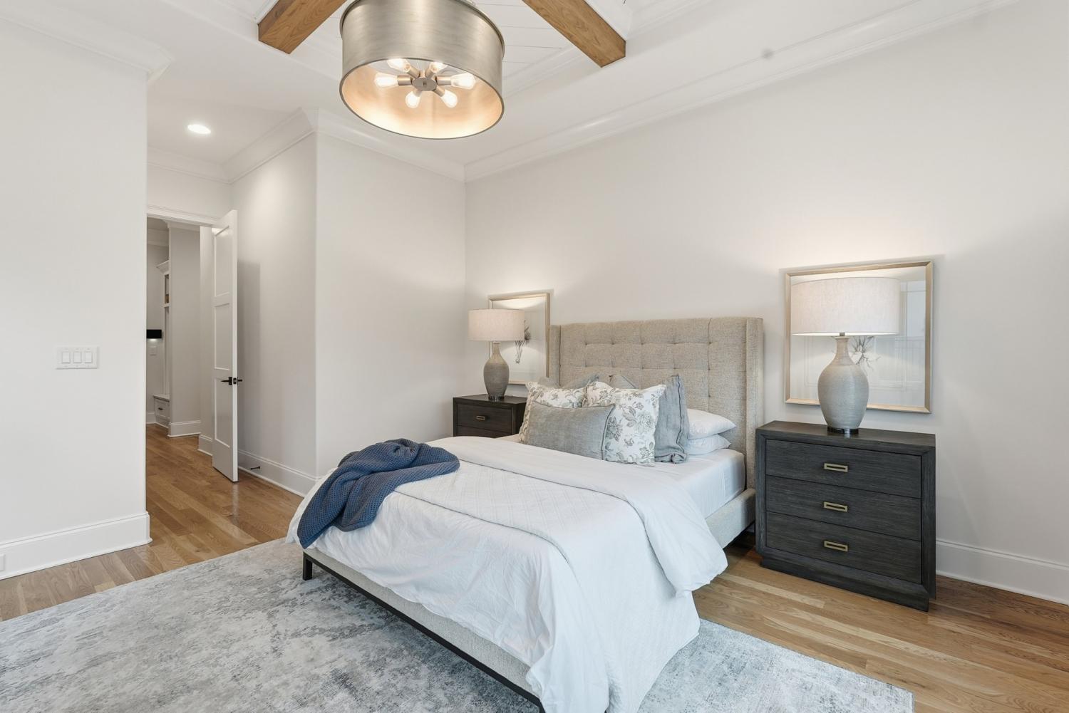 Set within The Grove, one of College Grove’s premier private gated club communities, this timeless brick abode was built in 2021 by Ford Classic Homes and blends refined design with exceptional livability. The home offers 4,945 square feet with 5 bedrooms and 5.5 baths, thoughtfully designed for both everyday living and entertaining. The main level features high ceilings, abundant natural light, and hardwood floors throughout. The living room is anchored by a wood-burning fireplace with custom built-ins and exposed beam ceilings, creating a warm and inviting gathering space that flows seamlessly into the dining area and kitchen. The kitchen is beautifully appointed with generous counter space, custom cabinetry, double ovens, a hidden walk-in pantry, and a dedicated coffee bar. The primary suite on the main level offers a peaceful retreat with vaulted ceilings, a spa-inspired bath with a soaking tub, separate vanities, and two walk-in closets. A private office and a guest suite on the main level provide flexibility for work-from-home living or hosting guests. The second level features three ensuite bedrooms and a spacious bonus room, offering comfortable accommodations and flexible living space, along with a study nook and generous unfinished storage. Outdoor living is highlighted by a covered back porch with a brick, wood-burning fireplace and wood-plank ceiling, overlooking the flat, fenced backyard, ideal for entertaining or quiet evenings at home. Residents enjoy the private club lifestyle at The Grove, featuring a Greg Norman Signature Golf Course, The Manor House dining, resort-style pools, tennis and pickleball courts, a full-service spa and fitness center, and equestrian amenities. You are also a short walking distance from the beloved Gathering Place at the Bridge Bar, Here, members can enjoy casual dining with sandwiches, pizzas and salads served on classic enamel dishes. And, no soda shop menu would be complete without ice cream floats!