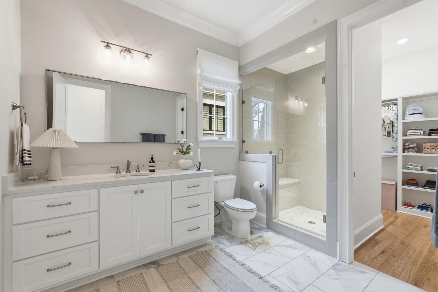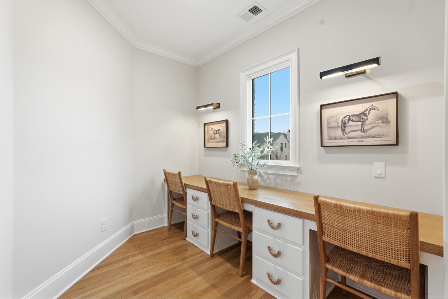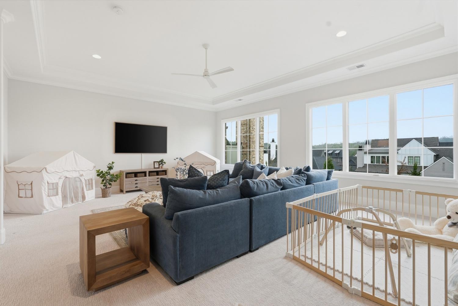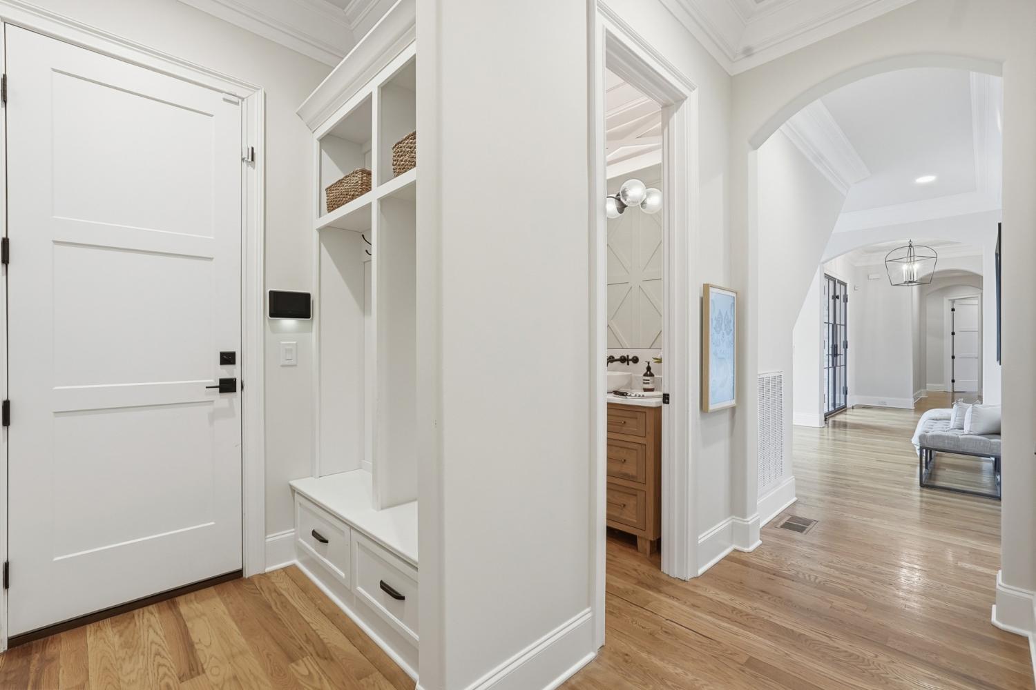 Set within The Grove, one of College Grove’s premier private gated club communities, this timeless brick abode was built in 2021 by Ford Classic Homes and blends refined design with exceptional livability. The home offers 4,945 square feet with 5 bedrooms and 5.5 baths, thoughtfully designed for both everyday living and entertaining. The main level features high ceilings, abundant natural light, and hardwood floors throughout. The living room is anchored by a wood-burning fireplace with custom built-ins and exposed beam ceilings, creating a warm and inviting gathering space that flows seamlessly into the dining area and kitchen. The kitchen is beautifully appointed with generous counter space, custom cabinetry, double ovens, a hidden walk-in pantry, and a dedicated coffee bar. The primary suite on the main level offers a peaceful retreat with vaulted ceilings, a spa-inspired bath with a soaking tub, separate vanities, and two walk-in closets. A private office and a guest suite on the main level provide flexibility for work-from-home living or hosting guests. The second level features three ensuite bedrooms and a spacious bonus room, offering comfortable accommodations and flexible living space, along with a study nook and generous unfinished storage. Outdoor living is highlighted by a covered back porch with a brick, wood-burning fireplace and wood-plank ceiling, overlooking the flat, fenced backyard, ideal for entertaining or quiet evenings at home. Residents enjoy the private club lifestyle at The Grove, featuring a Greg Norman Signature Golf Course, The Manor House dining, resort-style pools, tennis and pickleball courts, a full-service spa and fitness center, and equestrian amenities. You are also a short walking distance from the beloved Gathering Place at the Bridge Bar, Here, members can enjoy casual dining with sandwiches, pizzas and salads served on classic enamel dishes. And, no soda shop menu would be complete without ice cream floats!