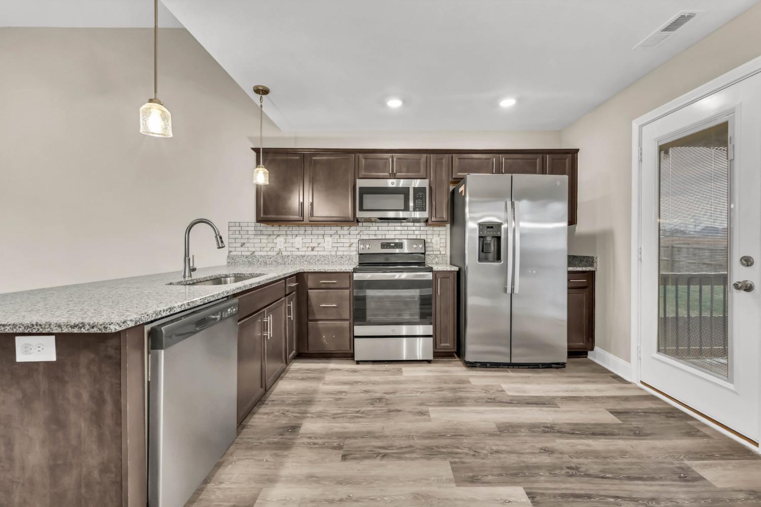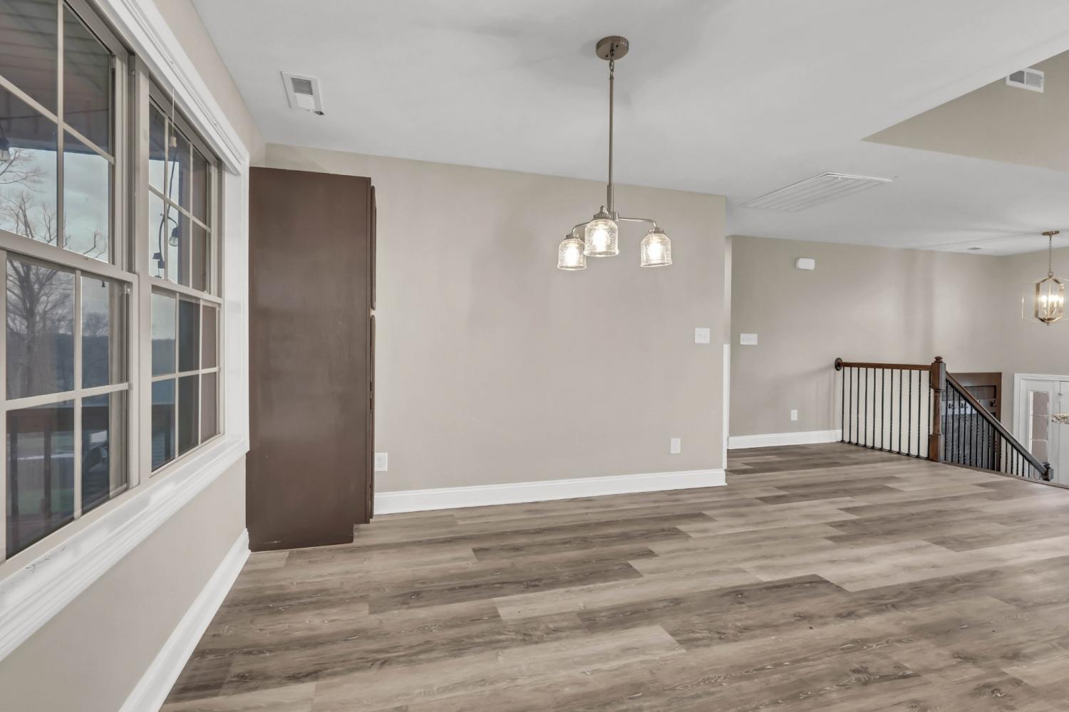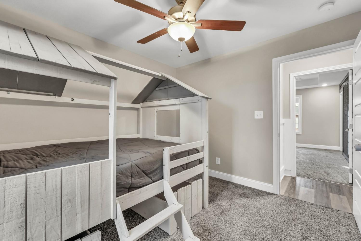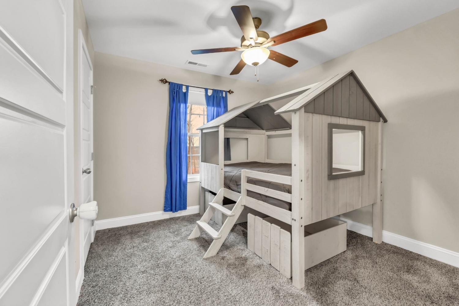 Beautiful home in the desirable Cardinal Creek neighborhood of Clarksville! This 4-bedroom, 3-bath home features a bonus room and a fully finished basement, including a downstairs ensuite—perfect for guests or multi-generational living. Enjoy an open-concept layout with granite countertops, an added kitchen backsplash, added cabinetry in the kitchen and bathrooms, tray ceilings, LVP flooring, custom blinds throughout, updated doors, and shiplap accents. Outdoor highlights include a screened-in upper patio, a freshly painted fenced yard, an added concrete parking pad, plus a storage building and wooden playset that convey. Move-in ready with thoughtful upgrades throughout!