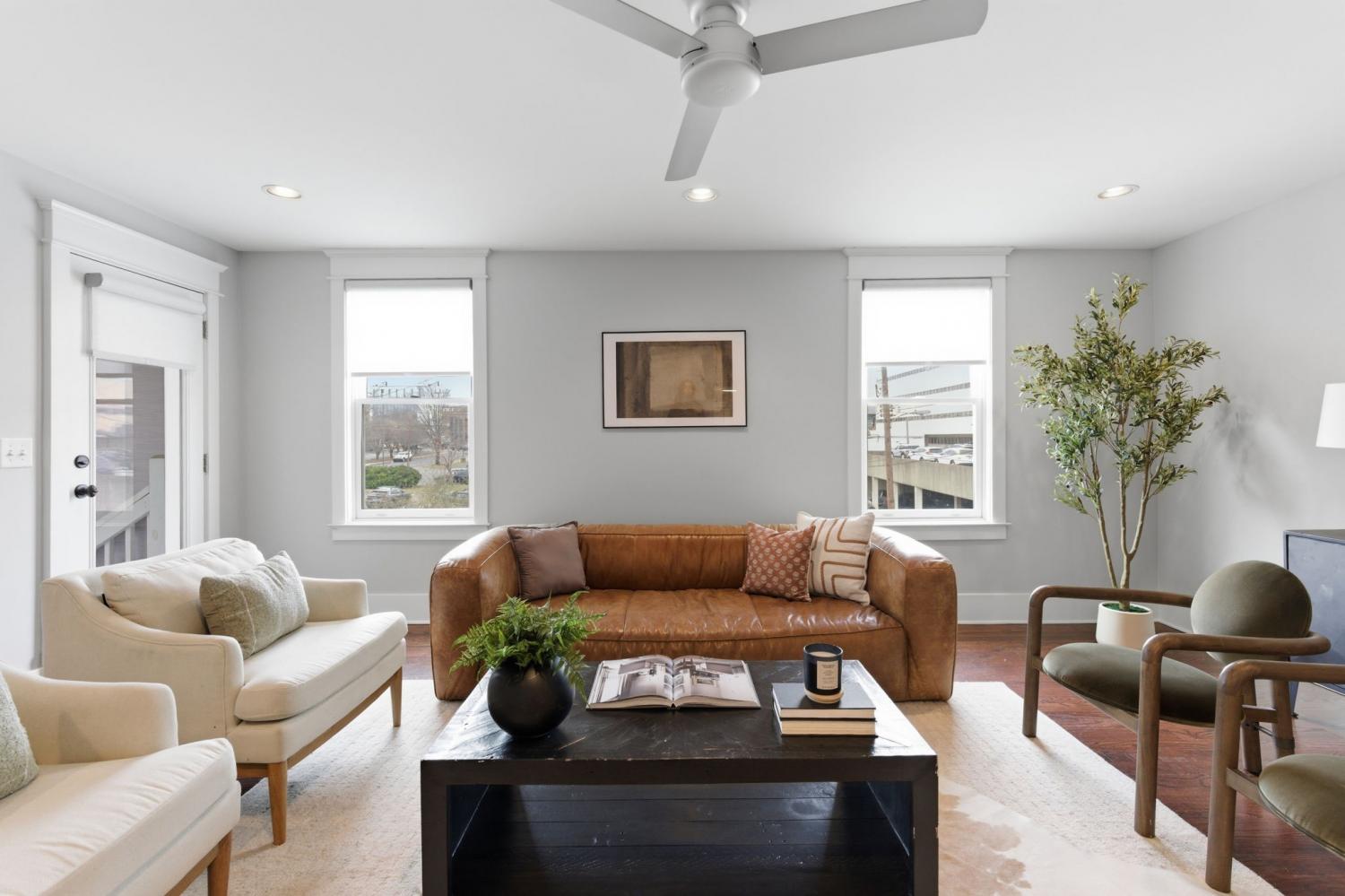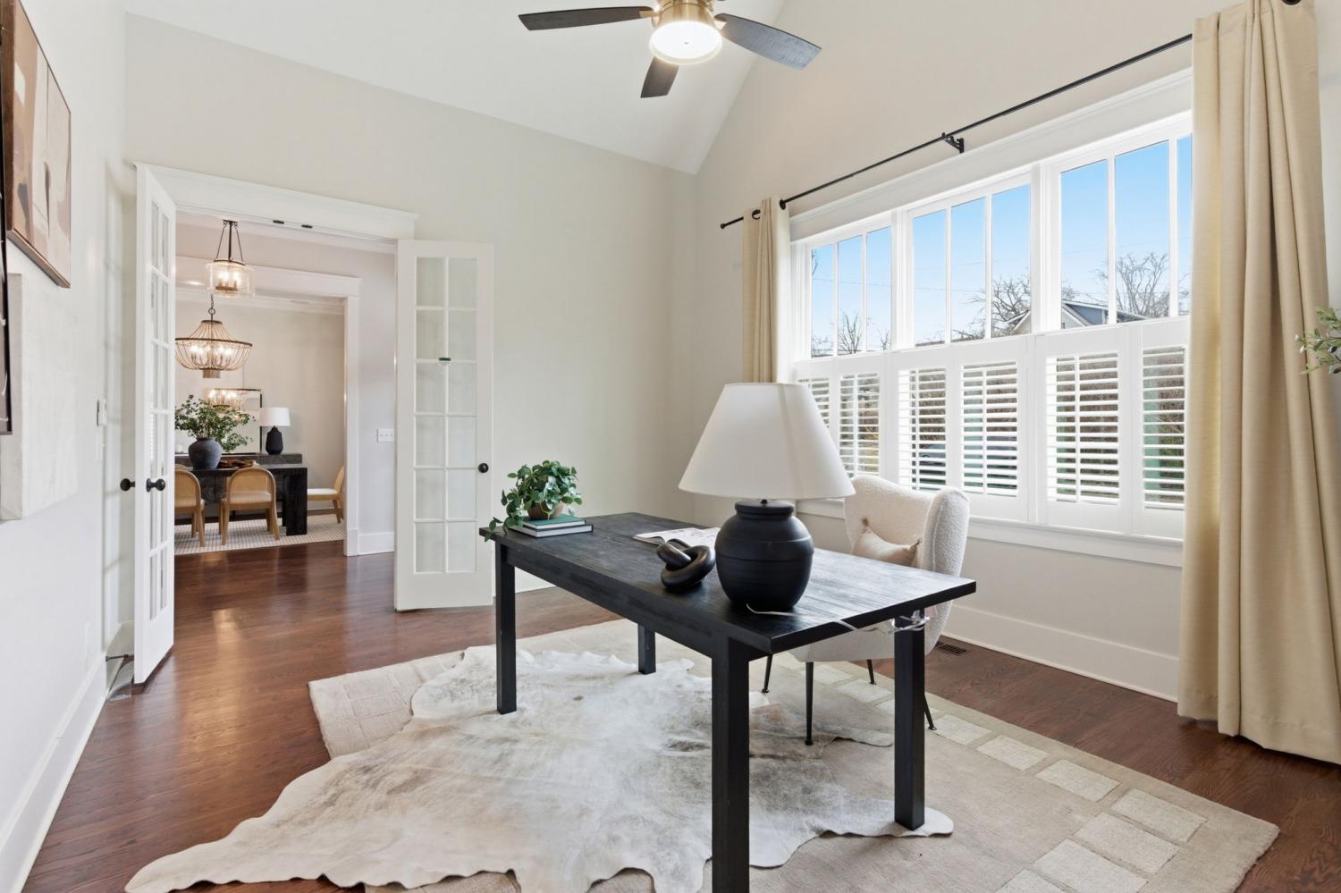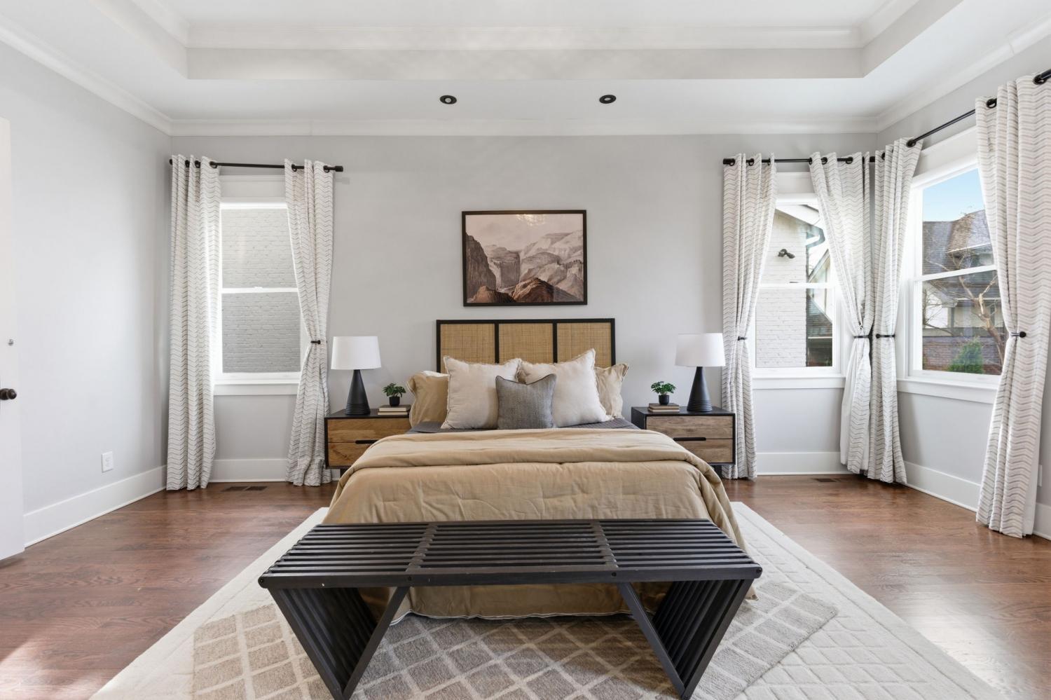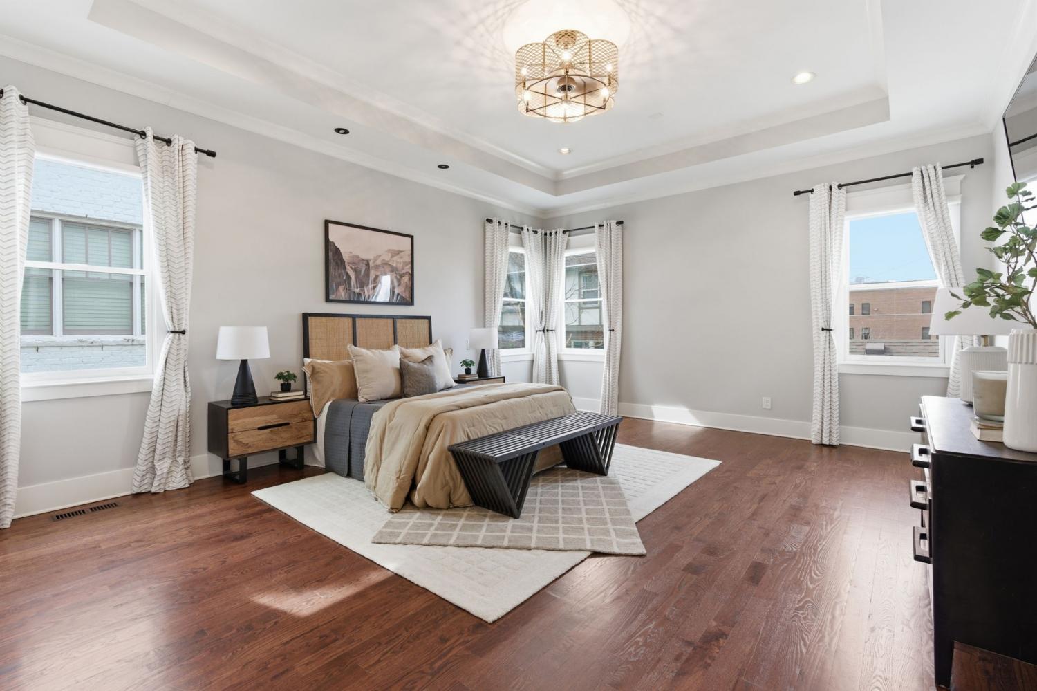 Welcome to Belmont-Hillsboro, one of Nashville's premier urban neighborhoods, where you can walk to Vanderbilt, Belmont and 12S from this gorgeous and spacious home with enough space to live, work, and play. The luxurious living room's vaulted ceiling extends to the screened in back deck and flood the open concept kitchen and living room with natural light. Cozy fireplaces in the living room and back deck. Primary bedroom suite and a full guest suite on the main floor. Thoughtfully designed main floor 5th bedroom offers a full suite enabling flex space for a second home office/playroom etc. Upstairs you'll find two large bedrooms with shared full bathroom and a media room perfect for entertaining with built in Jamo speakers and projection screen.