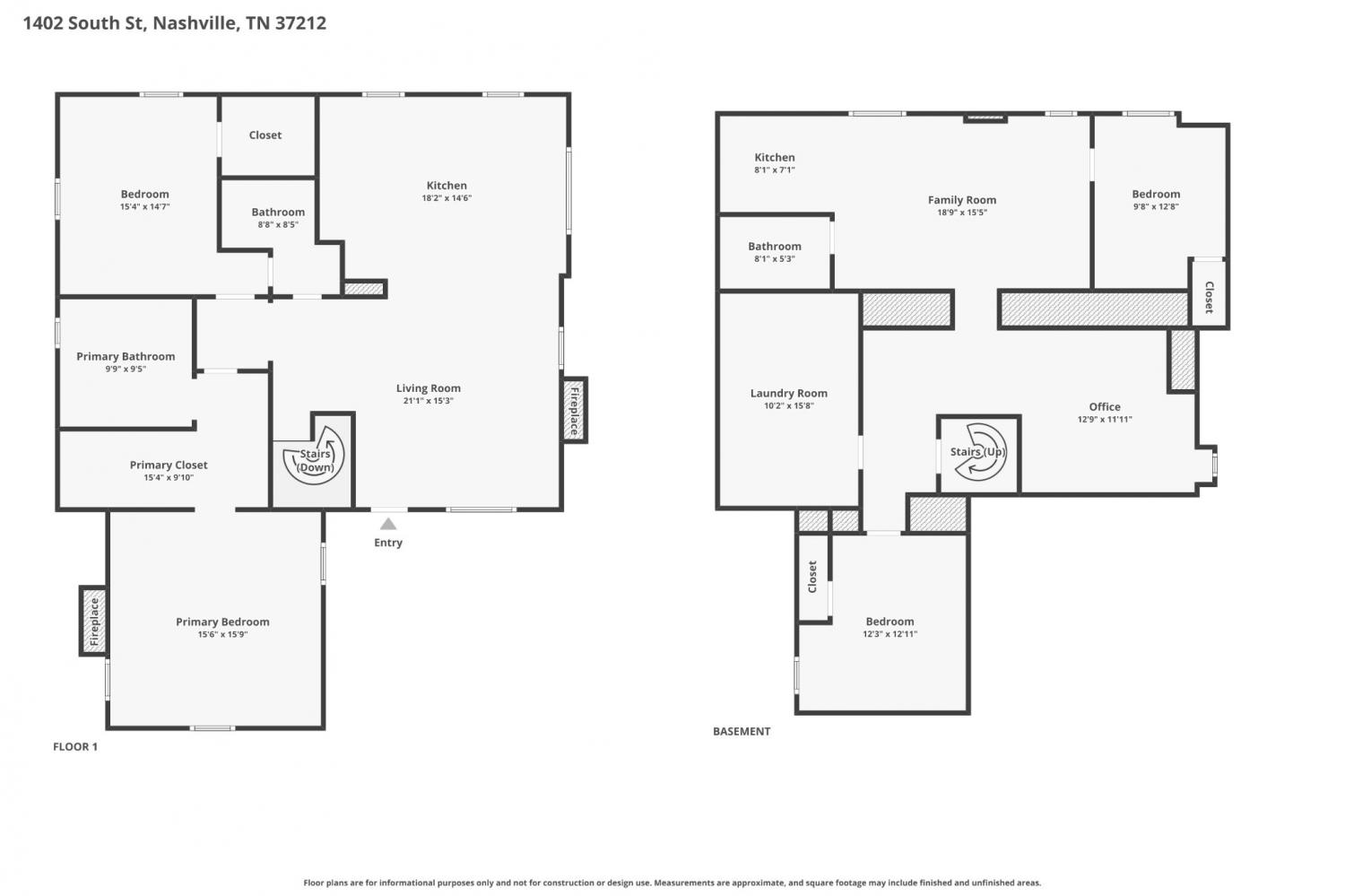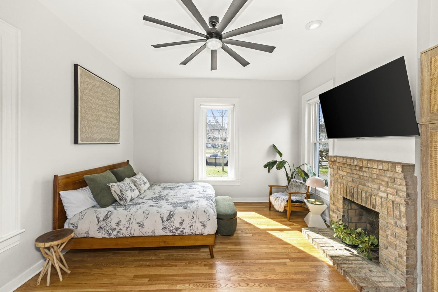 Walk to The Gulch, Downtown, Music Row & Edgehill! Fully renovated Victorian in the heart of Music Row offering timeless character, modern design, and stunning downtown Nashville views. Hardwood and tile floors throughout, updated kitchens, custom primary closets, and fireplaces in both the living room and primary bedroom add warmth and style. Zoned duplex with kitchens on both levels and a separate rear entrance, providing exceptional flexibility for owner-occupants, investors, or multigenerational living. Main level features 2 bedrooms and 2 baths; lower level offers 2 bedrooms and 1 bath. Unbeatable walkability — approximately 9 minutes to The Gulch’s dining and nightlife, with 12 South, Edgehill Village, and downtown just moments away.