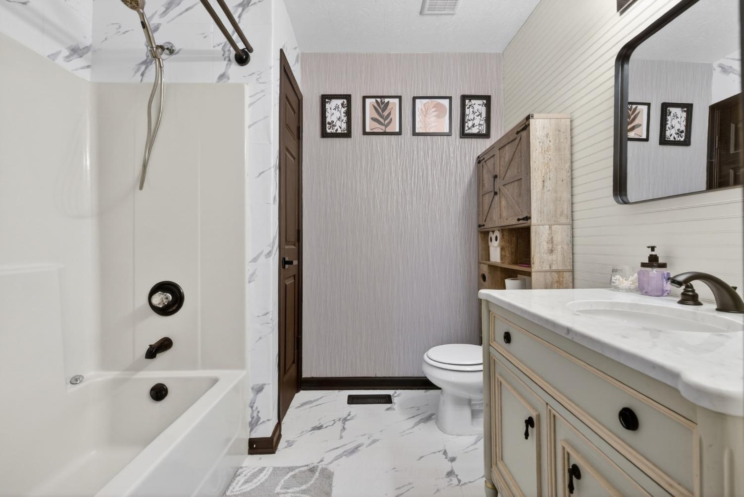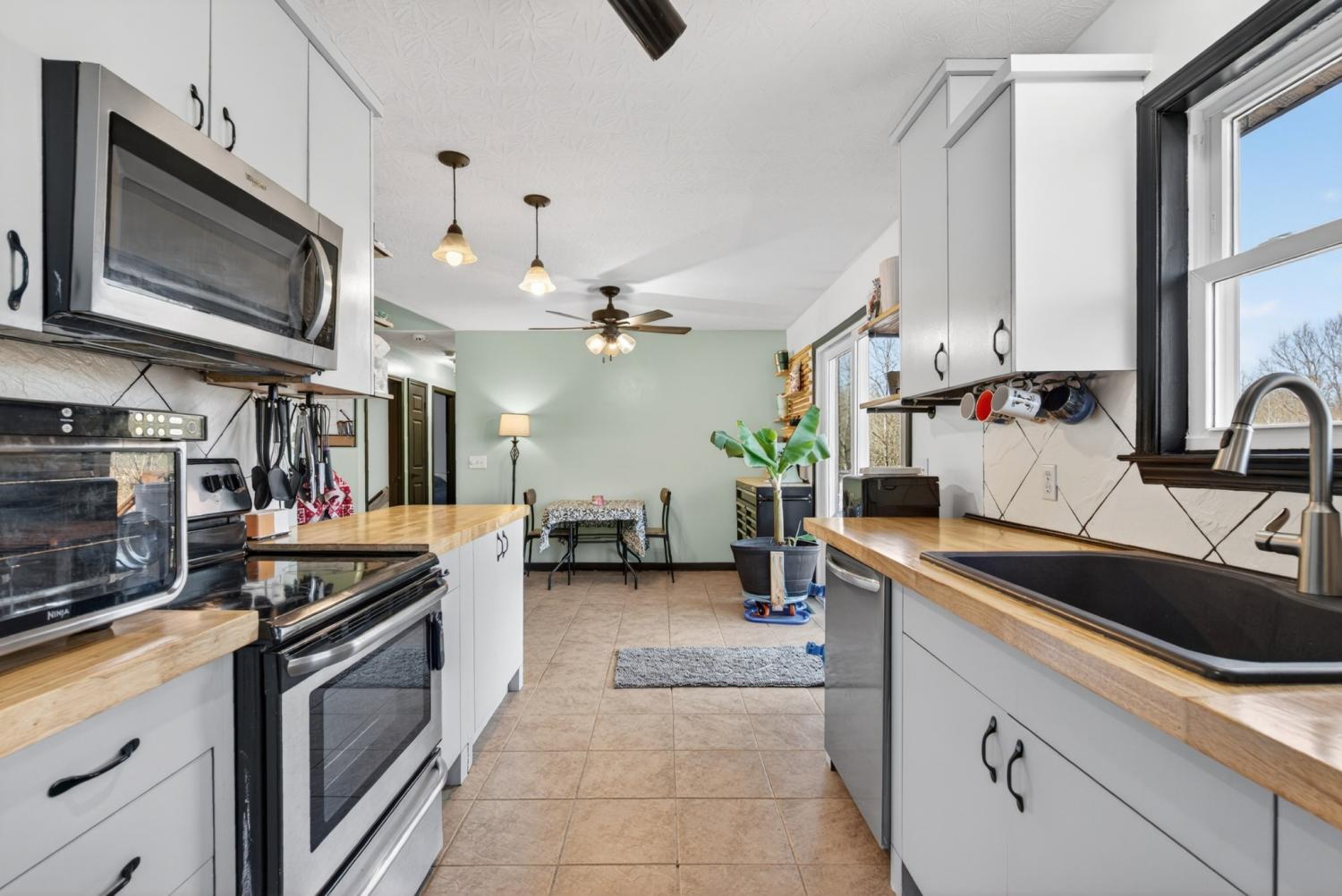 All-brick 3 bedroom, 2 bath home situated on 2.99 private acres at the end of a cul-de-sac in Ashland City. This well-maintained property offers space, updates, and functionality both inside and out. The home features a mostly finished full basement complete with a workshop and two separate doors leading to the backyard. The main-level deck includes steps down to a large fenced portion of the yard, providing excellent space for pets, play, or entertaining. Inside, the kitchen has updated countertops and all stainless steel appliances, with the refrigerator remaining. The washer and dryer will also remain and has a brand new dishwasher. The pool table in the basement conveys with the property. Recent improvements include all new windows, new sliding glass doors, new HVAC system, new attic insulation, new flooring in the bedrooms (no carpet), and a new vanity in the primary bathroom. The home also includes a sprinkler system for added convenience. If you’re looking for acreage, privacy, and a move-in ready home with major upgrades already completed, this property delivers both comfort and flexibility.