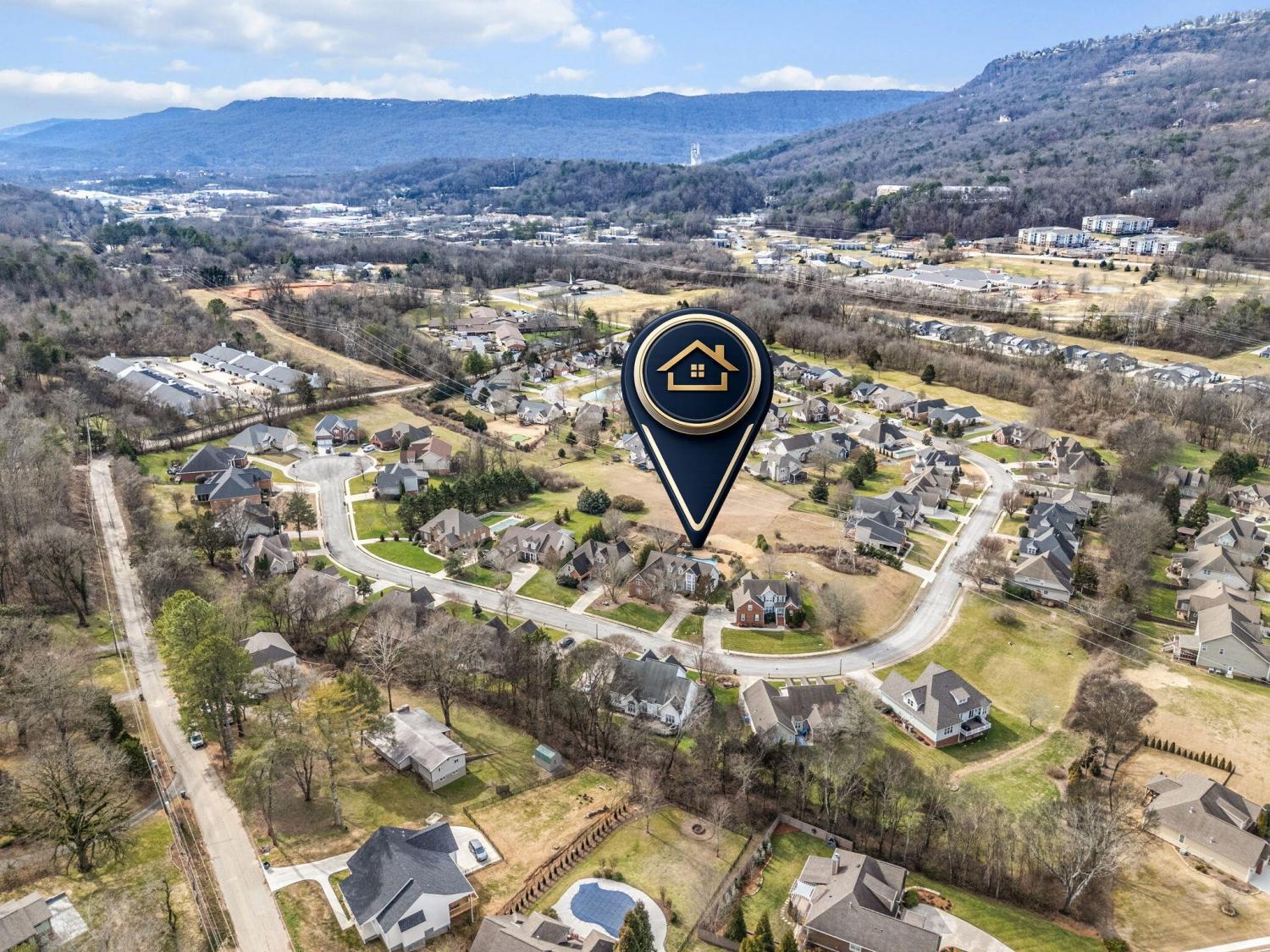 From downtown Chattanooga take Hwy 27N to the Signal Mountain Road/Hwy 127N exit. Continue north on Signal Mountain Road/Hwy 127N. Turn right on Mountain Creek Road. At the second roundabout, turn right on N Runyan Drive. Take a left onto Horse Creek Drive and follow around to the top of the hill. Your new home is on the right.