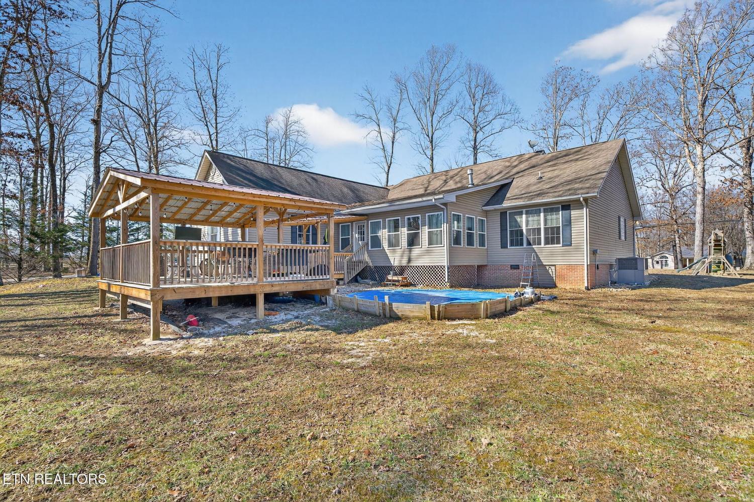 Spacious, 2,732sf Home on .84 Acre - Minutes to Town, NO HOA! Take a look at this inviting home offering 2732sf of living space, all main-level living, a popular split floor plan, and outdoor areas you can enjoy year-round-just minutes to town! • 3 bedrooms + bonus room with closet (great for an office, playroom, or flex space) • Split floor plan with 2.5 baths • .84 acre lot - only 10 minutes to town • Recent improvements include a finished sunroom and a great covered deck area • Natural gas HVAC and water heater • No HOA INSIDE FEATURES: • Living room: hardwood floors, vaulted ceiling, and a gas log fireplace • French doors with a transom window from the living room to the sunroom • Kitchen: maple cabinets, solid surface countertops, tile flooring, desk area, and a pantry • Stainless appliances: new smoothtop range, OTR microwave, and dishwasher • Bar seating plus a formal dining room with trey ceiling • Primary suite: spacious with a trey ceiling + ceiling fan, walk-in closet, and bath featuring a walk-in shower, jetted tub, and double-sink vanity • Two bedrooms: wainscoting accent walls, ceiling fans, and closets • Bonus room: trey ceiling, ceiling fan, and closet • Sunroom: LVP flooring • Laundry room: cabinet storage, tile flooring, laundry sink, and a half bath OUTDOOR FEATURES: • Covered front porch • Covered rear deck with metal roof • Swing set, storage shed, and raised garden beds • Irrigation system, asphalt driveway, and gutter guards • 2-car garage with a newer opener • Walking distance to Dollar General 📞 Call today to schedule your showing and see the space this home has to offer! *Buyer to verify all information and measurements before making an informed offer*