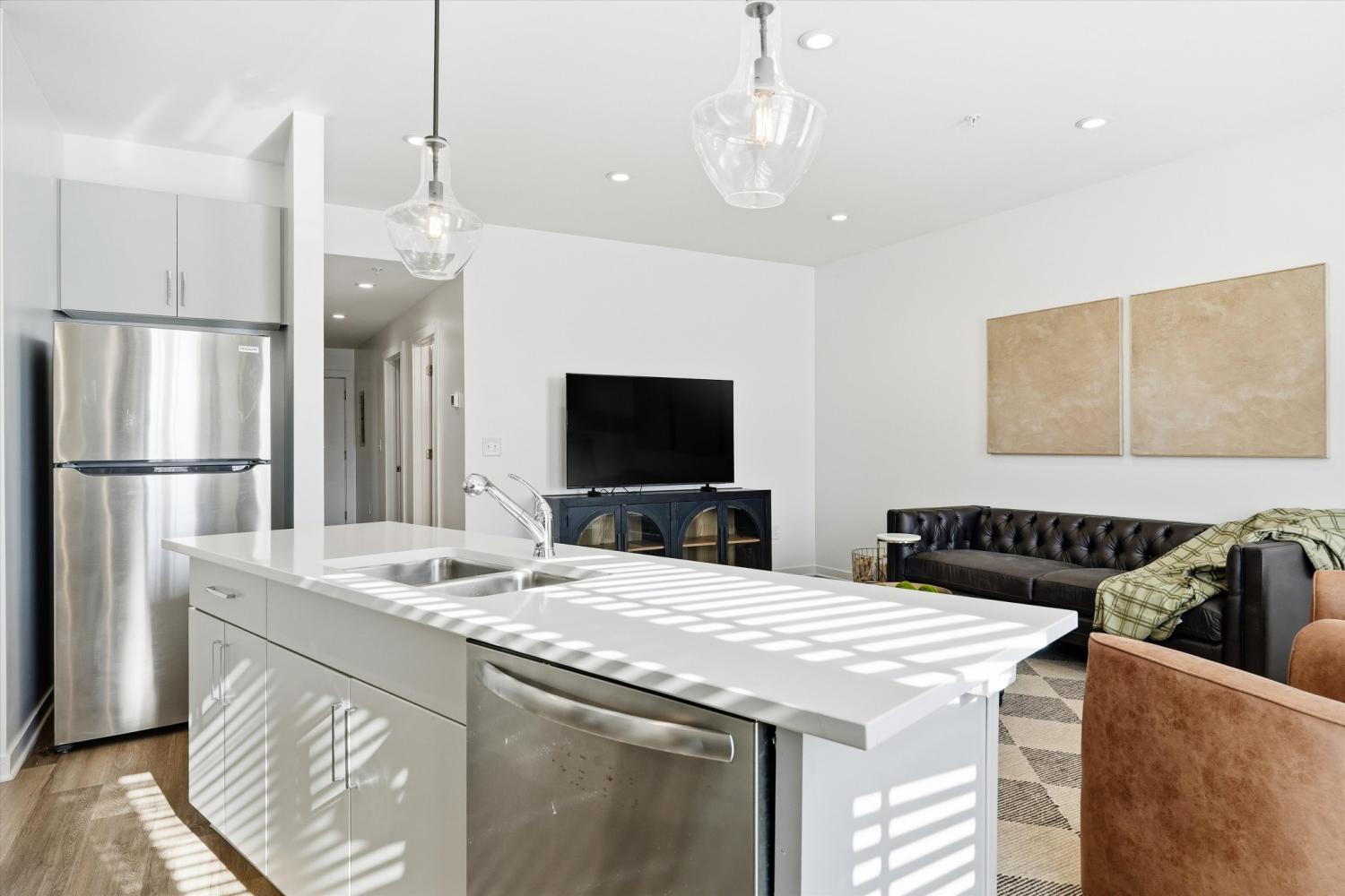 INVESTORS WELCOME! Rare 2 bed/2 bath condo! This specific unit is eligible for long-term rental and Non-Owner Occupied (Airbnb) Short-term Rental Permit. Grocery and Gym coming March 2026 on floor 1! Modern with industrial vibes luxury condo in a multiuse 4-story building with elevator access. Crave is located within 2 miles of Broadway/Downtown, Whole Foods, Various Dining & Shopping, and Centennial Park! Commercial space on the first-floor houses Burn Bootcamp and More stores/restaurants to come! Walk to Retrograde Coffee and A-Roi Sushi and Thai! Spacious and open concept is perfect for entertaining! Amenities include Elevator, HOA Property Manager, 24 Hour Access, Trash Service, community rooftop with amazing views of downtown! Fully furnished for $15k more!