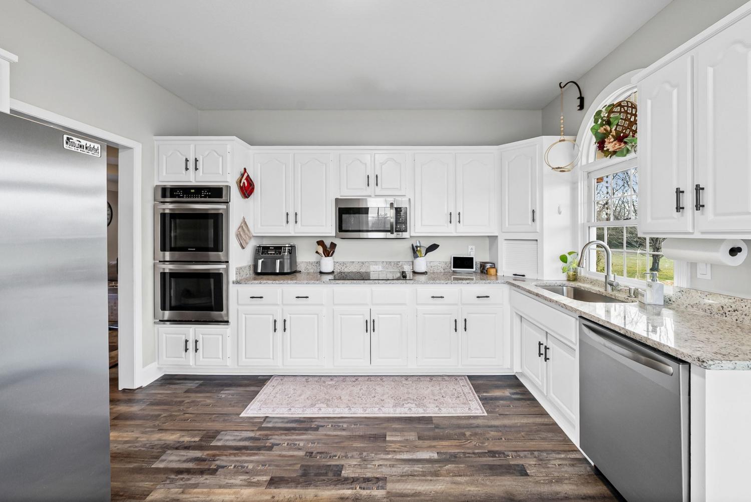 Space. Land. Privacy. 2175 Jim Taylor Rd delivers all of it. Perfectly placed on 5.45 usable acres backing up to farmland, this updated brick home offers the quiet rural lifestyle you’ve been craving. Over 3,000 square feet of finished living space, oversized 2-car garage, PLUS an unfinished basement giving you room to grow, create, or store it all! From the moment you pull in, the size and setting make an impression. A huge covered front porch welcomes you in. Inside, natural light fills a spacious, functional layout. The split-bedroom floor plan keeps things practical, with the primary suite on the main level featuring two walk-in closets and a private bath. Modern farmhouse style shines through with high-contrast, warm finishes and updated details throughout. Major systems have been thoughtfully maintained, including a roof approximately 6 years old, HVAC units less than 3 years old, and two recently replaced water heaters offering added confidence and peace of mind. With 5 bedrooms, 3 full baths, and a loft, there is truly room for everyone. A hidden door leads to a private office space a fun and functional surprise that adds both character and flexibility. Out back, the covered deck offers incredible sunset views overlooking farmland, creating the perfect place to unwind. The heated saltwater pool is ready for long summer days, while the open acreage provides room to roam, play, and grow....peaceful and private. If you’ve been searching for space and a setting that feels like home the moment you arrive this is it. Come see the rest for yourself today.