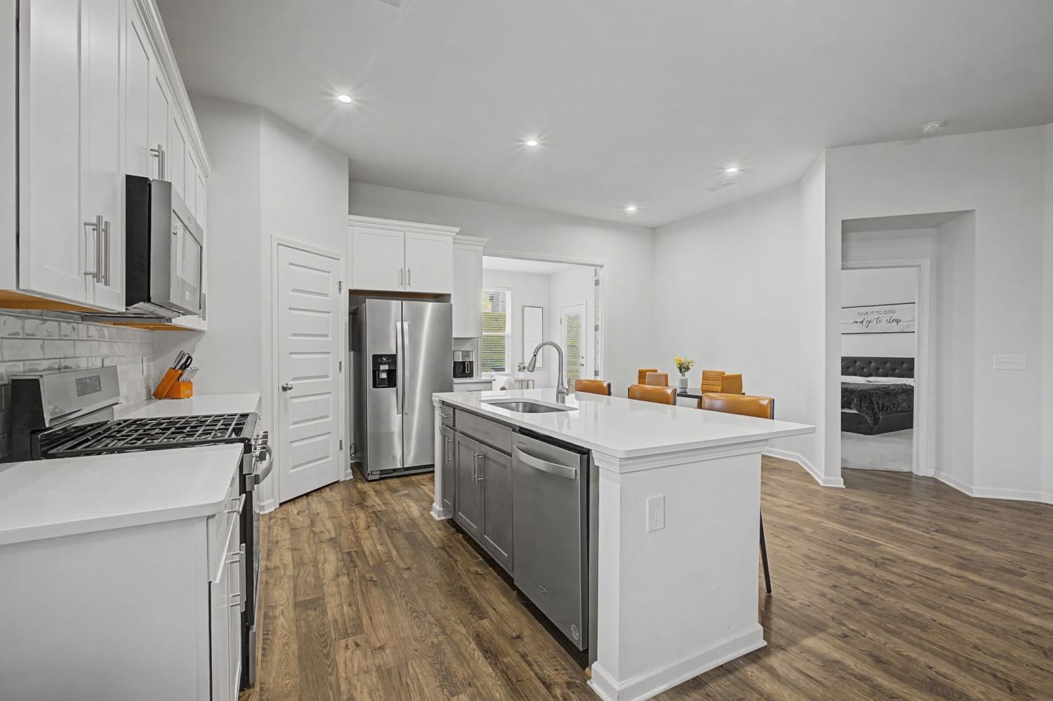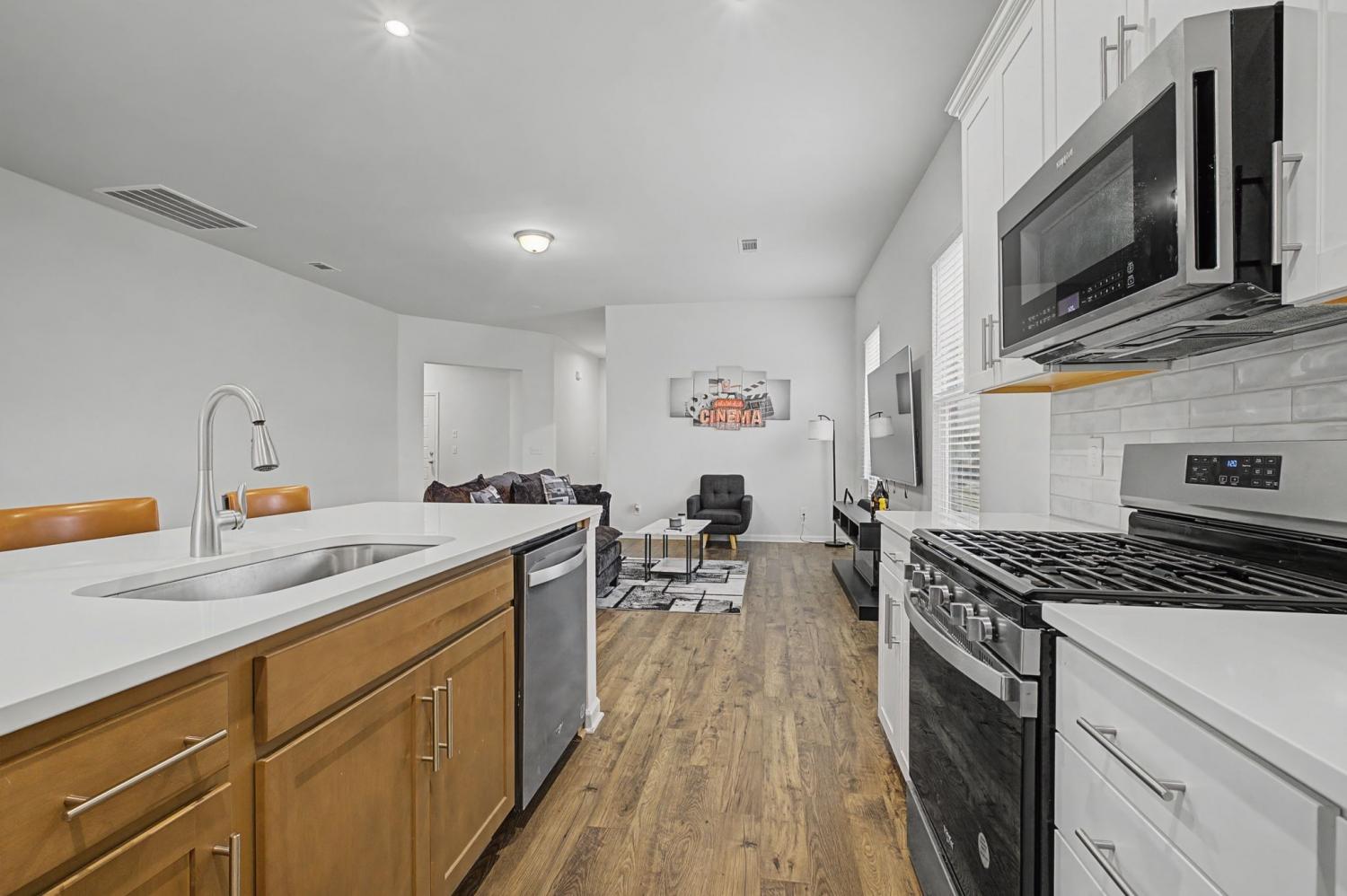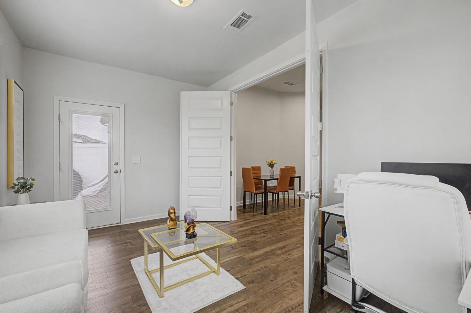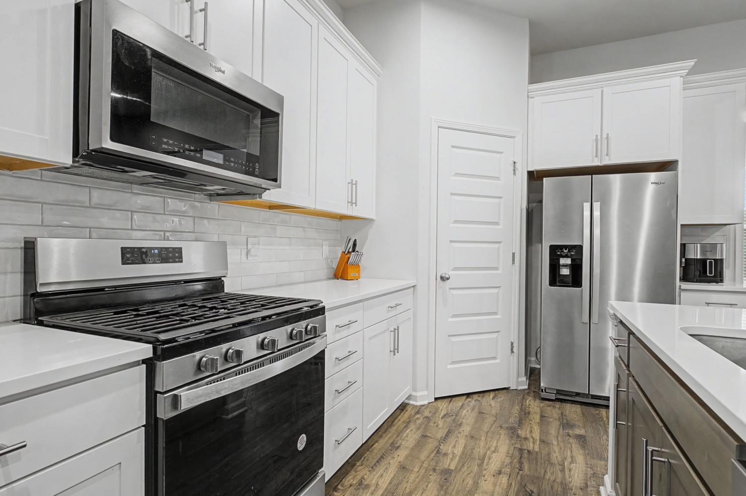 Like new and beautifully maintained duplex tucked away on a quiet cul-de-sac with a large, level lot! This 2-bedroom, 2-bath home shows like new construction and is loaded with upgrades throughout. The designer kitchen features quartz countertops, a large island, subway tile backsplash, stainless steel appliances with a gas range, a walk-in pantry, and soft-close cabinetry. Refrigerator, washer, and dryer all remain, making this home truly move-in ready. Enjoy upgraded luxury plank flooring, soaring 10-foot ceilings, and an extended back patio perfect for relaxing or entertaining. There's a bonus versatile flex room with privacy doors offering endless possibilities; ideal for a home office, exercise room, garden room, or hobby space. The spacious primary suite includes a floating fireplace that will remain and a huge walk-in shower for a spa-like retreat. Low-maintenance living with modern finishes in a prime cul-de-sac location, this one checks all the boxes! In addition this fabulous community features a wide array of amenities, including a clubhouse, pool, state of the art fitness center, walking trails, sidewalks throughout and a neighborhood Farmers Market! HOA fee covers exterior maintenance including mowing, irrigation, and master insurance policy.***Seller welcomes offers from Churchill Mortgage Certified Home Buyers—buyers are pre-underwritten and backed by a lender paid $10,000 Seller Guarantee if financing fails. Call Dan Kraus for more information***