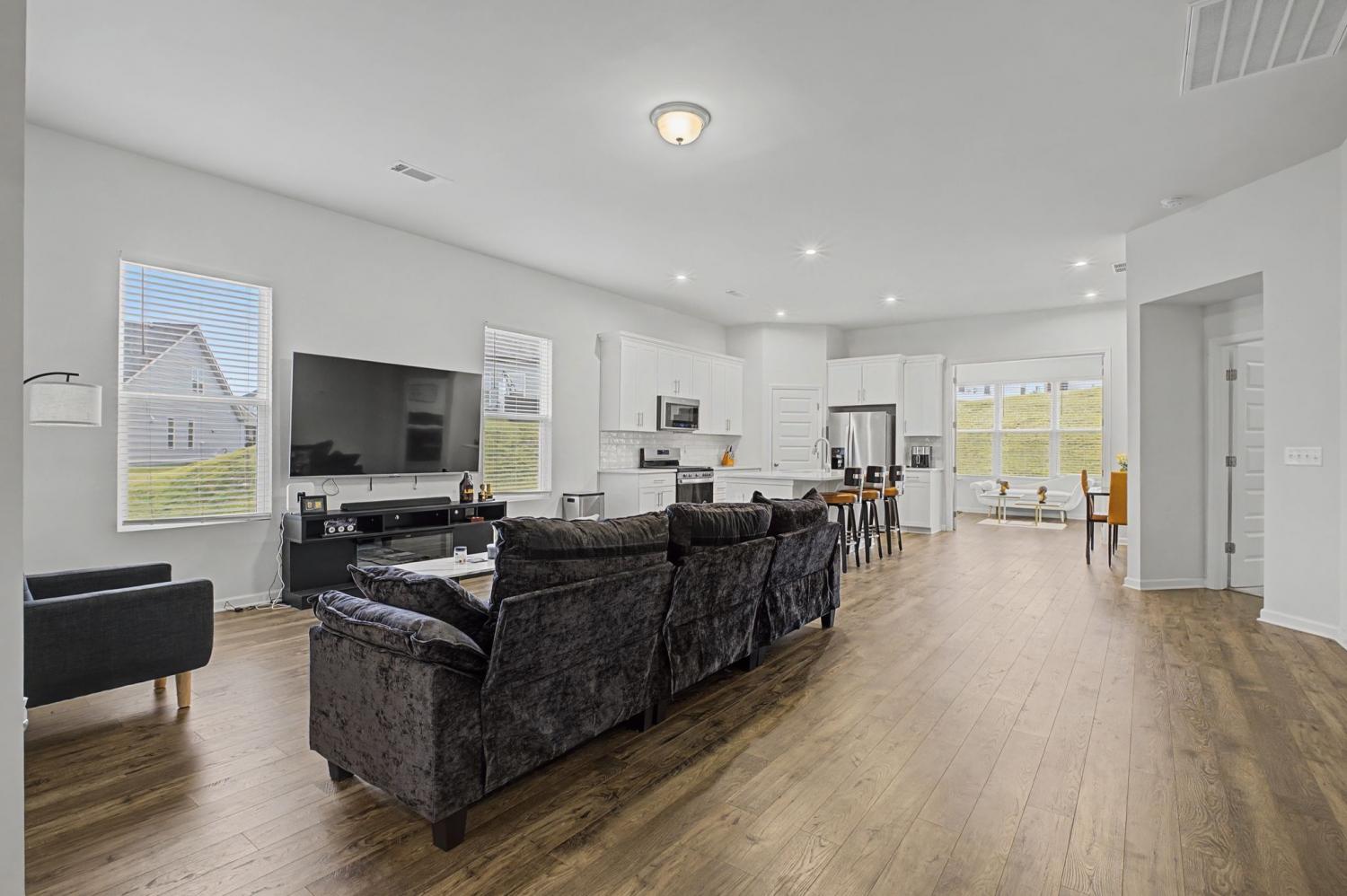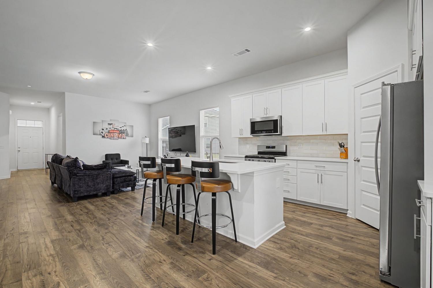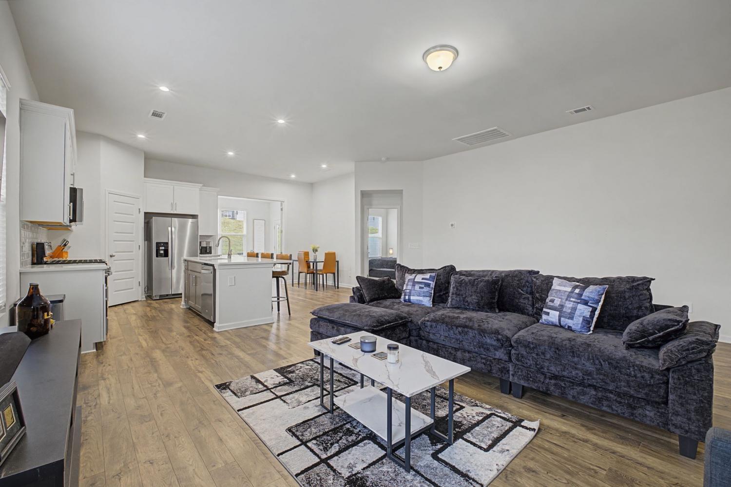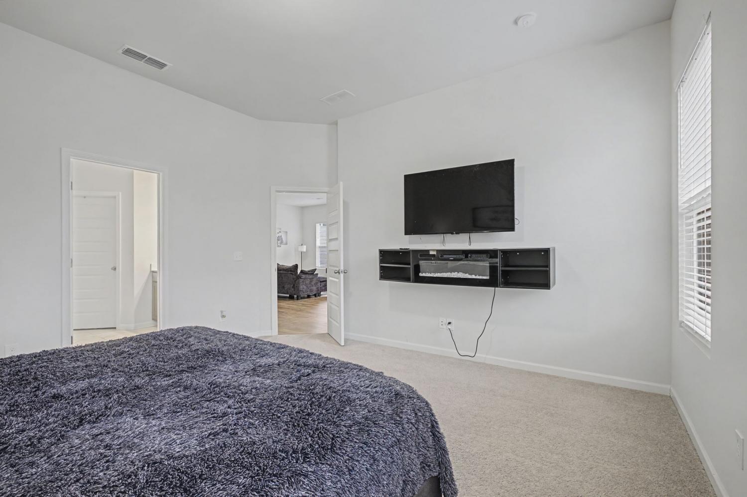 Like new and beautifully maintained duplex tucked away on a quiet cul-de-sac with a large, level lot! This 2-bedroom, 2-bath home shows like new construction and is loaded with upgrades throughout. The designer kitchen features quartz countertops, a large island, subway tile backsplash, stainless steel appliances with a gas range, a walk-in pantry, and soft-close cabinetry. Refrigerator, washer, and dryer all remain, making this home truly move-in ready. Enjoy upgraded luxury plank flooring, soaring 10-foot ceilings, and an extended back patio perfect for relaxing or entertaining. There's a bonus versatile flex room with privacy doors offering endless possibilities; ideal for a home office, exercise room, garden room, or hobby space. The spacious primary suite includes a floating fireplace that will remain and a huge walk-in shower for a spa-like retreat. Low-maintenance living with modern finishes in a prime cul-de-sac location, this one checks all the boxes! In addition this fabulous community features a wide array of amenities, including a clubhouse, pool, state of the art fitness center, walking trails, sidewalks throughout and a neighborhood Farmers Market! HOA fee covers exterior maintenance including mowing, irrigation, and master insurance policy.***Seller welcomes offers from Churchill Mortgage Certified Home Buyers—buyers are pre-underwritten and backed by a lender paid $10,000 Seller Guarantee if financing fails. Call Dan Kraus for more information***
