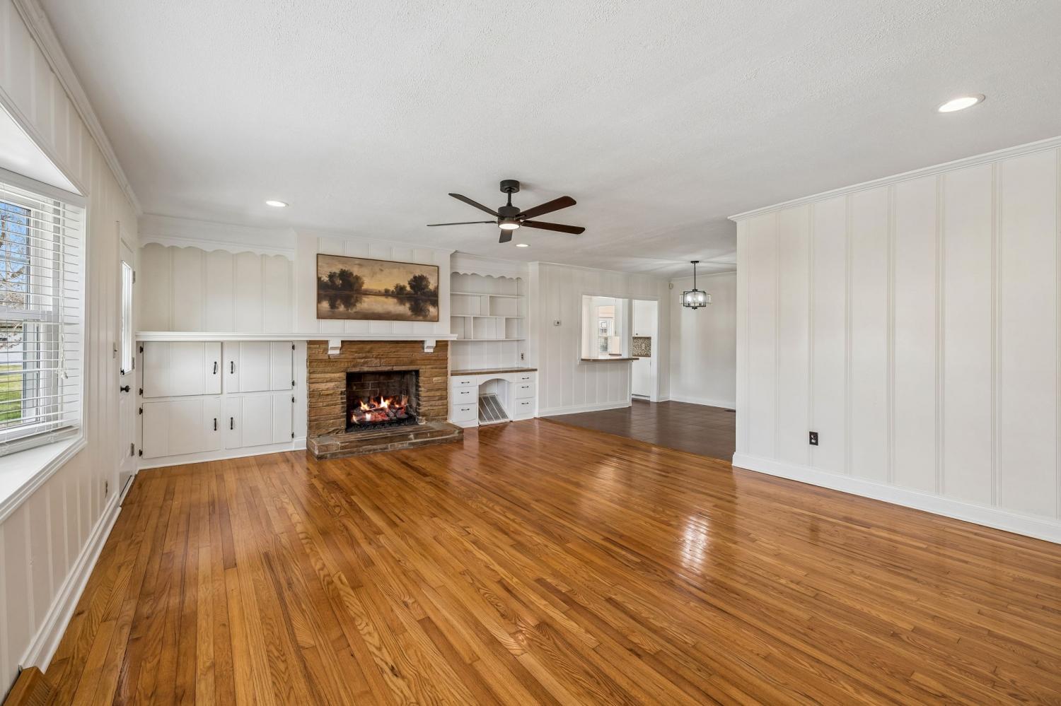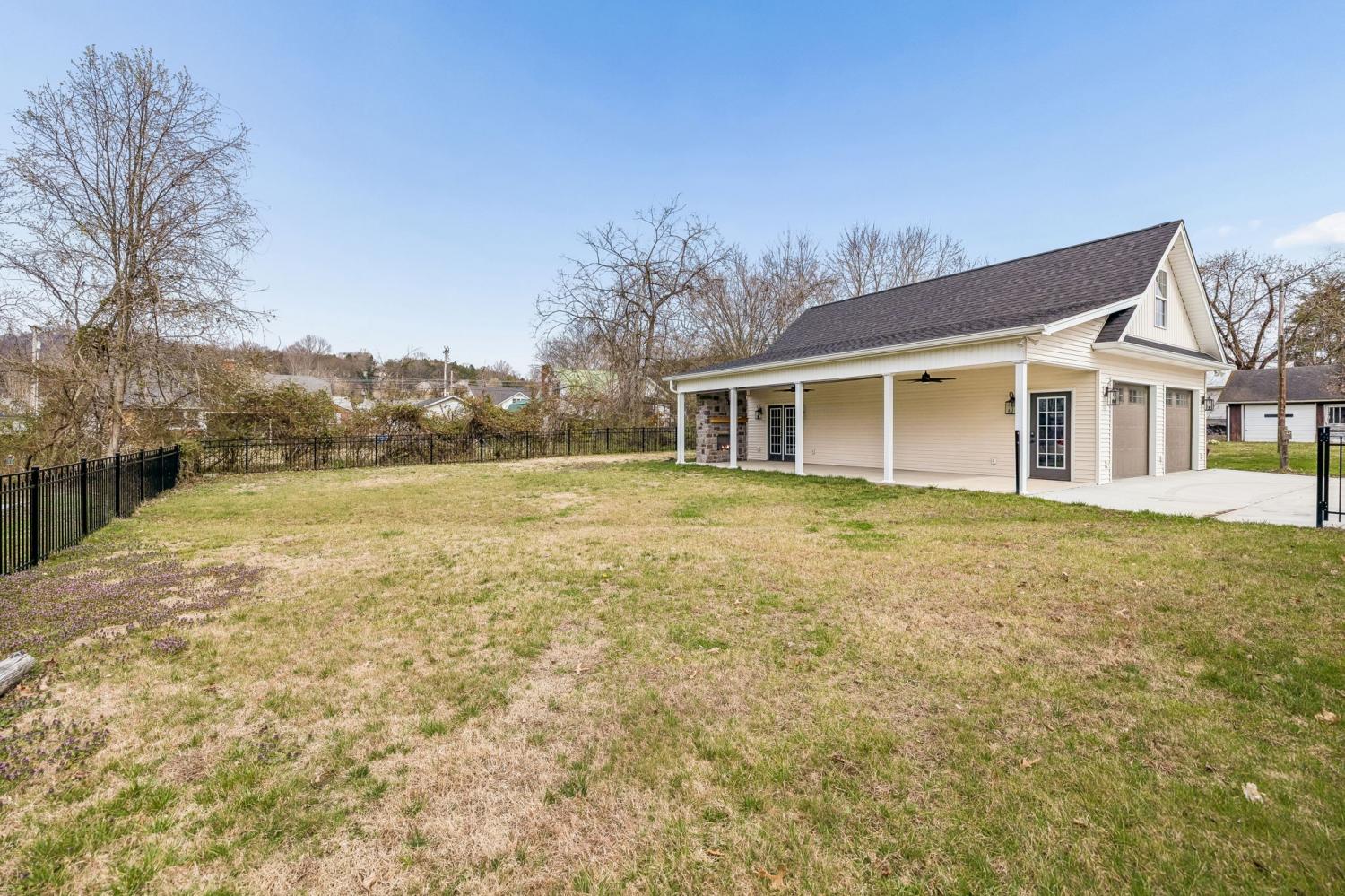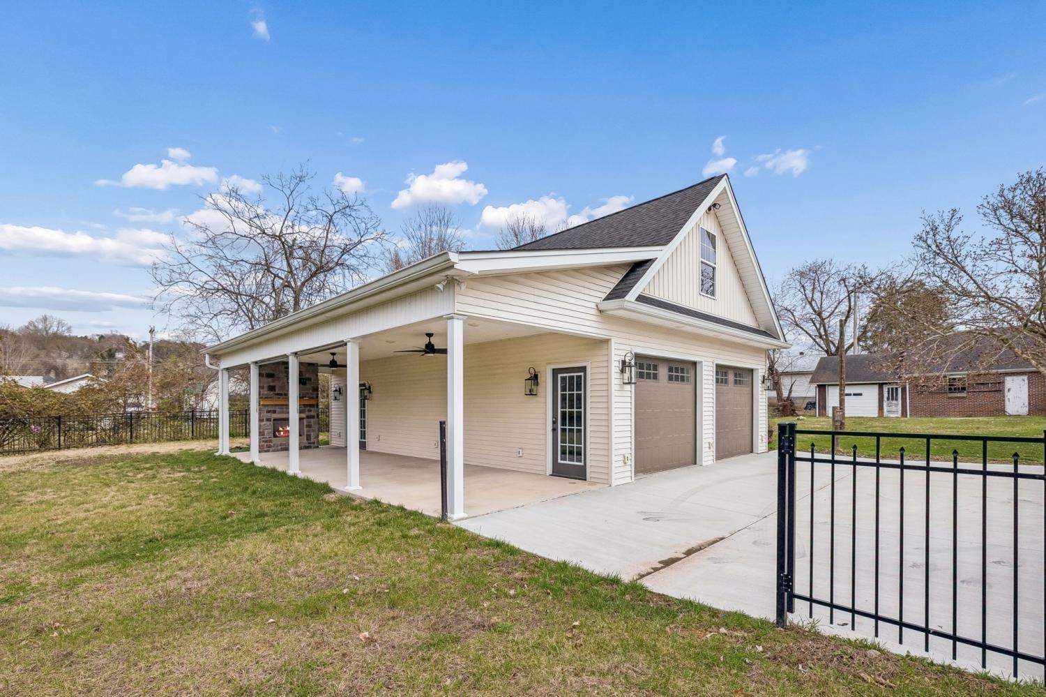 Charming 3BR/2BA home freshly painted with a detached garage offering a 1BR/1BA and additional bonus space, ideally located in the heart of Carthage with all the conveniences of town. The main home is filled with character, featuring original hardwood flooring and a cozy living room with a gas log fireplace flanked by built-in shelving and cabinetry. The kitchen has been partially updated while still preserving original features of the home. A built-in hall tree is located off the side entry near the utility area, adding both charm and functionality. The spacious den is perfect for entertaining or larger gatherings. The primary suite includes a large walk-in California closet, jetted soaker tub with tile surround, and double vanities. The newly built two-car garage includes a bedroom & bath on the main level and a separate upstairs area with vaulted ceilings, recessed lighting, and neutral finishes , offering excellent flexibility for guests, in-law quarters, home office, game room, or potential rental use. Step outside to enjoy the flat, fenced backyard with a covered patio and custom gas stone fireplace—ideal for year-round outdoor living and entertaining. A newly concreted driveway and additional parking provide ample space for guests.