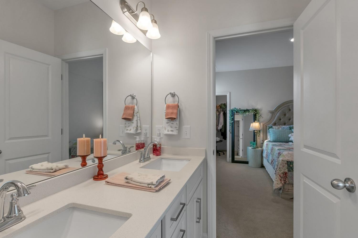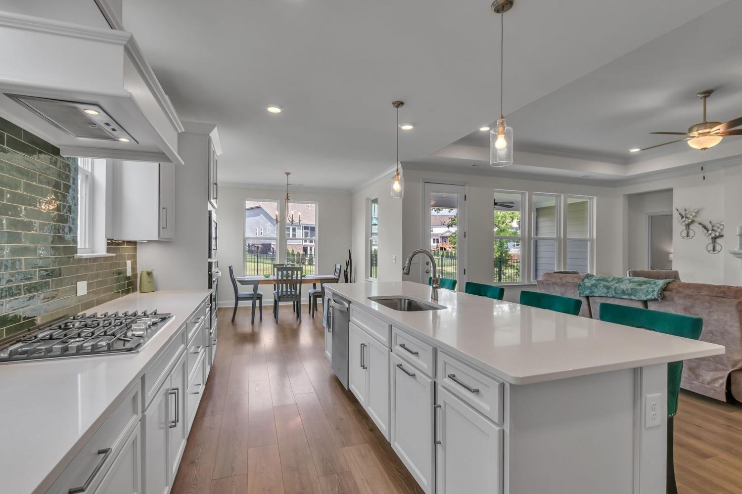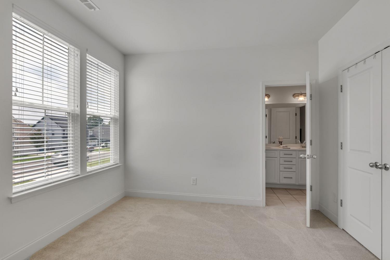 Spacious four bedroom, three and a half bath home designed for mostly one-level living with a private upstairs suite, ideal for guests, a home office, or multigenerational use. Just three years old and priced below appraisal, this home features a functional layout, ample storage, and versatile living spaces on one of South Haven's most family-friendly streets. Engineered hardwood flooring runs throughout the main level and stairs. The open concept living, kitchen, and dining areas create a seamless flow for daily routines and entertaining. The kitchen features quartz countertops, stainless steel appliances, a large island, and an oversized walk-in pantry. The primary suite easily accommodates a king bed along with nightstands and additional bedroom furniture. The en-suite includes double vanities, an extra large soaking tub, separate shower, and walk-in closet. Upstairs offers a spacious bonus room with walkout attic storage on both sides plus a private bedroom and full bath, providing separation for guests or flexible use. The three car tandem garage adds rare storage and parking capacity. The iron fenced backyard backs up to neighborhood greenspace, offering openness while maintaining a sense of separation. South Haven amenities include walking trails, a pool with cabana, playground, food truck nights, and community events that foster a true neighborhood feel. Zoned for Poplar Hill Elementary and future Poplar Hill Middle School in 2026. The layout, storage, and scale of this home live larger than any photos convey. Schedule your showing and experience this home in person!