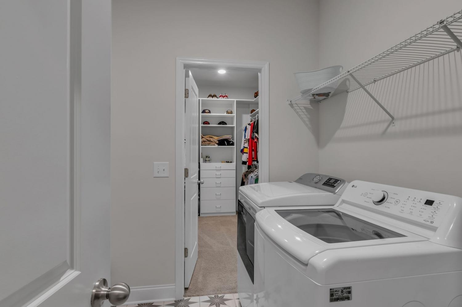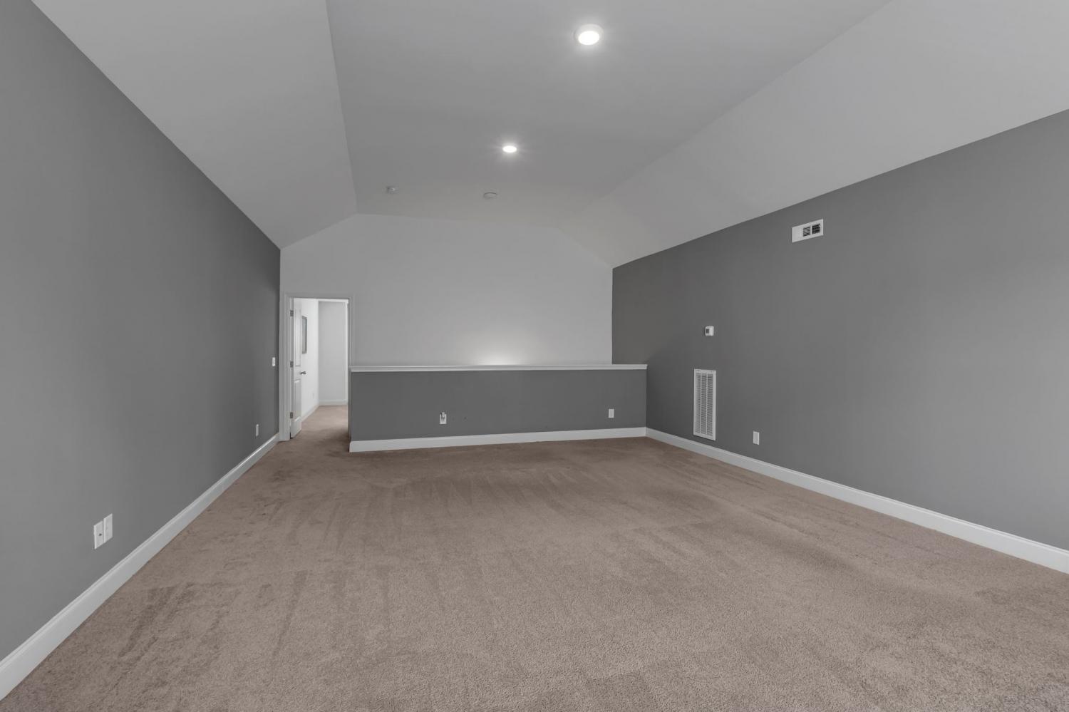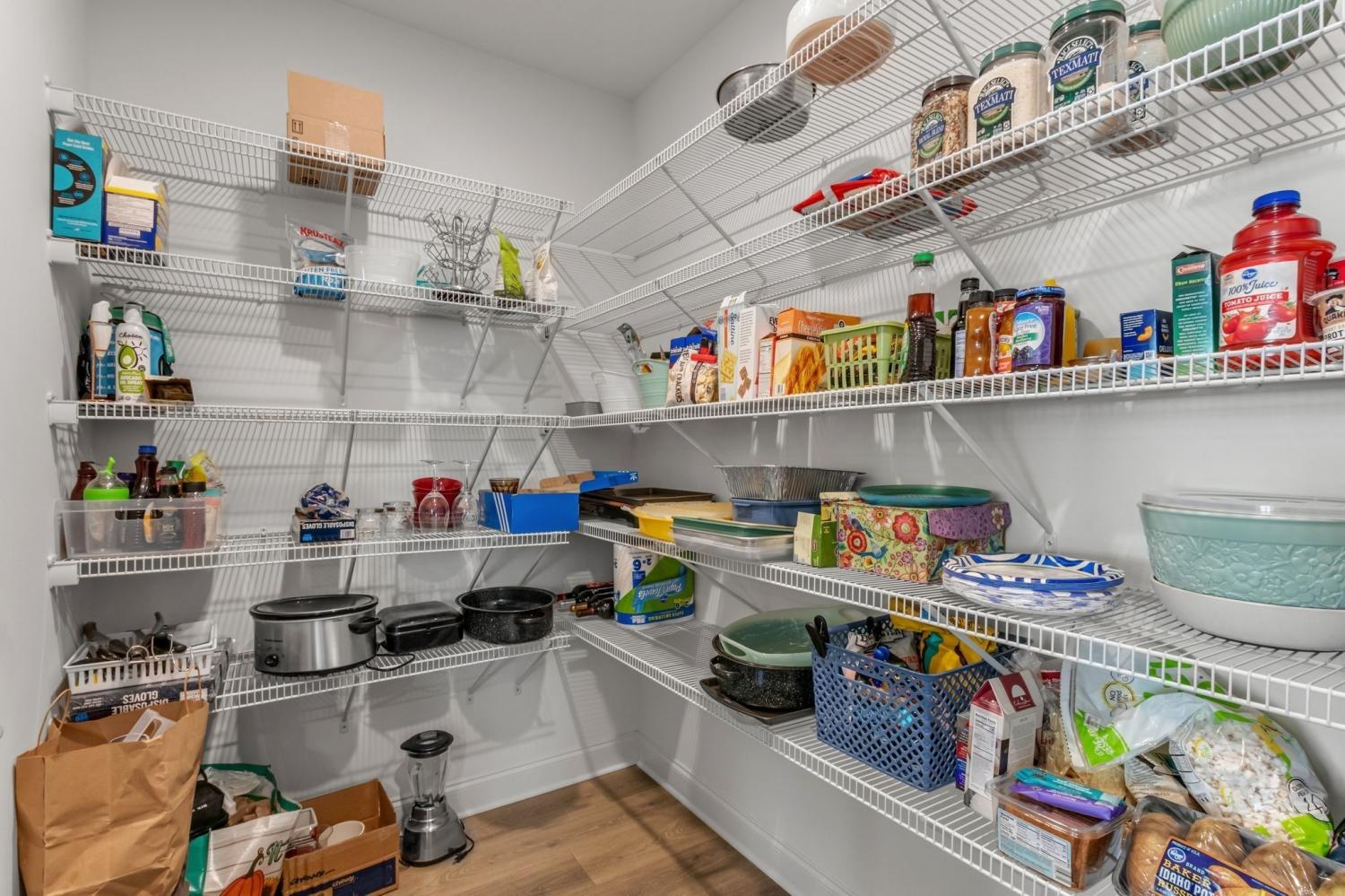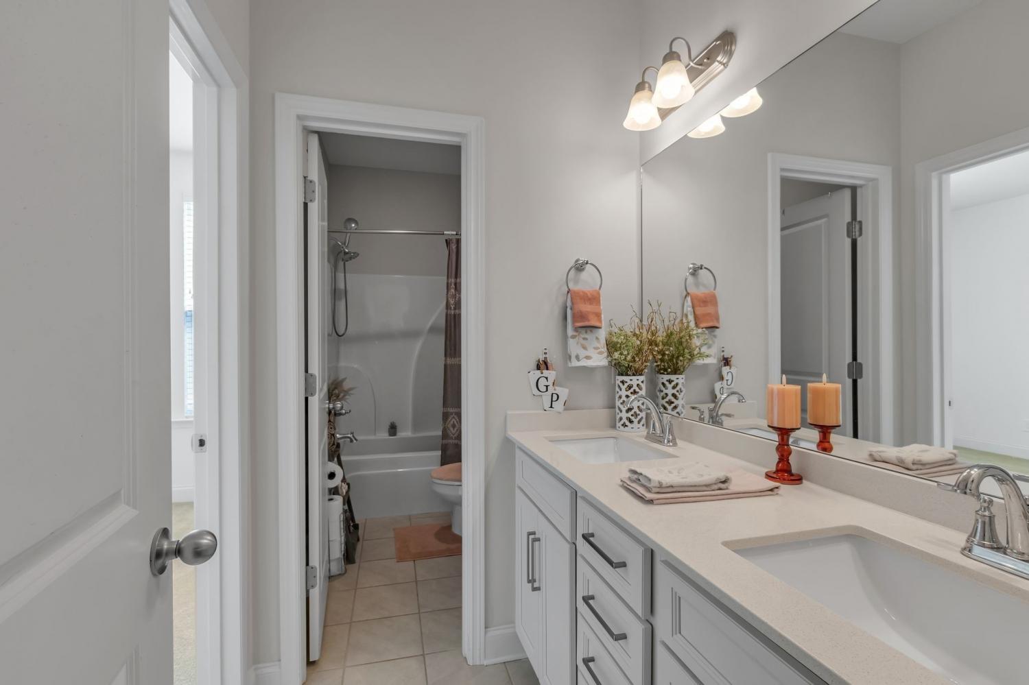 Spacious four bedroom, three and a half bath home designed for mostly one-level living with a private upstairs suite, ideal for guests, a home office, or multigenerational use. Just three years old and priced below appraisal, this home features a functional layout, ample storage, and versatile living spaces on one of South Haven's most family-friendly streets. Engineered hardwood flooring runs throughout the main level and stairs. The open concept living, kitchen, and dining areas create a seamless flow for daily routines and entertaining. The kitchen features quartz countertops, stainless steel appliances, a large island, and an oversized walk-in pantry. The primary suite easily accommodates a king bed along with nightstands and additional bedroom furniture. The en-suite includes double vanities, an extra large soaking tub, separate shower, and walk-in closet. Upstairs offers a spacious bonus room with walkout attic storage on both sides plus a private bedroom and full bath, providing separation for guests or flexible use. The three car tandem garage adds rare storage and parking capacity. The iron fenced backyard backs up to neighborhood greenspace, offering openness while maintaining a sense of separation. South Haven amenities include walking trails, a pool with cabana, playground, food truck nights, and community events that foster a true neighborhood feel. Zoned for Poplar Hill Elementary and future Poplar Hill Middle School in 2026. The layout, storage, and scale of this home live larger than any photos convey. Schedule your showing and experience this home in person!