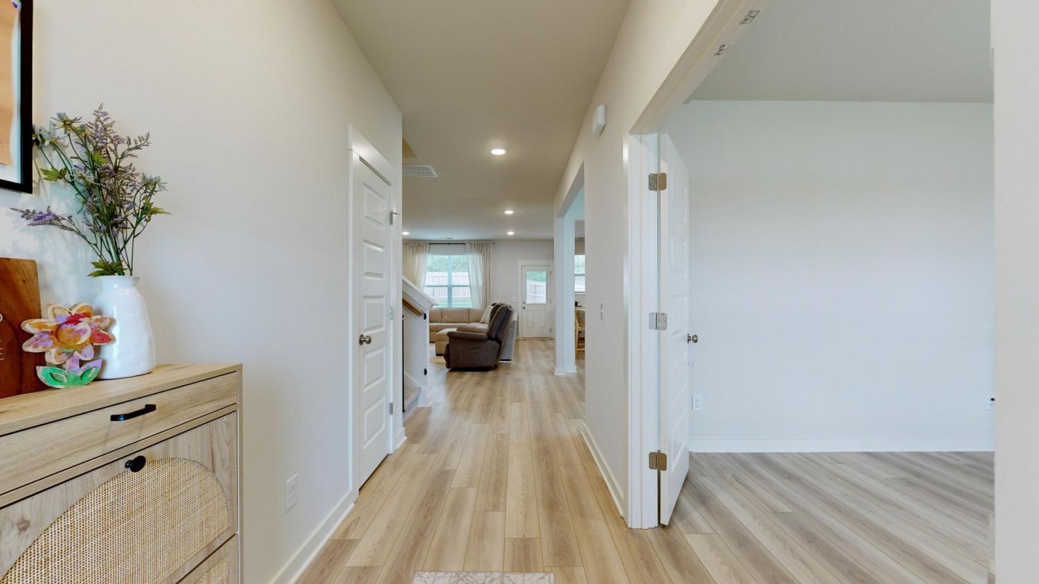 Like-new 4BR/3BA home built in 2023 in White House’s desirable Willow Grove neighborhood. Situated on one of the best lots in the community, this home features a fully fenced backyard that backs to mature trees—offering privacy and space to relax or entertain. Main level includes an open-concept kitchen, dining, and living area, plus a secondary bedroom and full bath—ideal for guests or multigenerational living. French-door study provides a perfect office or flex space. Upstairs offers a spacious primary suite with walk-in closet, two additional bedrooms, full bath, and a large loft/bonus room. Thoughtful upgrades include a hardwired Ring security system with a motion-sensor floodlight camera above the garage and a doorbell camera at the front door. The back patio has been extended for additional outdoor living space, and interior enhancements include custom accent walls in the dining room and added cabinets and shelving in the laundry room. The yard has been professionally treated for over a year and is in great condition. Energy-efficient design with electric HVAC and low-flow fixtures. 2-car garage. Conveniently located minutes from I-65.
