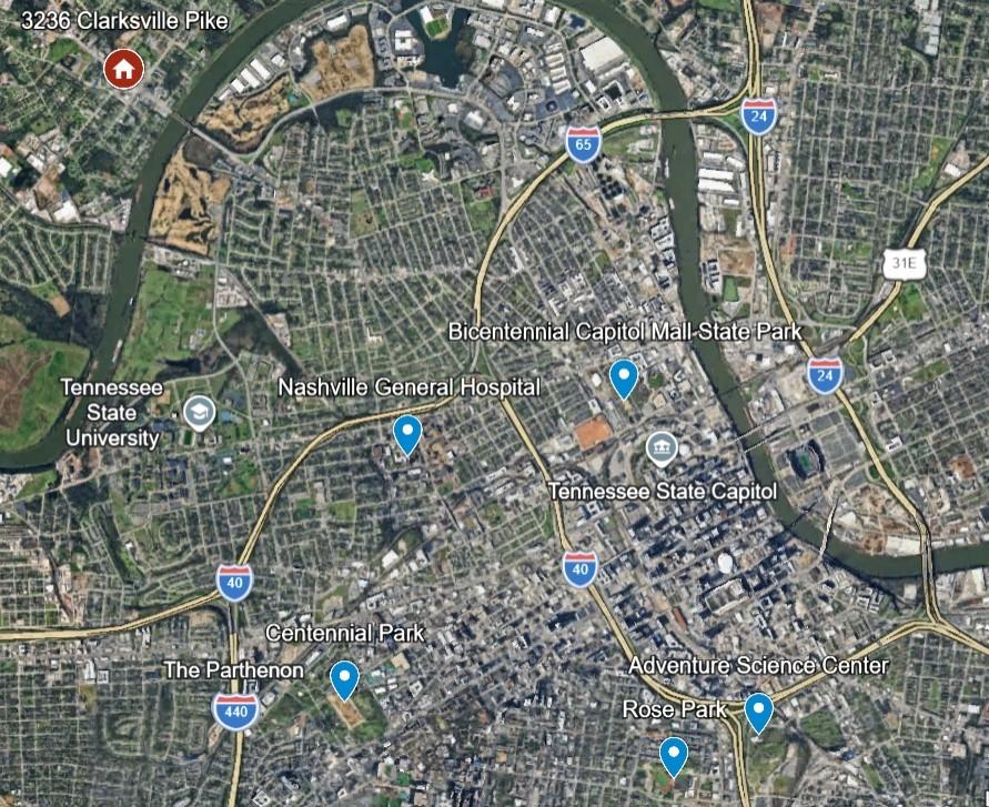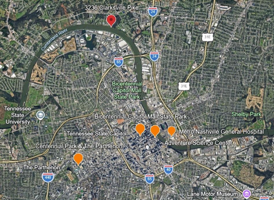 Clarksville pike across the Cumberland River, go up the hill, 3236 on your left, beautiful view of downtown.