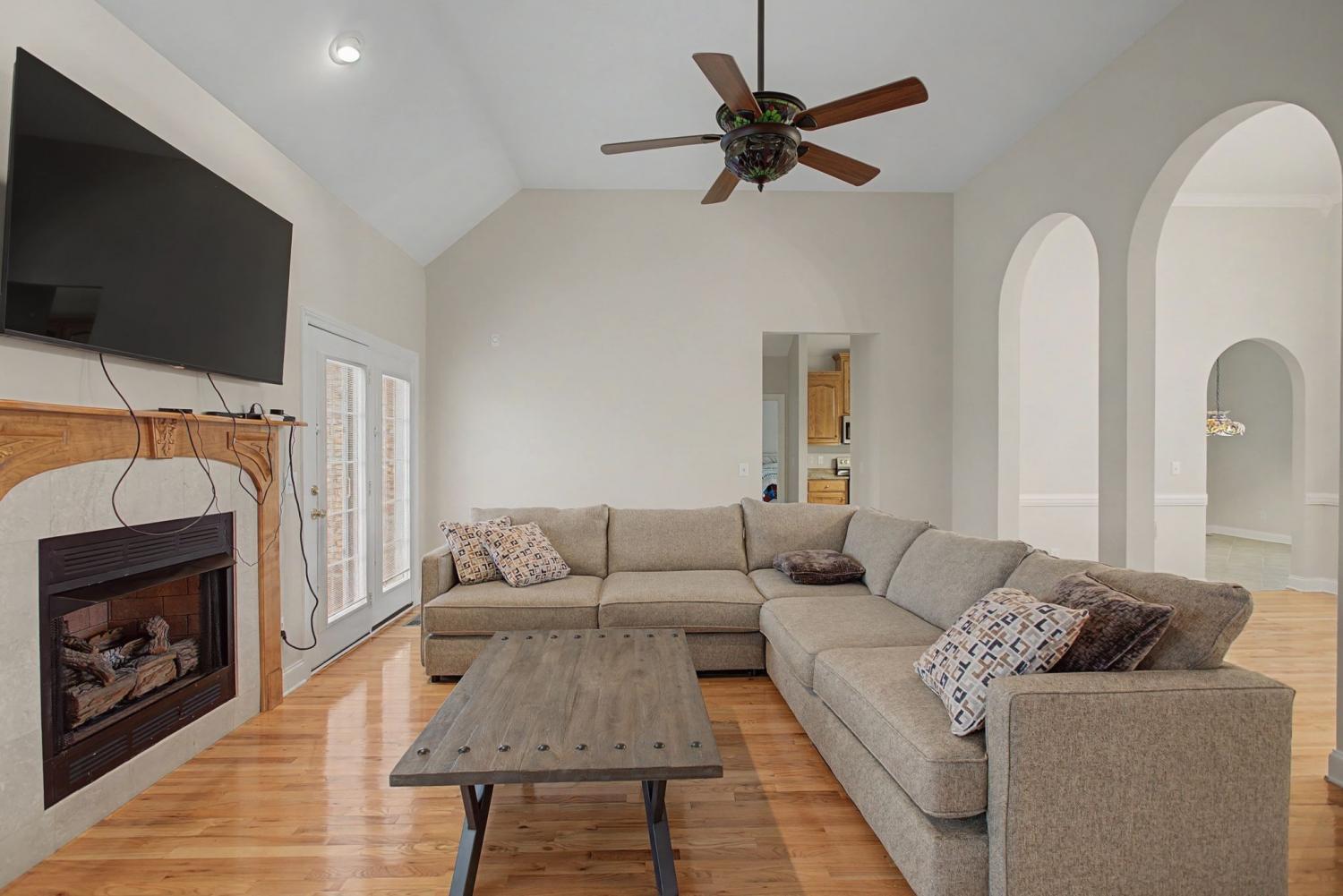 WHAT A PRIVILEGE TO LIST THIS HOME! Beautiful all-brick, one-level home sit on a very nice flat 1.25-acre lot. The area is ripe for peace and quiet as you go home everyday. The front yard shows a charming fountain with an arched front porch. As you enter the foyer opens into a open area living room featuring a vaulted ceiling, cozy fireplace, and entry to a fabulous back patio with a huge back yard. The home is Elegant with nuances all over the home especially in the dining and kitchen area, Kitchen has spaces to cook and socialize at the same time and has stainless steel appliances, granite countertops, vaulted ceilings, and great looking cabinetry. The laundry room includes a utility sink and lots of storage for all types of your needs. The master suite is your place to relax, sleep with an outstanding walk-in closet, dual vanities, a jetted tub, and a separate shower—all set apart in a split-bedroom layout for added privacy. Includes a 2-car att garage with built-in storage cabinets with additional storage room. Well-maintained home is what is listed and it is a wonderful home Call for us to schedule your showing today!