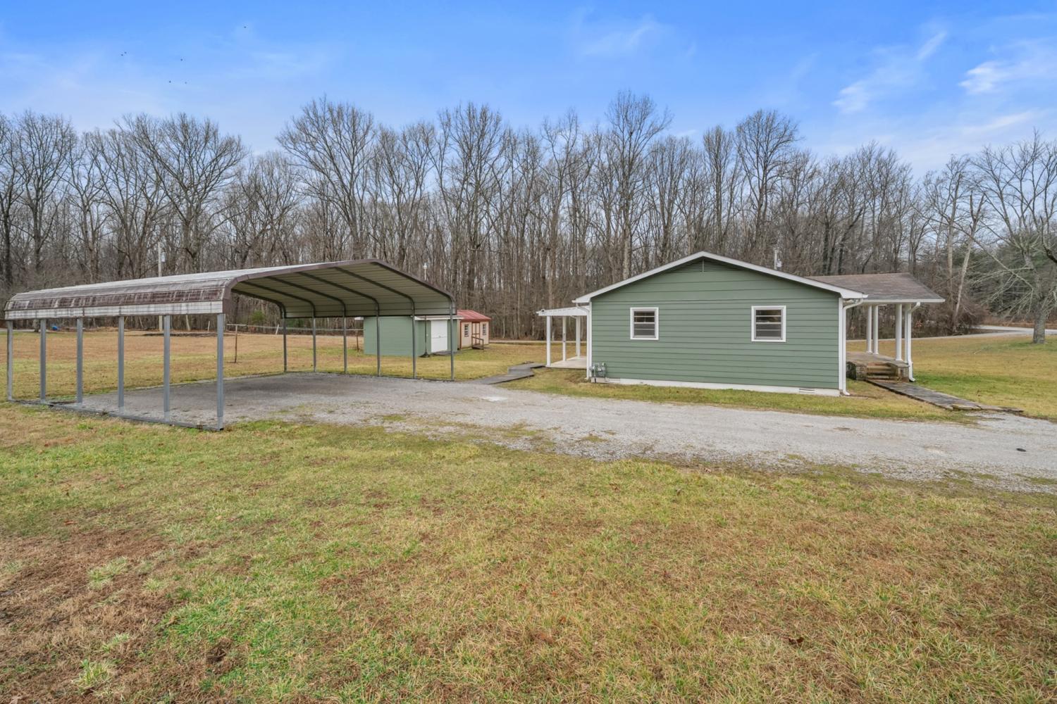 Tucked away on a full acre in beautiful Sewanee, this completely remodeled cottage offers the perfect blend of charm, room to grow and modern updates, just minutes from town and convenient to University of the South, yet not located on the Domain. With no HOA and no restrictions, plant your garden or get chickens, you’ll enjoy both freedom and flexibility in an idyllic setting. This inviting 4-bedroom, 2-bath home has been completely renovated. Step inside to find new luxury vinyl flooring throughout, fresh interior and exterior paint, modern light fixtures, and a bright simple layout filled with natural light. The spacious living room features large windows and flows seamlessly through the home’s original arched opening into the beautifully updated kitchen and dining area, preserving some cottage’s original character with modern updates. The brand-new kitchen showcases black granite countertops, new cabinetry, stainless steel appliances, and a removable island for flexible entertaining. Just off the kitchen, the generously sized primary suite offers comfort and privacy with its own ensuite bath with a low-entry shower. Down the hallway, you’ll find three additional bedrooms and a second full bath with tub/shower combination for convenience. Major upgrades provide peace of mind, including a brand-new HVAC system with new ductwork, a roof approximately 10 years old, septic cleaned in 2024 with a new line installed from the house to the road, and a gas heater for backup warmth. An old well remains on the property as well. Outside, enjoy slow mornings on the large covered stone front porch overlooking the expansive yard. French doors off the dining area lead to the covered back porch and backyard, where two storage buildings, one with electricity and one with water hookup, offer endless possibilities. A double carport provides additional covered parking. Charming, updated, and move-in ready, this Sewanee cottage is the perfect place to call home or a great STR.