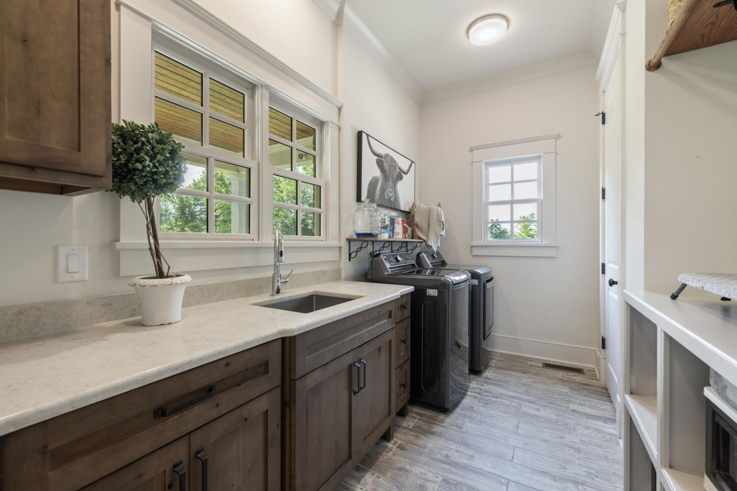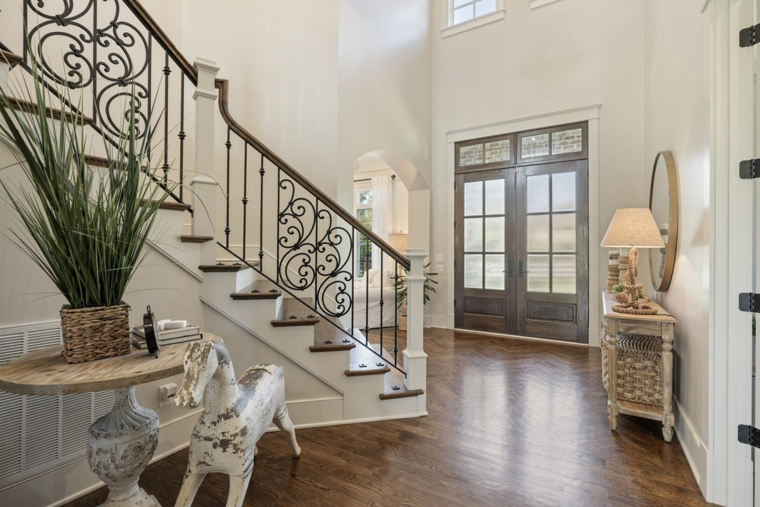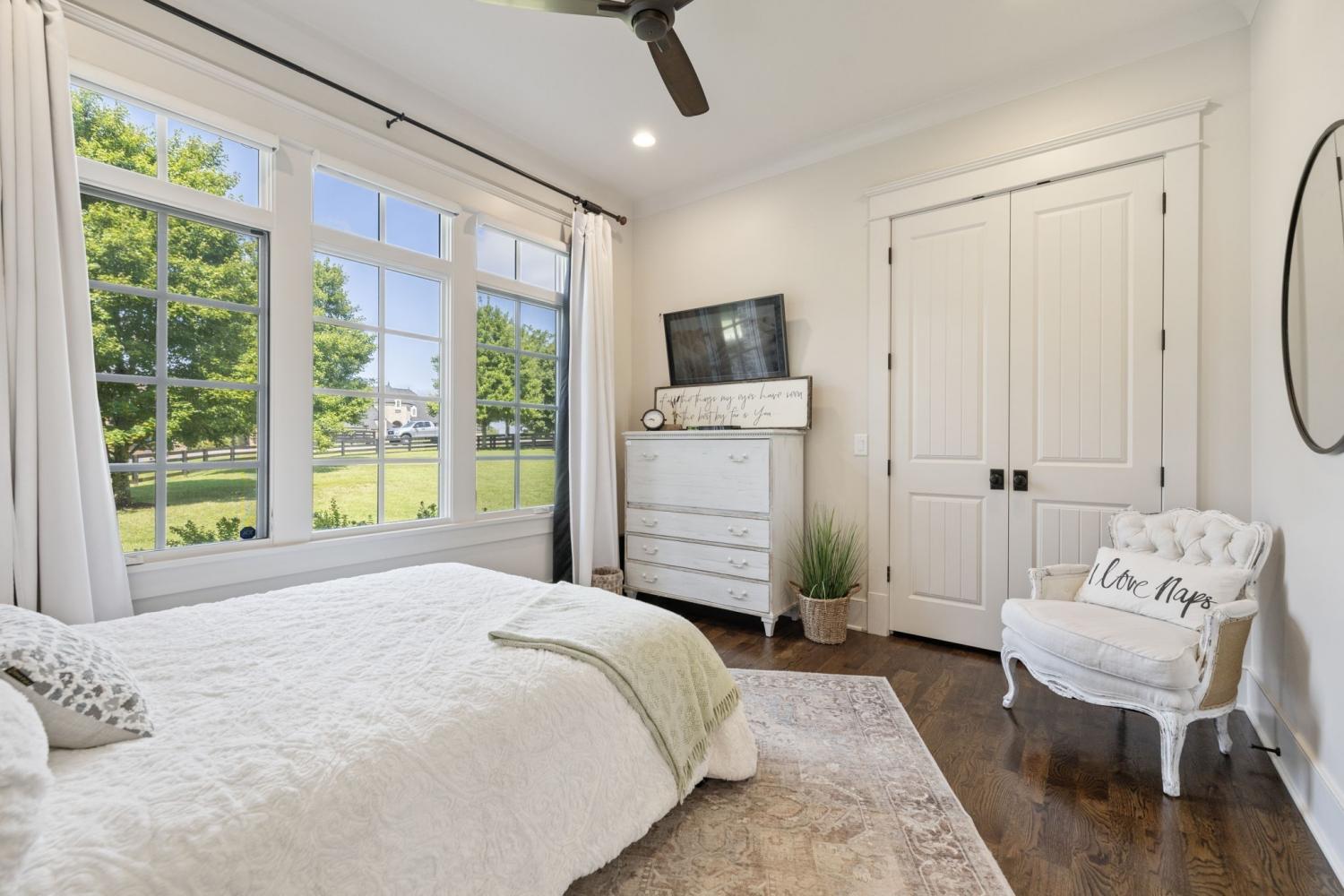 This custom-built home sits on 1.7 flat acres in the highly sought-after Black Hawk neighborhood in beautiful Arrington. The layout features an open-concept main living area with stunning hardwood floors, french doors that flood the space with natural light, and rustic accents throughout. The main level offers a bright formal dining/sitting room with coffered ceilings and two full bedroom suites. Built-in speaker system, home sprinkler system, and automated window treatments. The spacious primary suite includes a spa-style en-suite bath and walk-in closet, while the private guest suite includes a Murphy bed, providing comfort and convenience for visitors, and then transform it into a home office. The chef’s kitchen is equipped with a 48-inch gas range with griddle, built-in refrigerator, oversized island, custom cabinetry, butler’s pantry, wine bar, and a separate cooktop for larger meal preparation needs. The living room is highlighted by a floor-to-ceiling stone fireplace. Upstairs, the home offers two additional bedroom suites, a large recreation room, and a game room, making it an entertainer’s dream! Outdoor living is just as impressive, and it includes a covered patio with built-in gas fire pit, in-ground trampoline, professional landscape lighting, full-yard irrigation, and a fully fenced yard with a high-end electric privacy gate. Enjoy peaceful sunrises from the back patio and vibrant sunsets from the front porch. Additional highlights include a three-car garage, tankless water heater, UV air purifier, and extensive storage and entertaining space. Recent upgrades within the past two years include newly finished epoxy garage floors, newly tiled showers, expanded and upgraded irrigation system, privacy trees, newly added landscape lighting, and new electric gate fencing in the entire property.