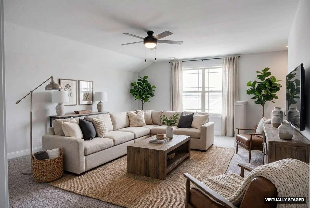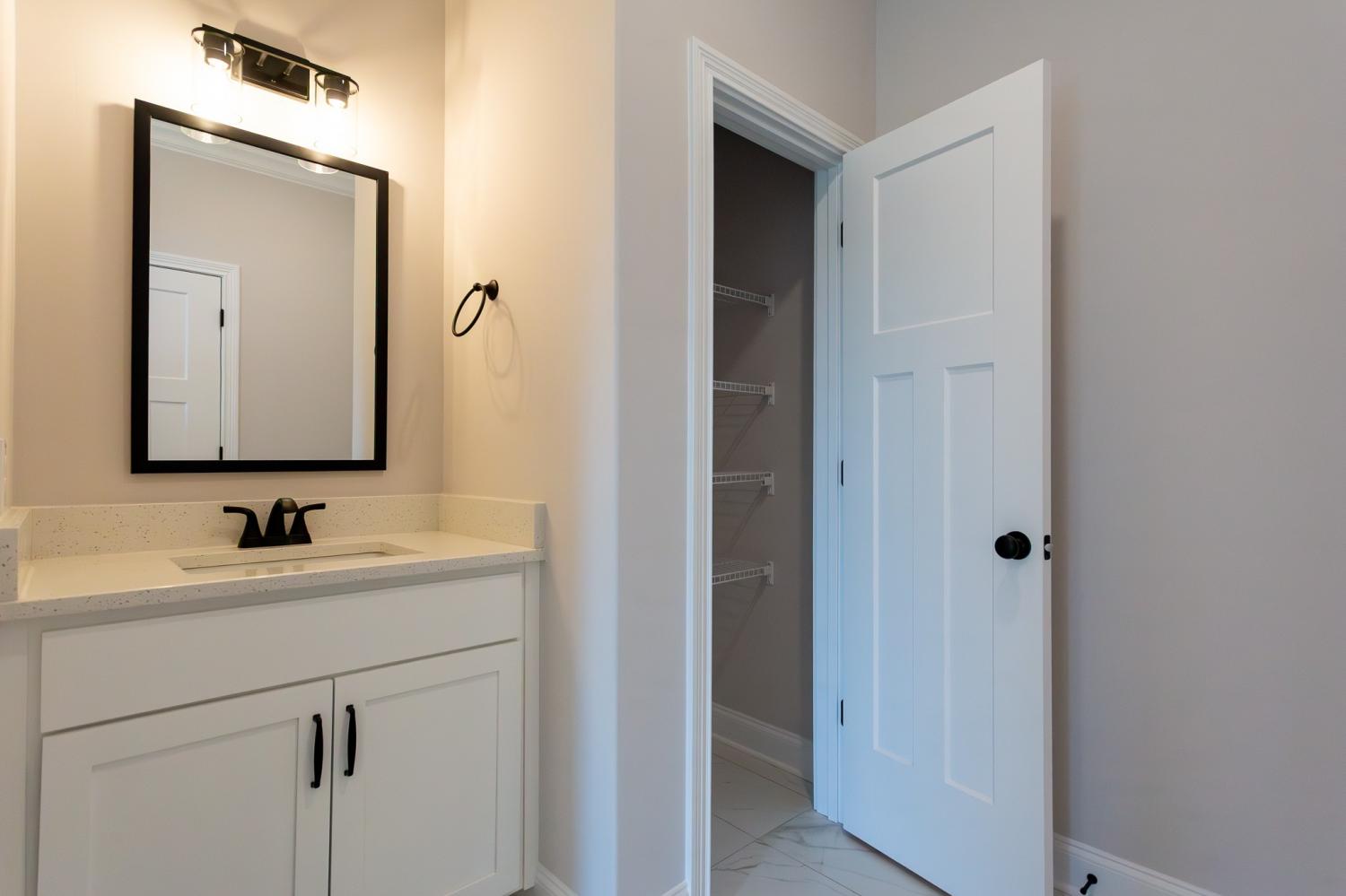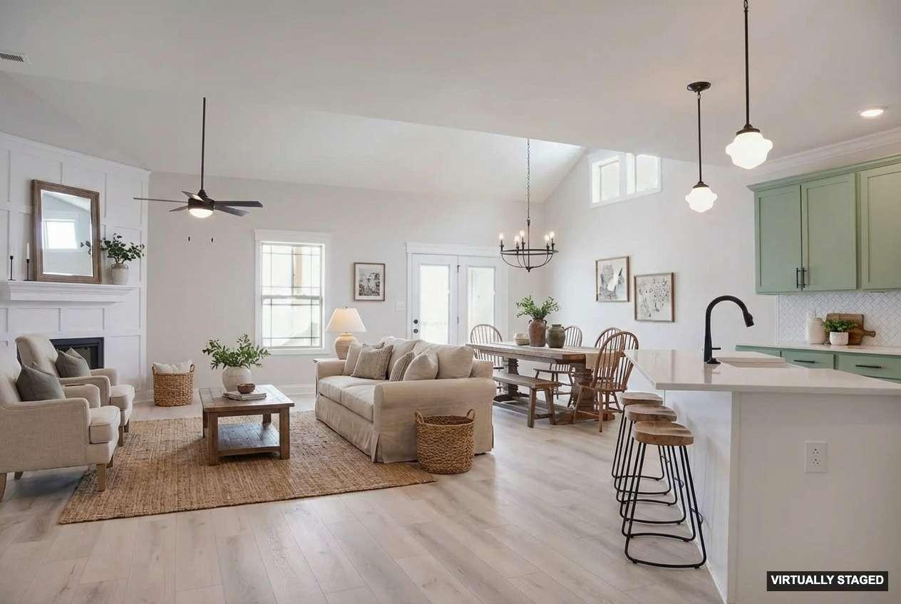 It is hard to describe how truly amazing this home is! From the outside it is extremely deceiving, A must see to believe. Your first impression will be "WOW that's a small home" but once you walk in you will be pleasantly surprised. Two of the bedrooms are thoughtfully located on the main level for effortless comfort and convenience. The laundry room is massive, plenty of room for a freezer, all your cleaning supplies, a sink and more. The outstanding kitchen flows seamlessly into the living room and offers ample custom cabinetry, an ideal layout for entertaining. Countertops are quartz with a Chevron style backsplash. The farm sink is made of porcelain. The appliances are upgraded to finger-proof free. Every cook's dream is the enormous pantry with custom shelving. The master bedroom has a trey ceiling with crown molding. In the master bathroom there is a master closet that is huge (The kind you see in movies), it also has an extra linen closet and a privacy door where the elongated toilet is. There is crown molding in Master bathroom and throughout parts of the home including extra-wide shoe molding which enhances the entire home. The other bedroom on the main floor has its own bathroom with a window for natural lighting. There are 7 ceiling fans including one outside on the patio. The corner fireplace adds a great touch to this tremendous open floor plan. Up-stairs are 2 more bedrooms, one with a walk-in closet. There is a full bathroom and a bonus room with an extra storage room. Unbeatable location just off the interstate.