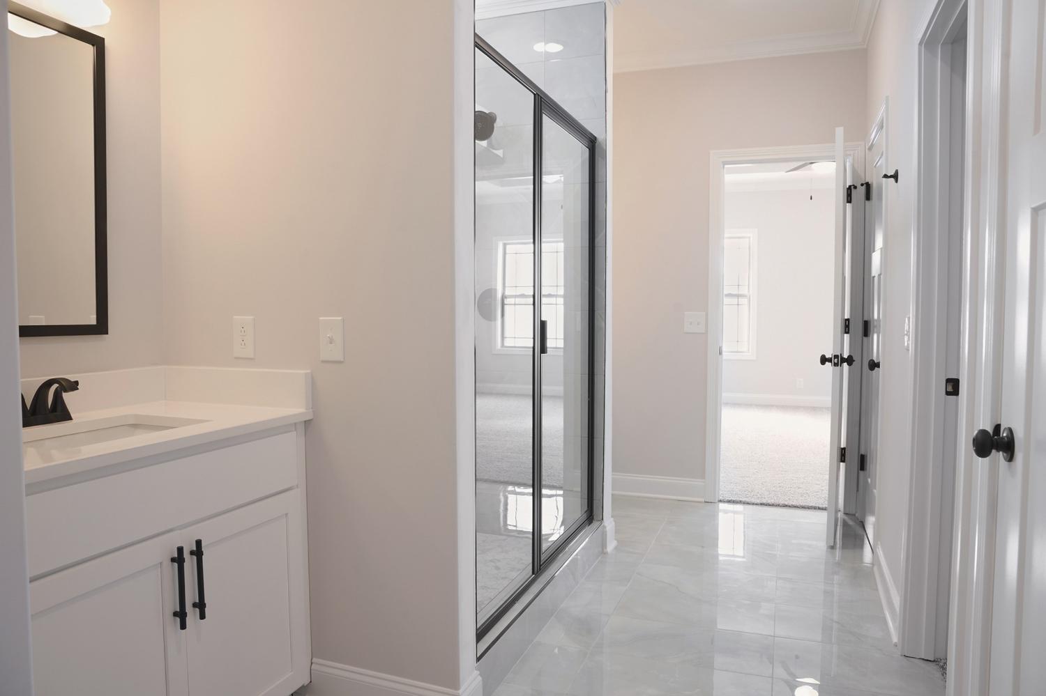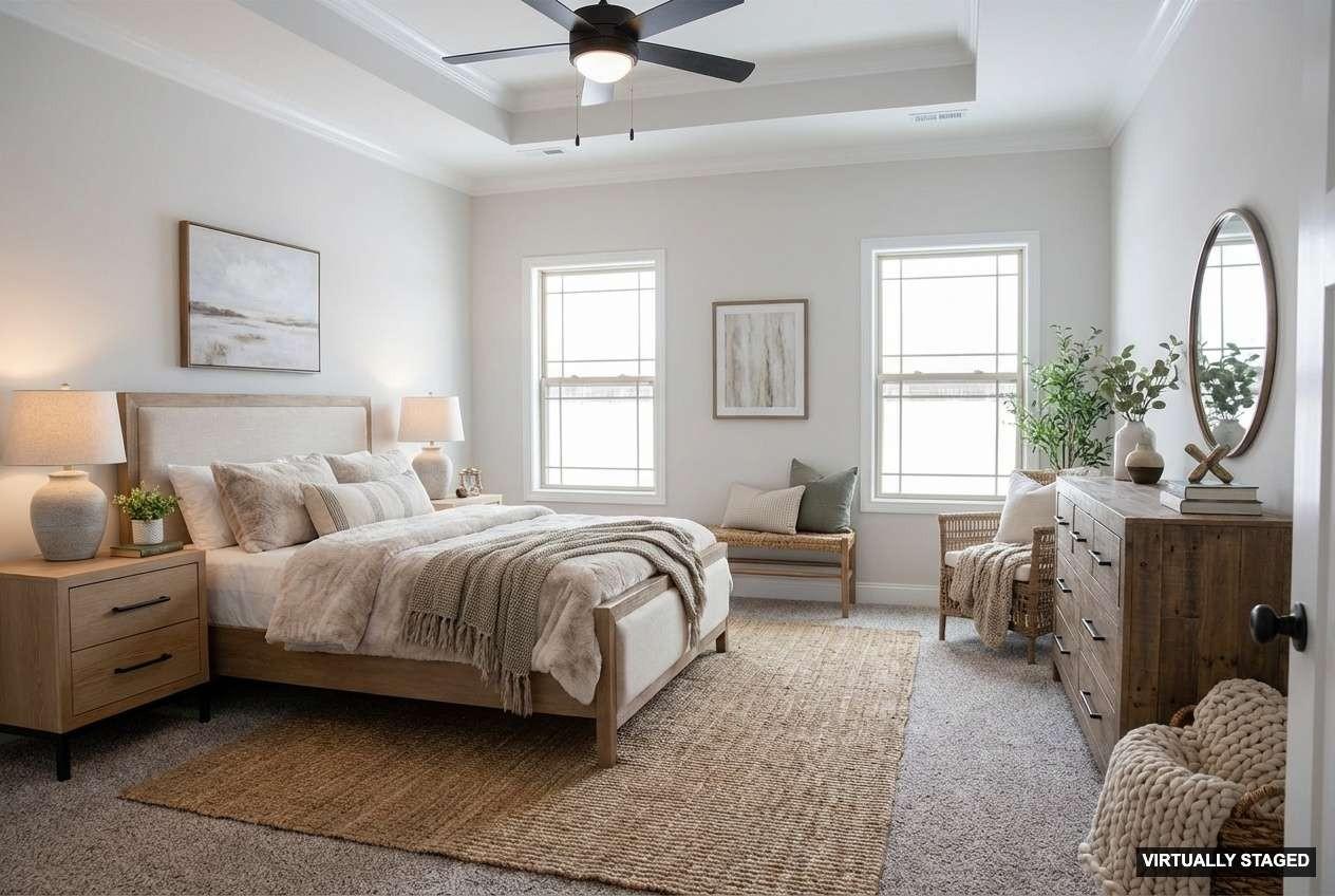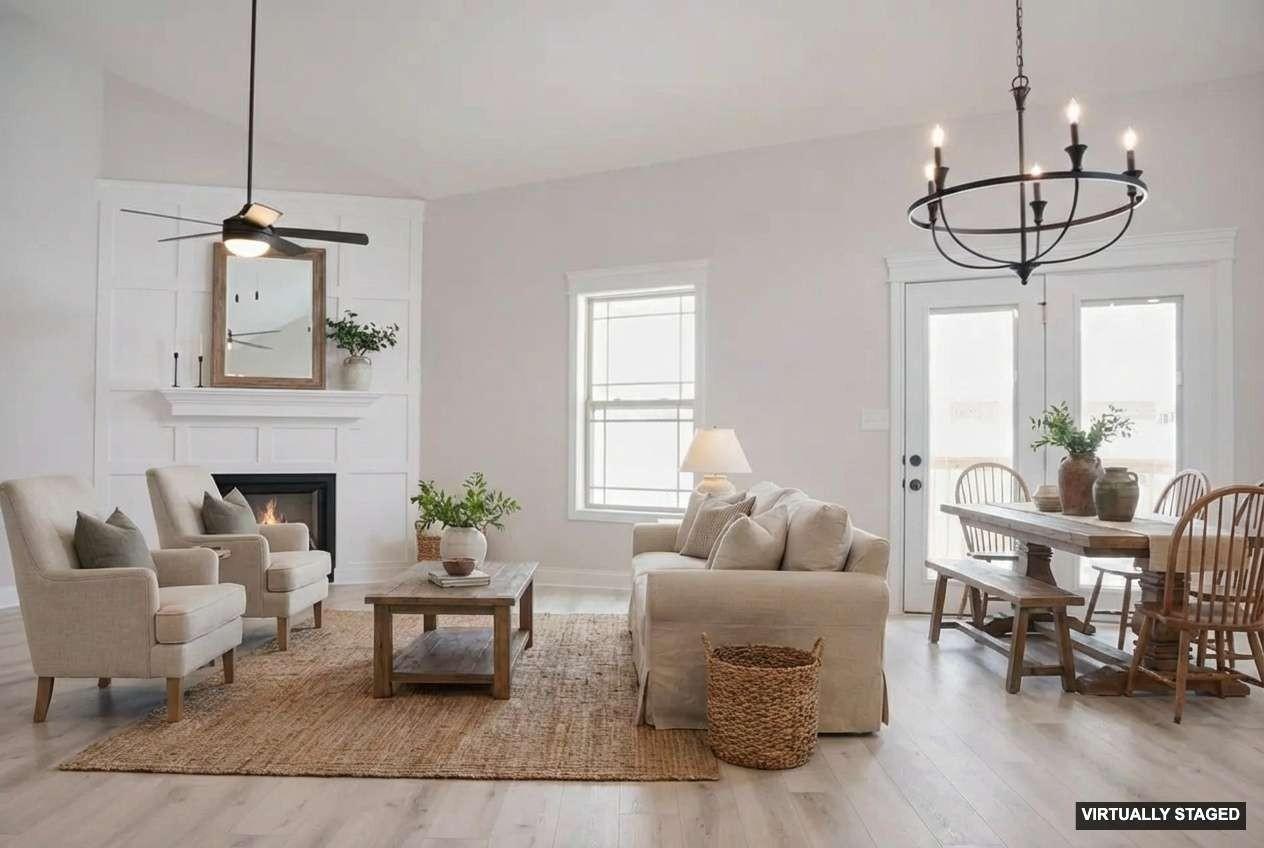 It is hard to describe how truly amazing this home is! From the outside it is extremely deceiving, A must see to believe. Your first impression will be "WOW that's a small home" but once you walk in you will be pleasantly surprised. Two of the bedrooms are thoughtfully located on the main level for effortless comfort and convenience. The laundry room is massive, plenty of room for a freezer, all your cleaning supplies, a sink and more. The outstanding kitchen flows seamlessly into the living room and offers ample custom cabinetry, an ideal layout for entertaining. Countertops are quartz with a Chevron style backsplash. The farm sink is made of porcelain. The appliances are upgraded to finger-proof free. Every cook's dream is the enormous pantry with custom shelving. The master bedroom has a trey ceiling with crown molding. In the master bathroom there is a master closet that is huge (The kind you see in movies), it also has an extra linen closet and a privacy door where the elongated toilet is. There is crown molding in Master bathroom and throughout parts of the home including extra-wide shoe molding which enhances the entire home. The other bedroom on the main floor has its own bathroom with a window for natural lighting. There are 7 ceiling fans including one outside on the patio. The corner fireplace adds a great touch to this tremendous open floor plan. Up-stairs are 2 more bedrooms, one with a walk-in closet. There is a full bathroom and a bonus room with an extra storage room. Unbeatable location just off the interstate.