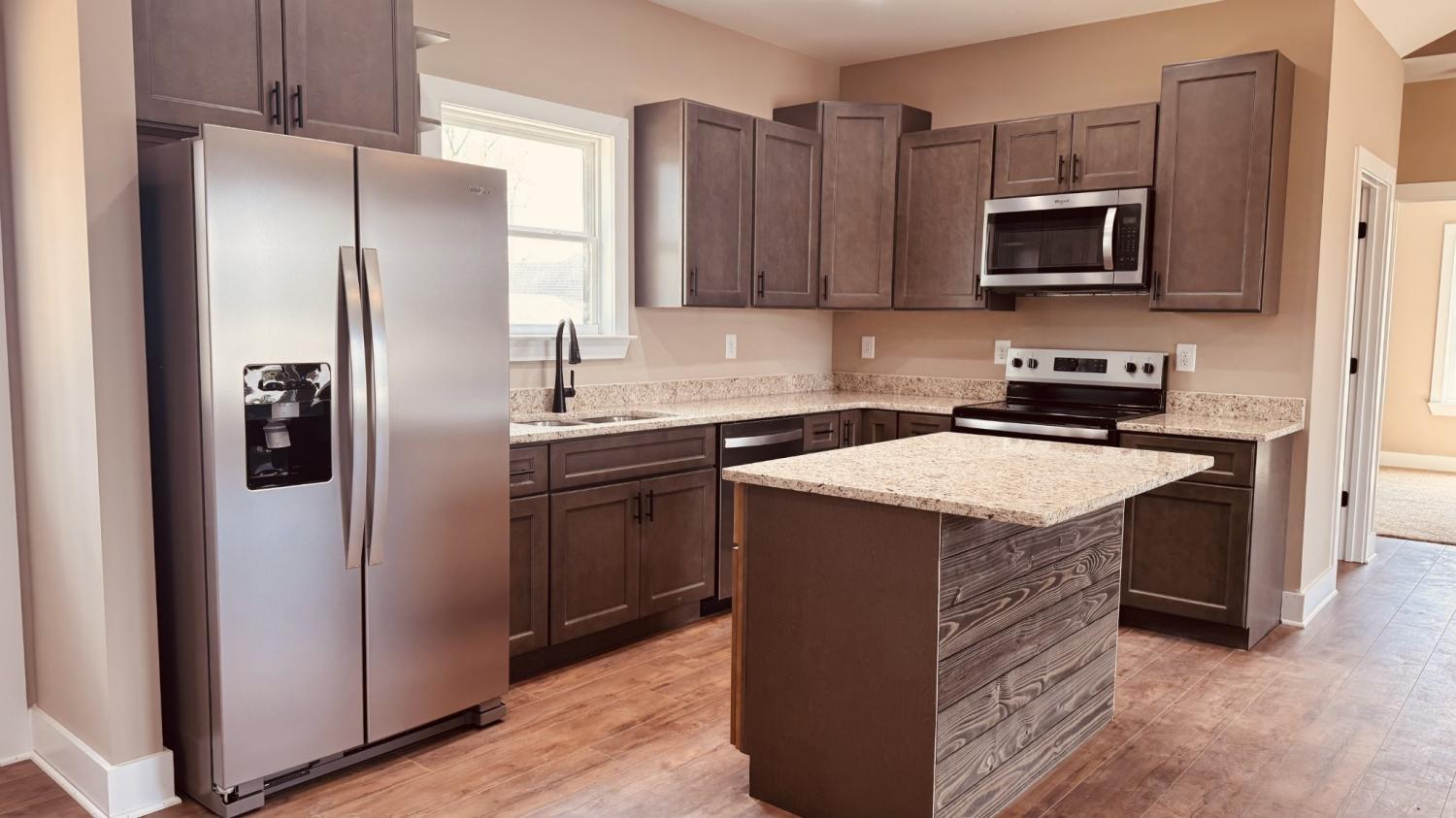 Brick and vinyl maintenance free exterior. Ask anyone who owns a home built by L&T Freeman Construction, LLC what they think about the construction and the builders. This is a local Watertown licensed general contractor whose homes typically are not listed prior to completion but we've been getting inquiries so, it's listed before being completed. 4 weeks or so & you could be moving into this home with the ability to walk to school, the town square & Dollar General. Granted, Dollar General only has one store & it's not on the corner but within walking distance. They build what many would consider a custom home with a spec house price. Yes, prices have gone up some due to tariffs & inflation but not as much as we'd expected. Just ask to see how many homes this builder has built in Watertown or the immediate area to see that smaller local builders do better work. Hurricane clips - not required but installed. Framed not prefab. Wood cabinets with easy close drawers and cabinet doors and granite counter tops too. Separate laundry room with a door to prevent noise and an oversized garage for a house this size. Not saying you'll be able to keep a long bed truck along with a lawn mower and other garage items but a typical car and a mower plus more is going to allow you to lock up your belongings but again, it's Watertown and everyone knows everyone. Laminate wood floors in all areas except the two bedrooms. Yes, the primary bedroom, bathroom and closet do have laminate wood floors too. Again, only the two smaller bedrooms have carpet. Although it's not had final grade or grass planted, you'll be able to enter the front door using the concrete sidewalk. If raining, yes, a covered porch is nice. The backyard is going to have a 10x10 deck once grade work is completed. Good size closets in all rooms and ceiling fans too. Where else are you going to find a home like this built with windows that have been wrapped instead of just drywall turned back? Don't miss this one.