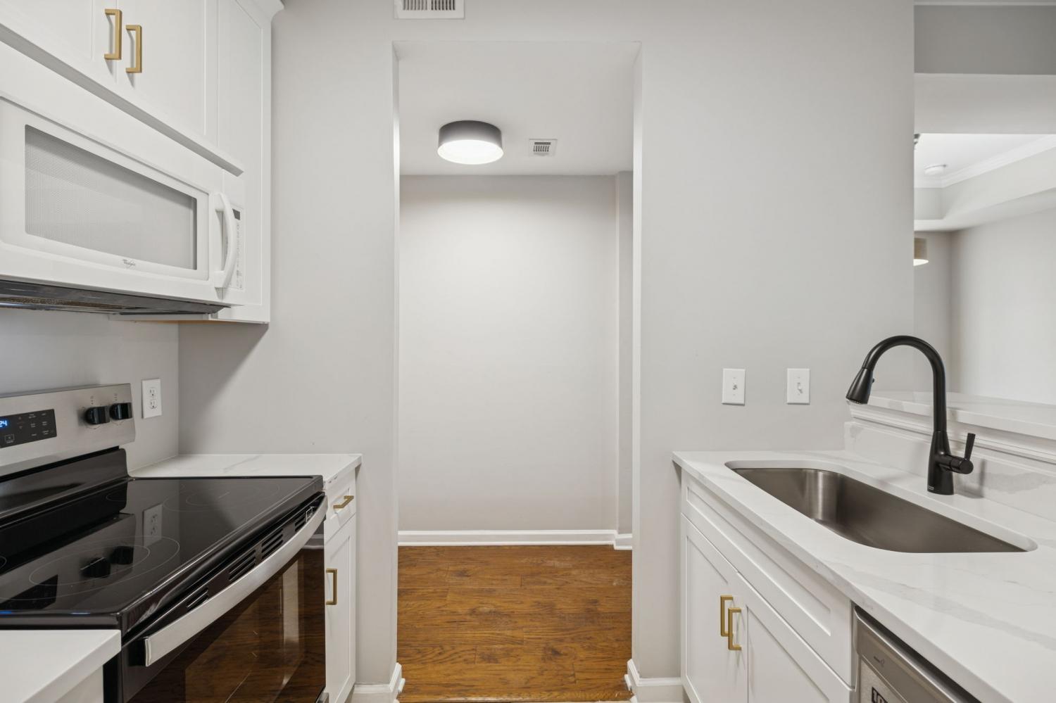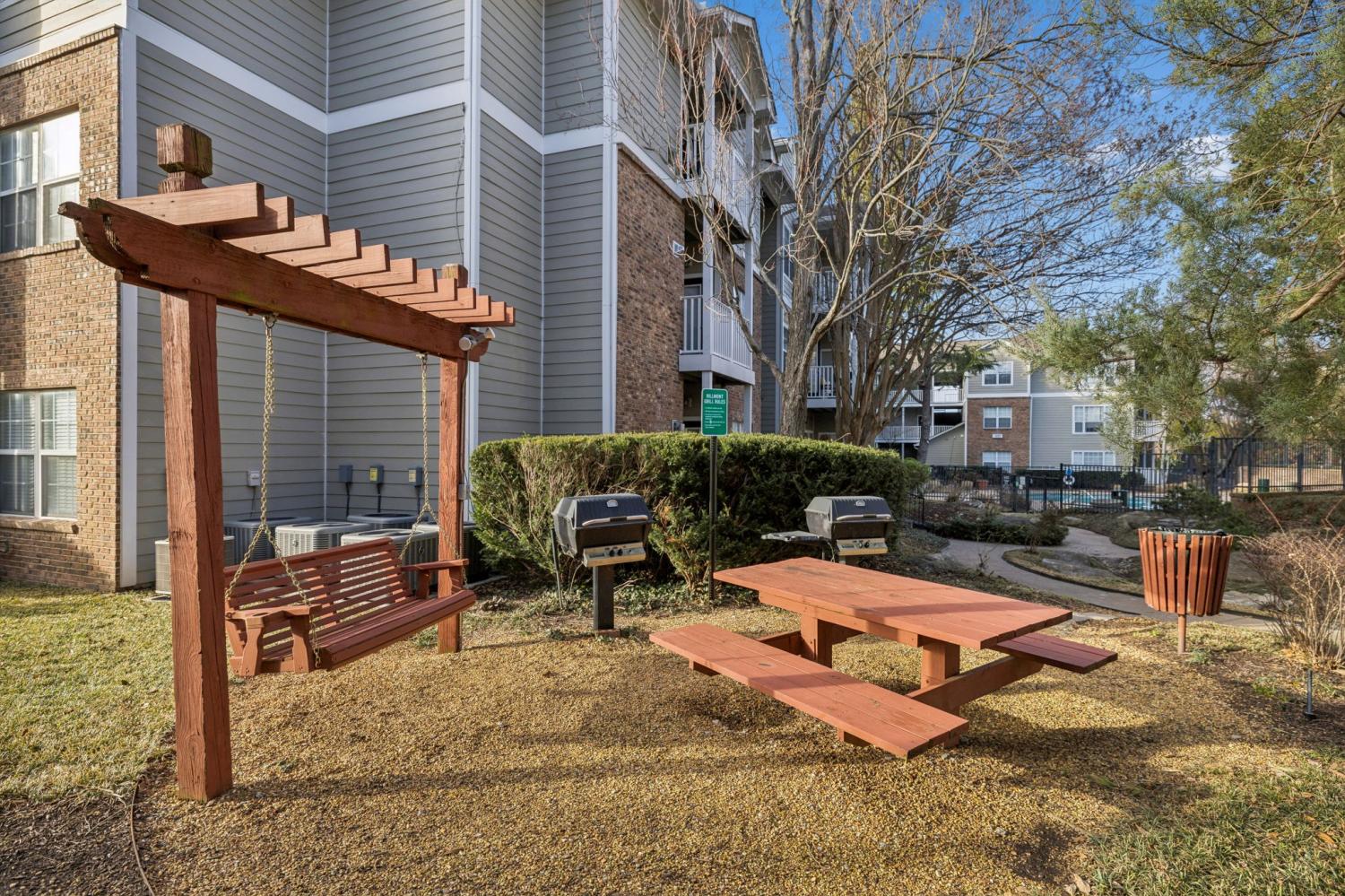 This 2 bedroom/1 bath + office/flex room also includes a garage.......Beautifully renovated and truly one of a kind within the building, this 2-bedroom, 1-bath residence with dedicated office/flex space offers a rare opportunity in the heart of Green Hills. Featuring hardwood floors throughout, the unit has been fully remodeled with thoughtful, high-end finishes, including new cabinetry, updated lighting, fresh paint, designer hardware, new tilework, and stunning quartz and marble countertops. Tall ceilings and generously sized rooms create an airy, spacious feel rarely found in condominium living. The private outdoor patio overlooks the pool, providing a peaceful view and an ideal setting for morning coffee or evening relaxation. The primary suite offers a walk-in closet, while the secondary bedroom features an oversized closet for abundant storage. The flexible office space can easily serve as a home office, workout room, media room, or additional living area to suit your needs. Residents enjoy exceptional community amenities including a resort-style pool, fitness center, clubhouse, grilling patios, and convenient dog stations. A private garage is included — an added bonus in this sought-after location. Ideally situated with easy access to Vanderbilt, Belmont, and Lipscomb, as well as premier shopping and dining, this Green Hills gem combines luxury, convenience, and lifestyle. Garage unit is A-6.