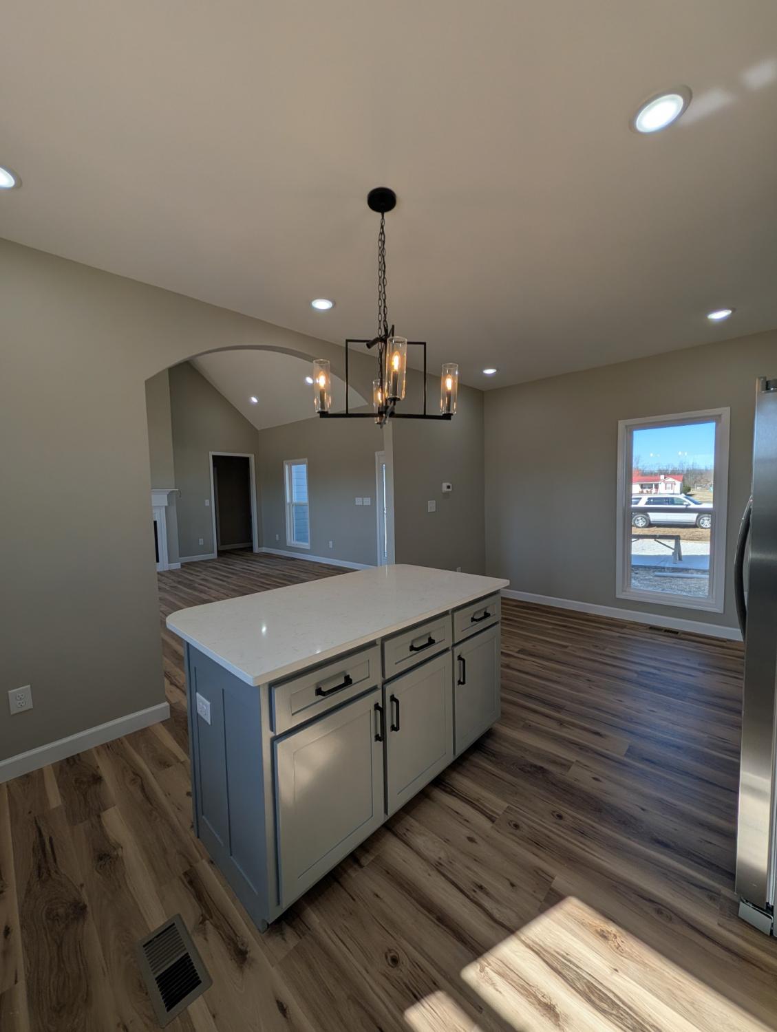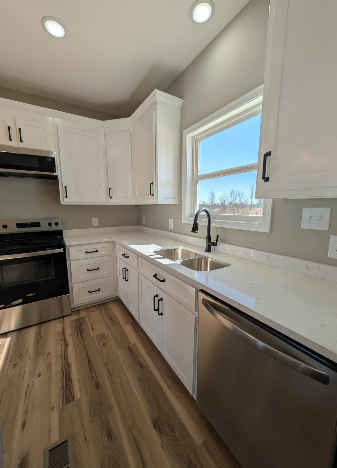 Step into this stunning new construction that perfectly blends quality, comfort, and modern design. This 3-bedroom, 2-bath home sits on a spacious 1.02-acre lot, offering a peaceful country setting with plenty of room to breathe. From the moment you enter, you’ll notice the attention to detail and superior craftsmanship throughout. The vaulted ceiling in the living room adds an airy, open feel, complemented by a cozy fireplace that makes this space perfect for relaxing or entertaining. The chef-inspired kitchen boasts quartz countertops, brand-new stainless-steel appliances, and a stylish island that opens beautifully to the living area through an elegant arched doorway—perfect for modern living. Retreat to the owner’s suite, where you’ll find a luxurious jetted tub, an oversized tile shower, and a spacious walk-in closet. With no carpet throughout, this home combines style, durability, and easy maintenance. The split-bedroom, open floor plan offers both privacy and seamless flow—ideal for families, guests, or anyone who loves open living spaces. Enjoy the tranquility of country living with all the benefits of a brand-new, high-quality home. Once you’re here, you might never want to leave!