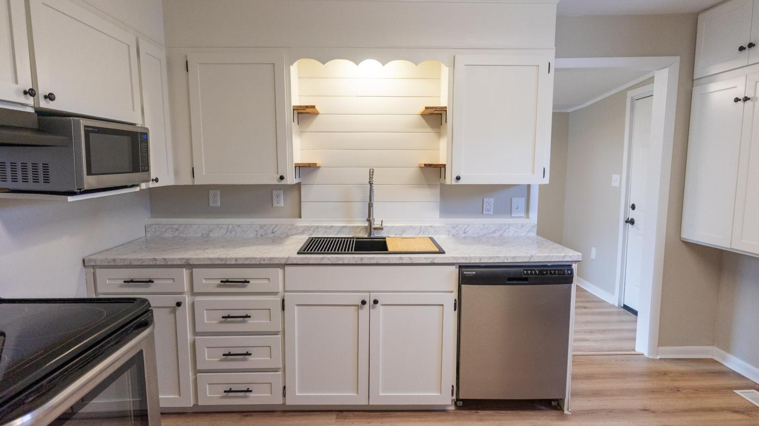Charming move-in ready home located in the heart of Tullahoma! This delightful 2 bedroom, 1 full bath features brand new laminate flooring, lighting, plugs and switches, with fresh, neutral paint throughout. Bathroom has been fully upgraded with attention to detail. Stainless steel appliances are featured in the eat-in kitchen with bull nose counter tops, new sink, faucet and lighting. The spacious mud room is located off the kitchen where the washer and dryer remain—making this home truly turnkey. Step outside to enjoy the large fenced backyard, perfect for relaxing, entertaining, or pets. A storage building provides extra space for tools, hobbies, and seasonal items. Numerous upgrades and located within walking distance to community favorites including the gym, library, swimming pool and scenic walking trails. Prime location near schools, church, restaurants, shopping and Motlow State Community College. *1% offered towards rate buy down or buyer's closing cost with CMG Mortgage.