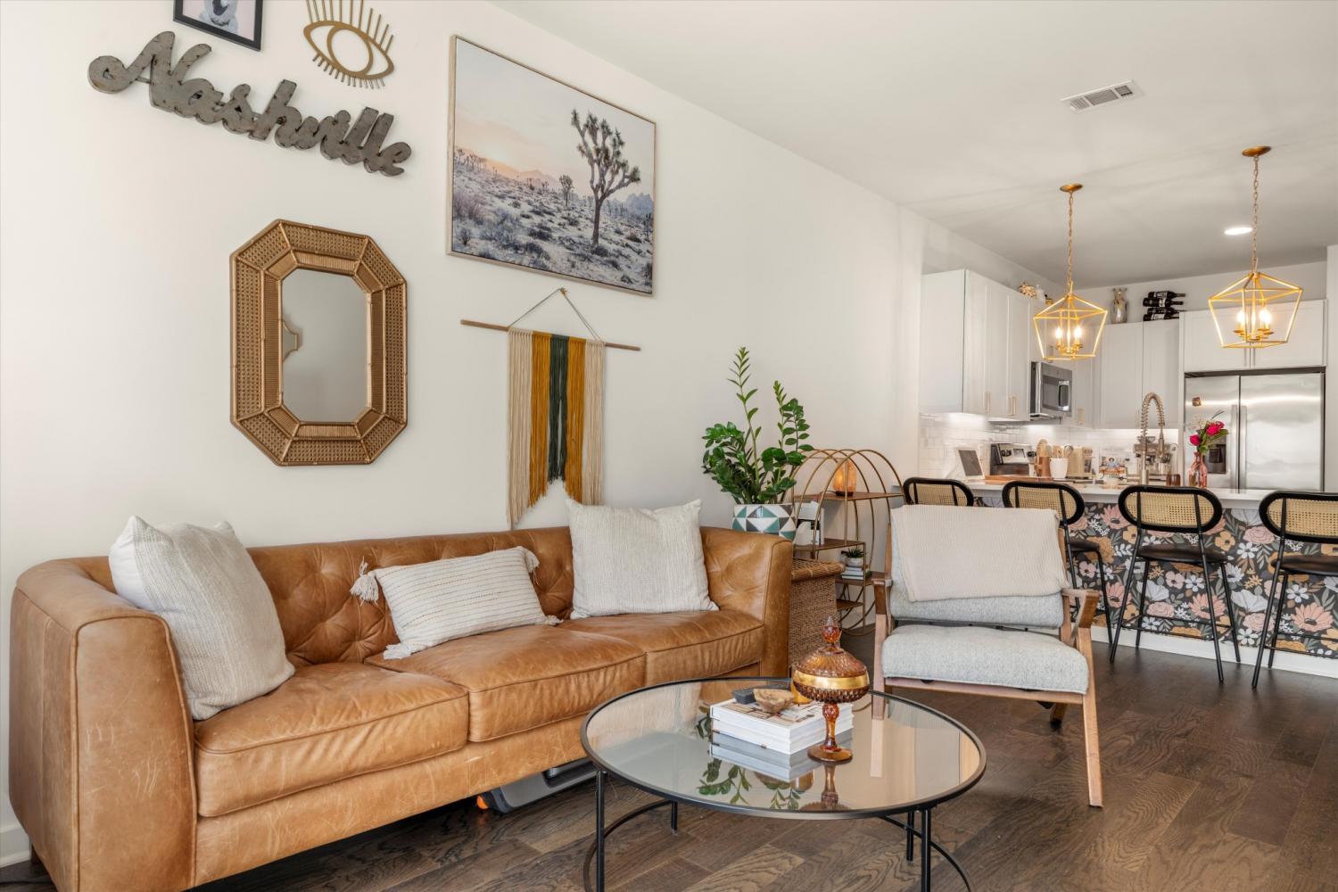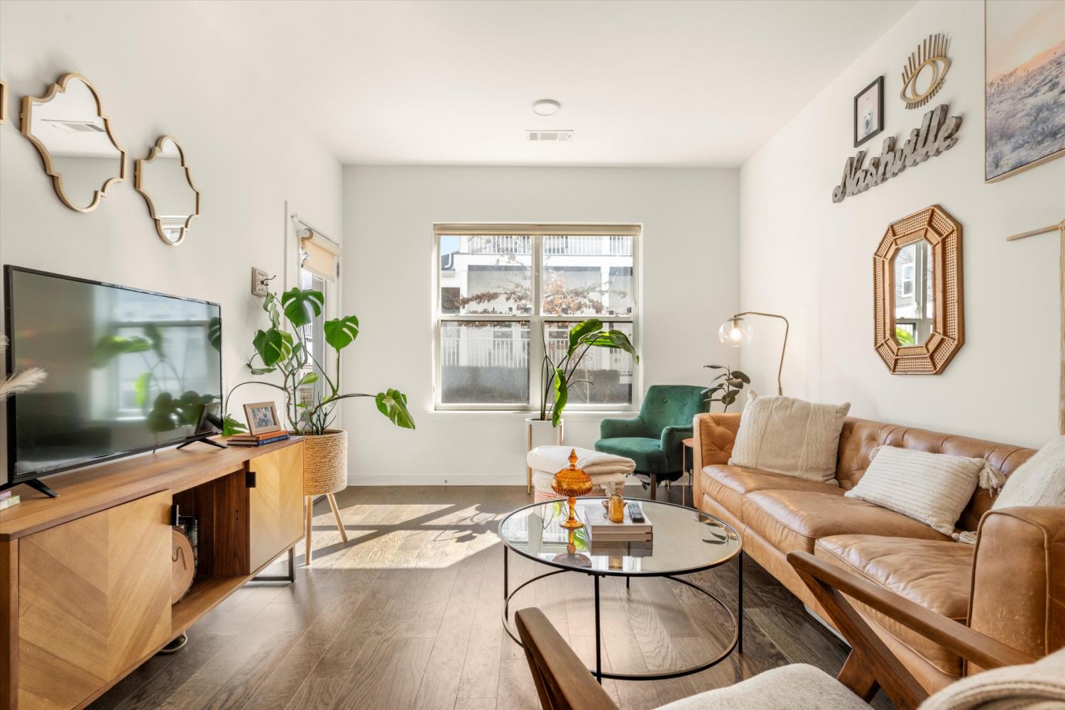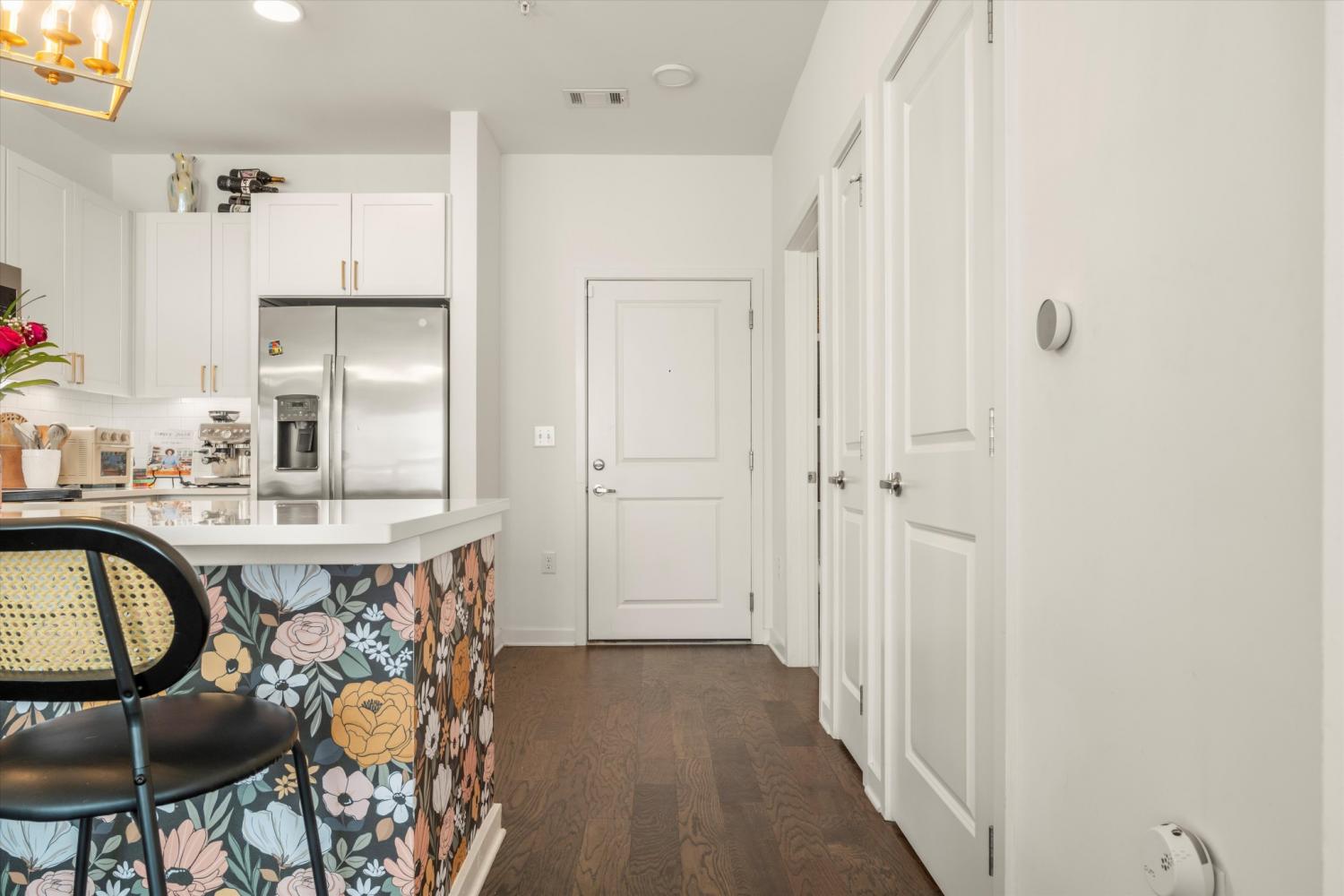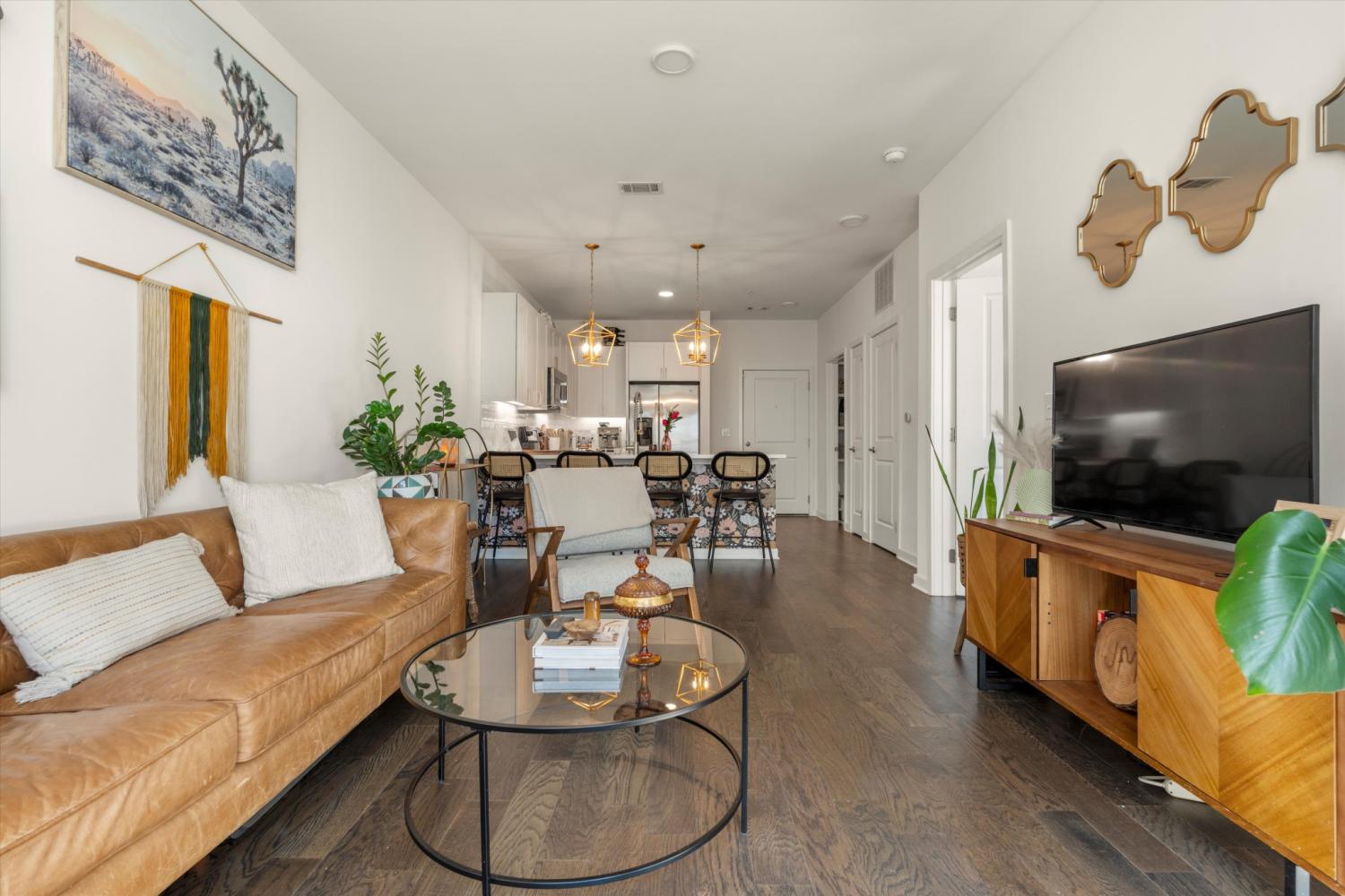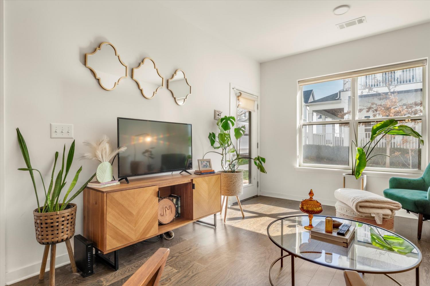 If you’ve been wanting to live in The Nations and actually be able to walk to everything, this is your spot! This first-floor unit has no steps at all, which is such a rare find. You can walk straight out of your covered back porch into the green space and sidewalks almost feeling like you have a backyard without the maintenance. Inside, the layout is open and full of natural light. The kitchen has quartz countertops, stainless appliances, and plenty of counter space. Hardwood floors run through the main space, and the bathroom has tile flooring and a tiled shower. The bedroom comes with a large walk-in closet equipped with a washer/dryer combo that stays with the unit. Amenities include a fitness center, pool with cabanas and gas grills, a lounge area, and even a pet spa with a dog washing station. And the best part? They’re all just down the hallway from this unit. Pets are allowed, and you have one assigned parking space included. All of this in the heart of The Nations, just a short walk to coffee shops, restaurants, Jeni’s Ice Cream, breweries, and local favorites!