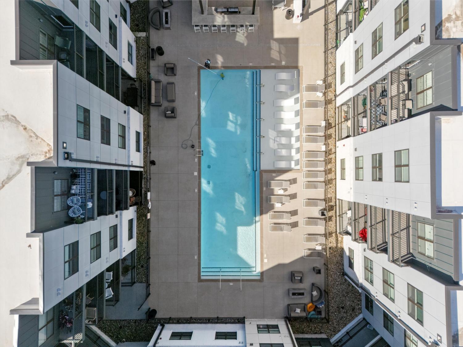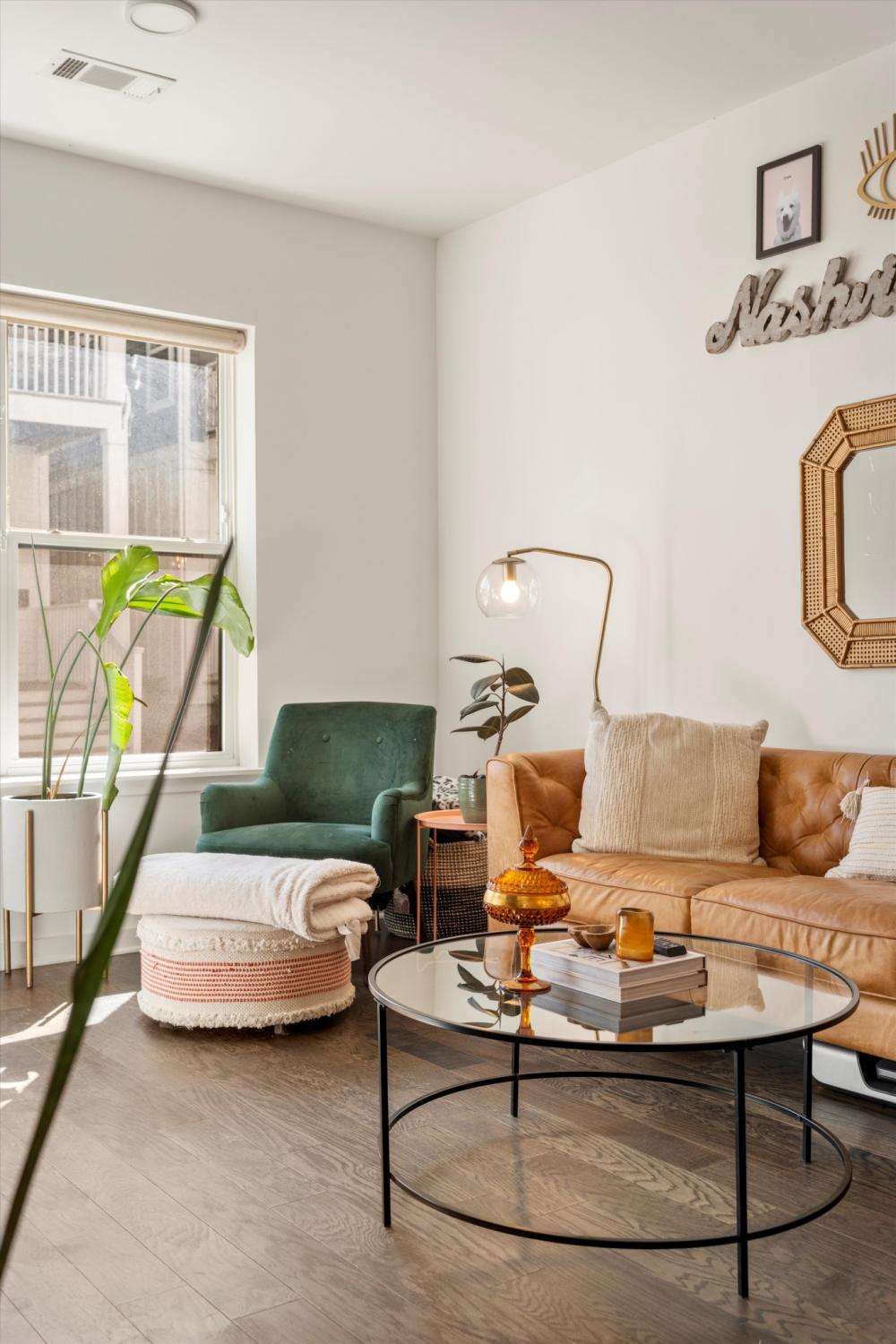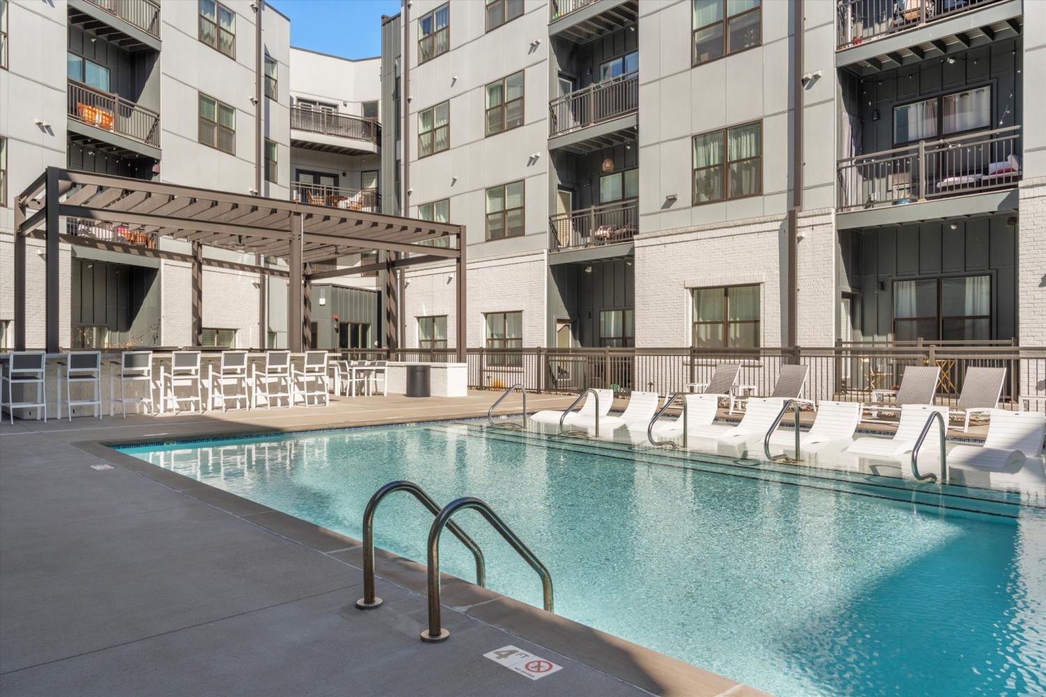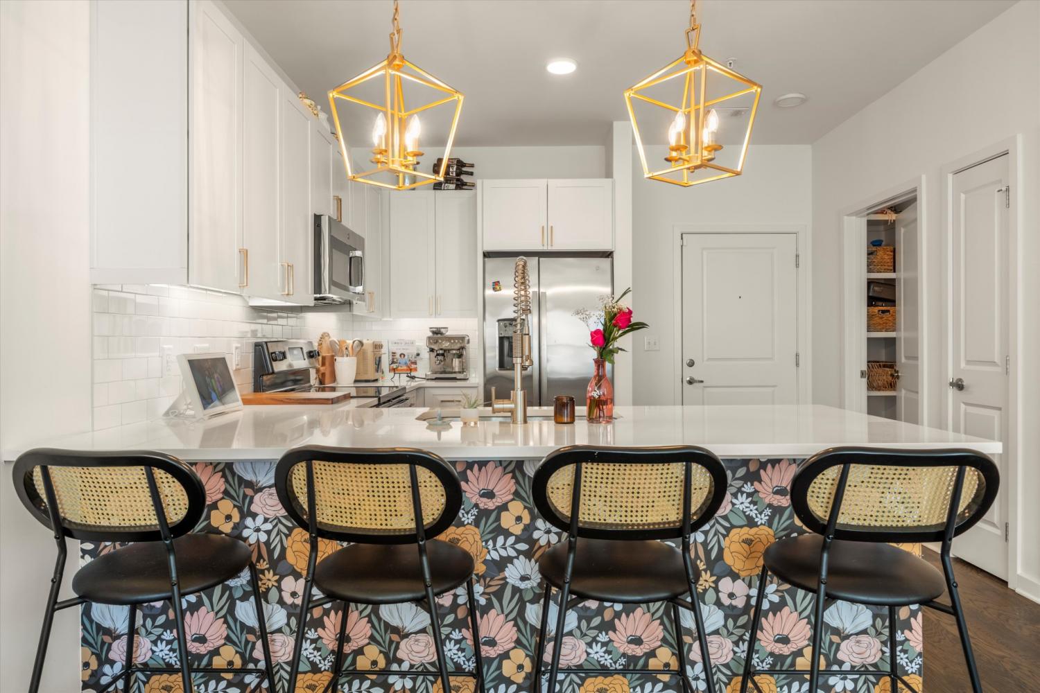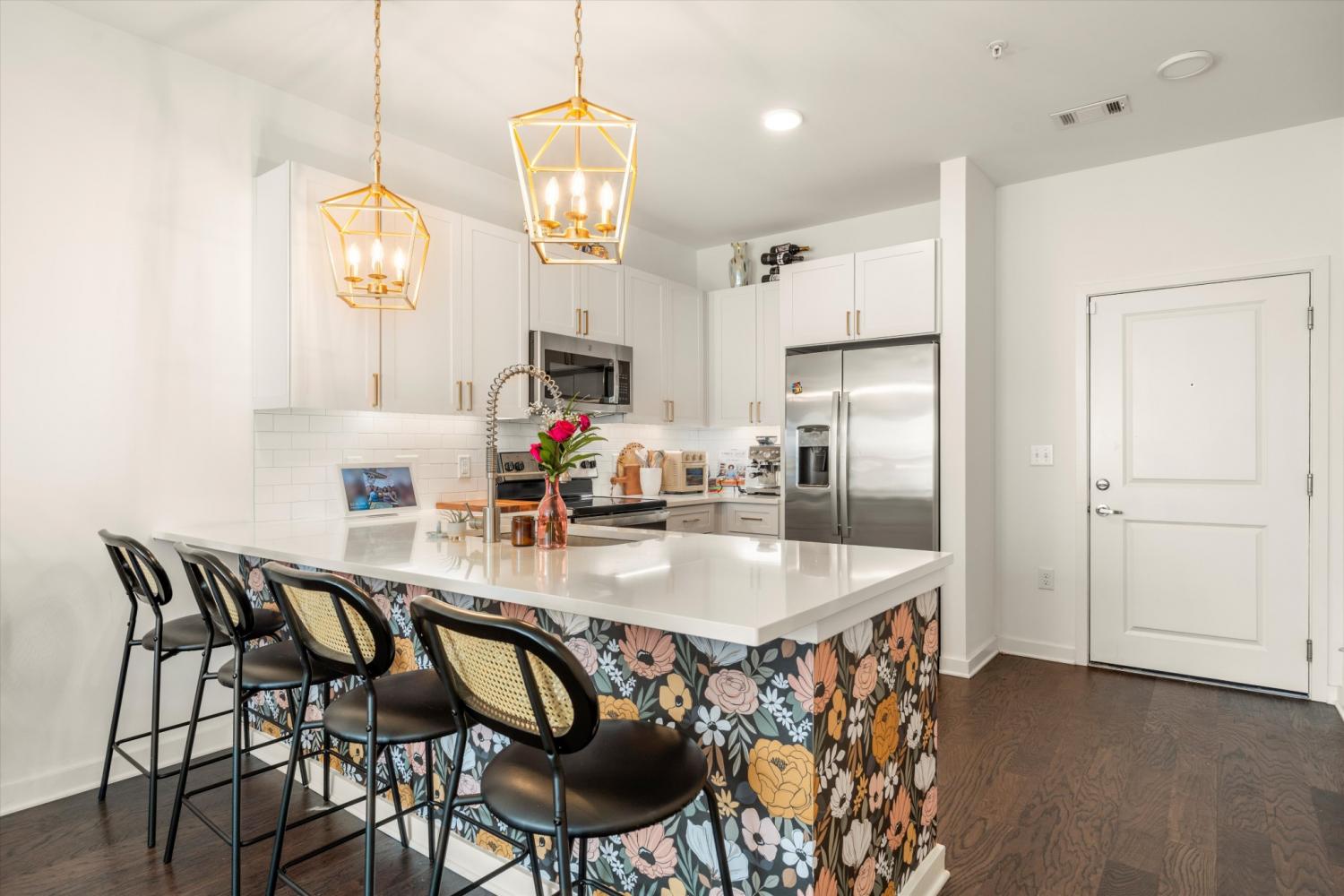 If you’ve been wanting to live in The Nations and actually be able to walk to everything, this is your spot! This first-floor unit has no steps at all, which is such a rare find. You can walk straight out of your covered back porch into the green space and sidewalks almost feeling like you have a backyard without the maintenance. Inside, the layout is open and full of natural light. The kitchen has quartz countertops, stainless appliances, and plenty of counter space. Hardwood floors run through the main space, and the bathroom has tile flooring and a tiled shower. The bedroom comes with a large walk-in closet equipped with a washer/dryer combo that stays with the unit. Amenities include a fitness center, pool with cabanas and gas grills, a lounge area, and even a pet spa with a dog washing station. And the best part? They’re all just down the hallway from this unit. Pets are allowed, and you have one assigned parking space included. All of this in the heart of The Nations, just a short walk to coffee shops, restaurants, Jeni’s Ice Cream, breweries, and local favorites!