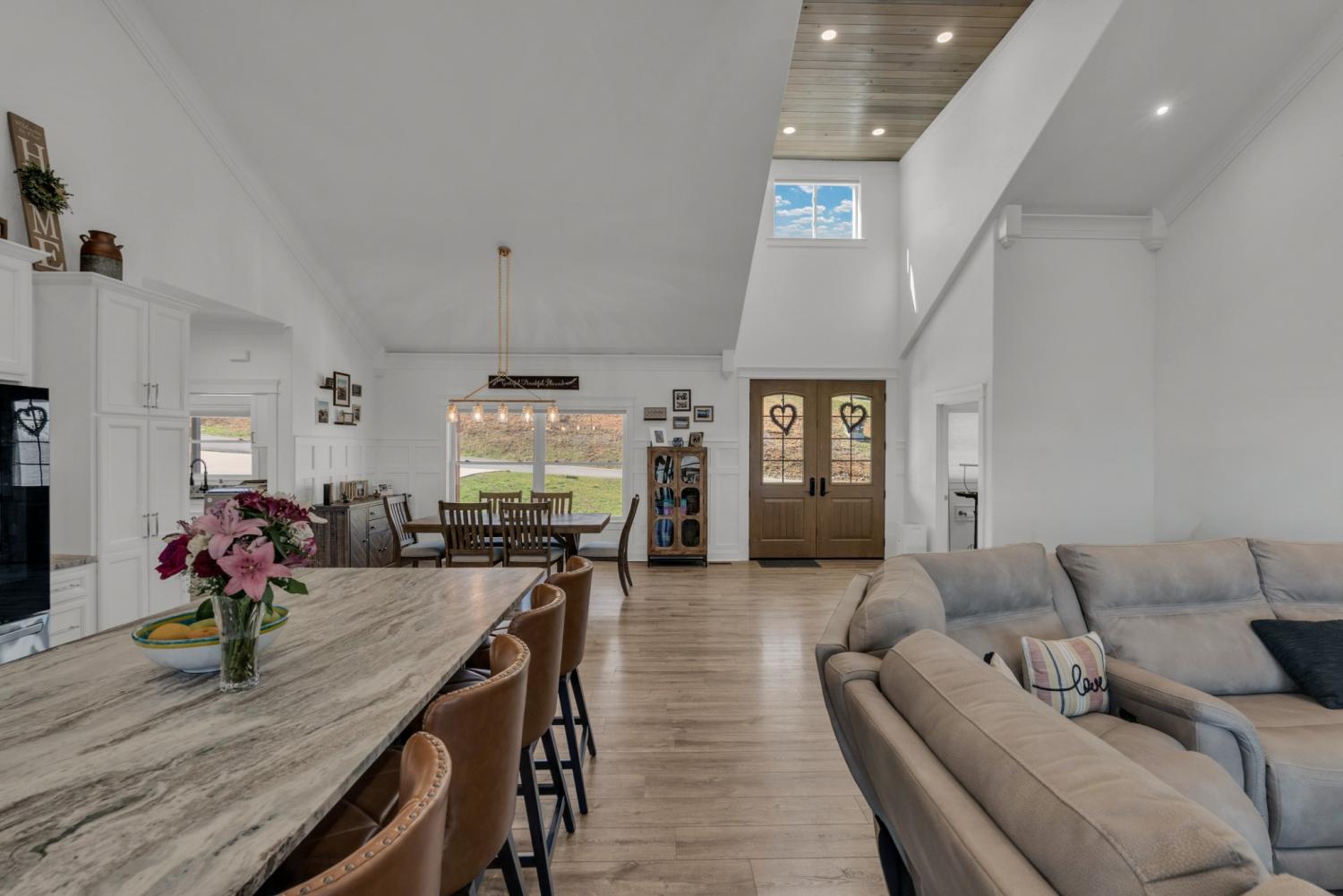 Classy, luxurious comfort with panoramic views of Dale Hollow Lake! Situated on over 1 acre, this stunning home offers 3 bedrooms plus a flex room (currently used as a 4th bedroom or ideal office) and 3.5 bathrooms. Two master suites each have private deck access, connected by a screened-in porch off the living room. The walkout basement features 2 bedrooms, a full bath, spacious living area, bar, and abundant storage. Enjoy the full-length concrete patio overlooking the lake. Concrete finishes and Trex decking add durability and style. Certain personal items negotiable. Community clubhouse includes an inground pool, exercise room, fireplace gathering space, game room, and an entertainer’s pavilion with fireplace, picnic tables, and rocking chairs—all overlooking beautiful Dale Hollow Lake.